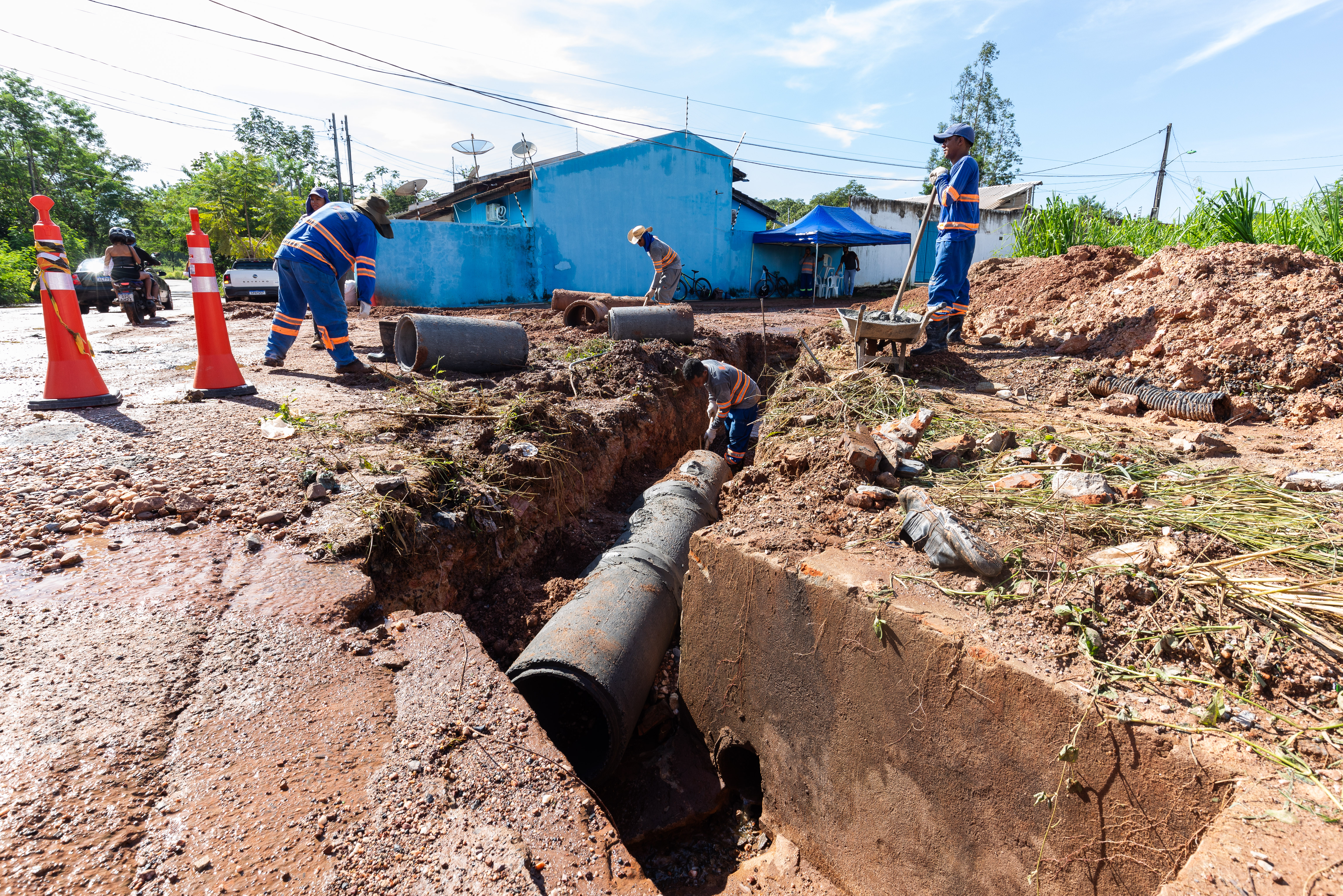 Atualmente, as equipes concentram esforços na instalação de manilhas interligadas a bocas de lobo, permitindo o escoamento adequado da água para a rede de tubulação subterrânea e, posteriormente, para córregos e rios. Esse sistema previne alagamentos e entupimentos, especialmente durante o período chuvoso.