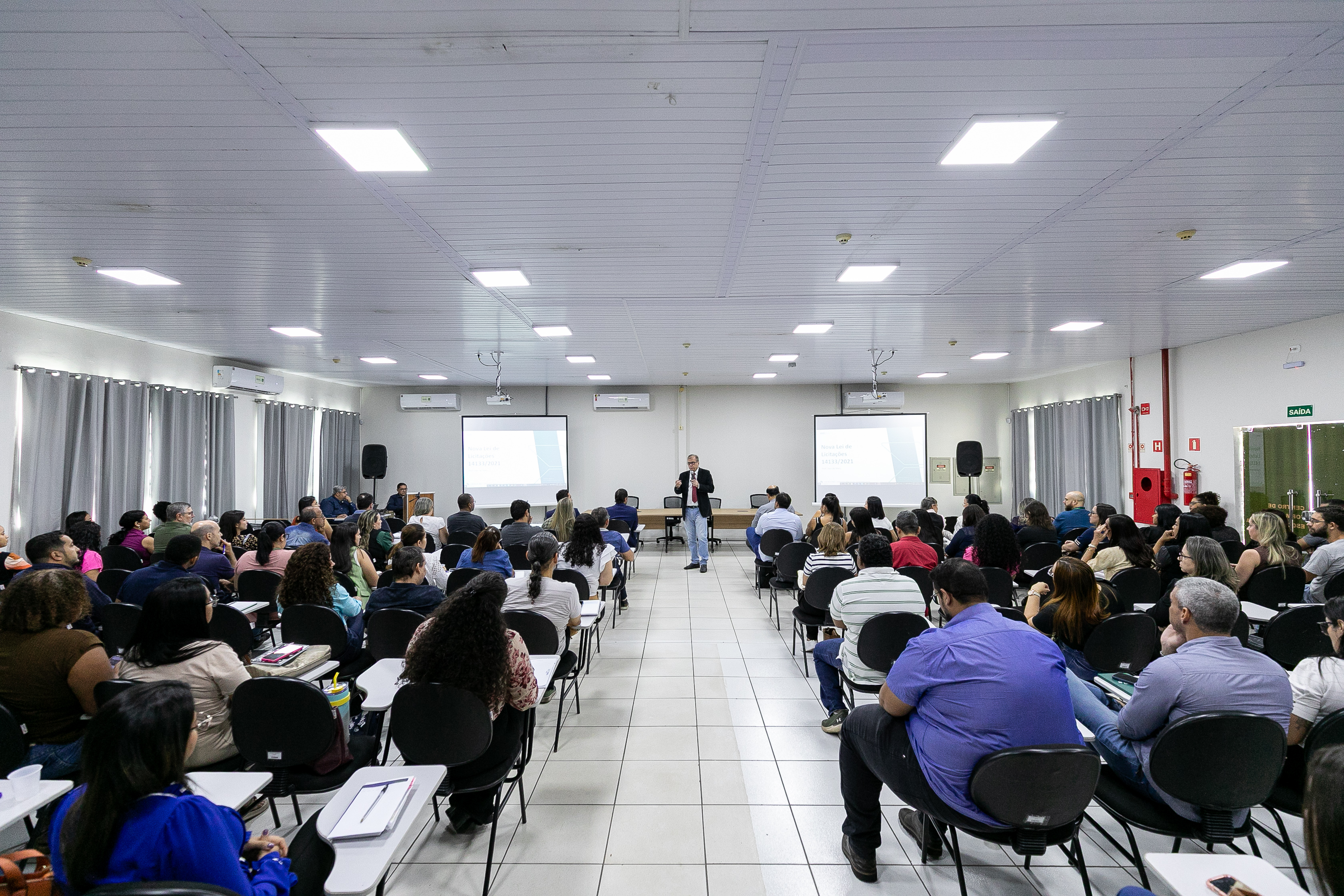 A Prefeitura de Cuiabá iniciou, nesta quinta-feira (8), um curso de capacitação presencial relacionado à nova Lei de Licitações, a 14.133/2021. O curso será realizado até sexta-feira (9), no auditório do Centro de Formação, localizado na Avenida Beira Rio, sede da antiga Faculdade Unirondon. A capacitação é destinada aos servidores públicos que atuam diariamente com compras e contratações de serviços para a administração pública. No primeiro dia, mais de 100 servidores participaram.