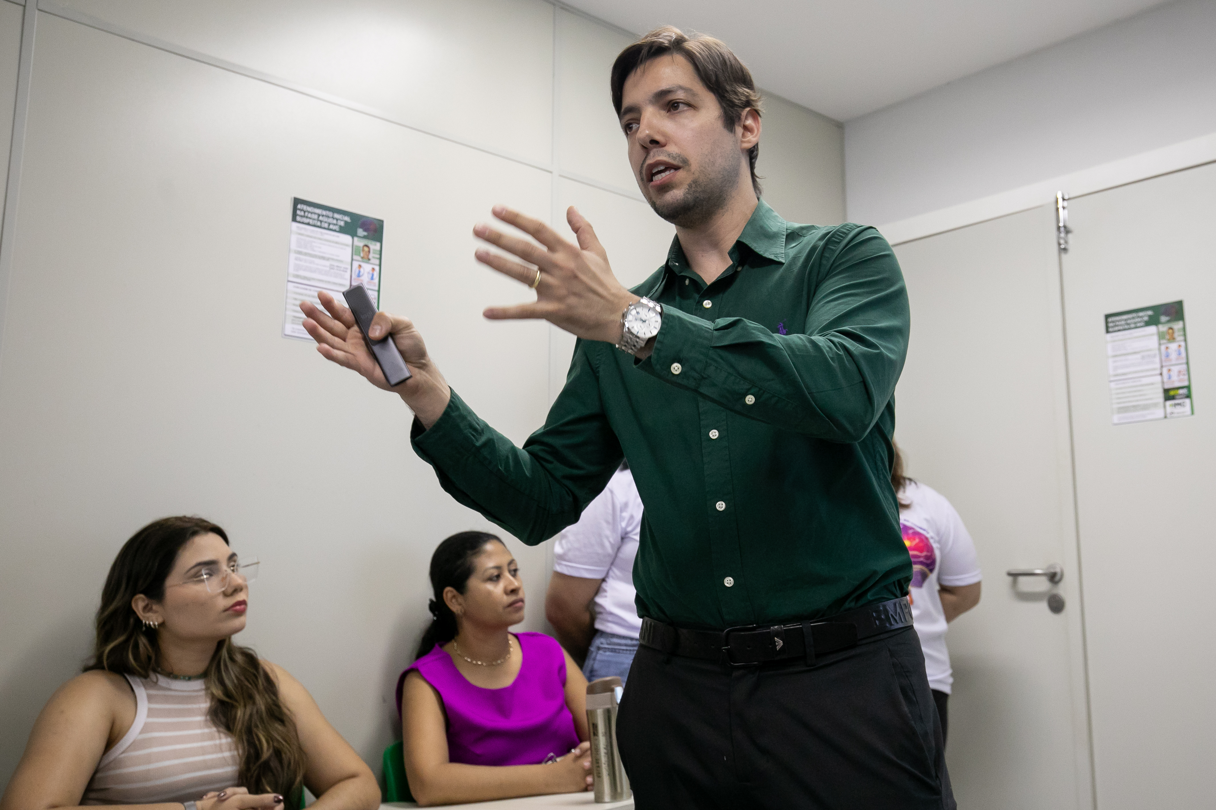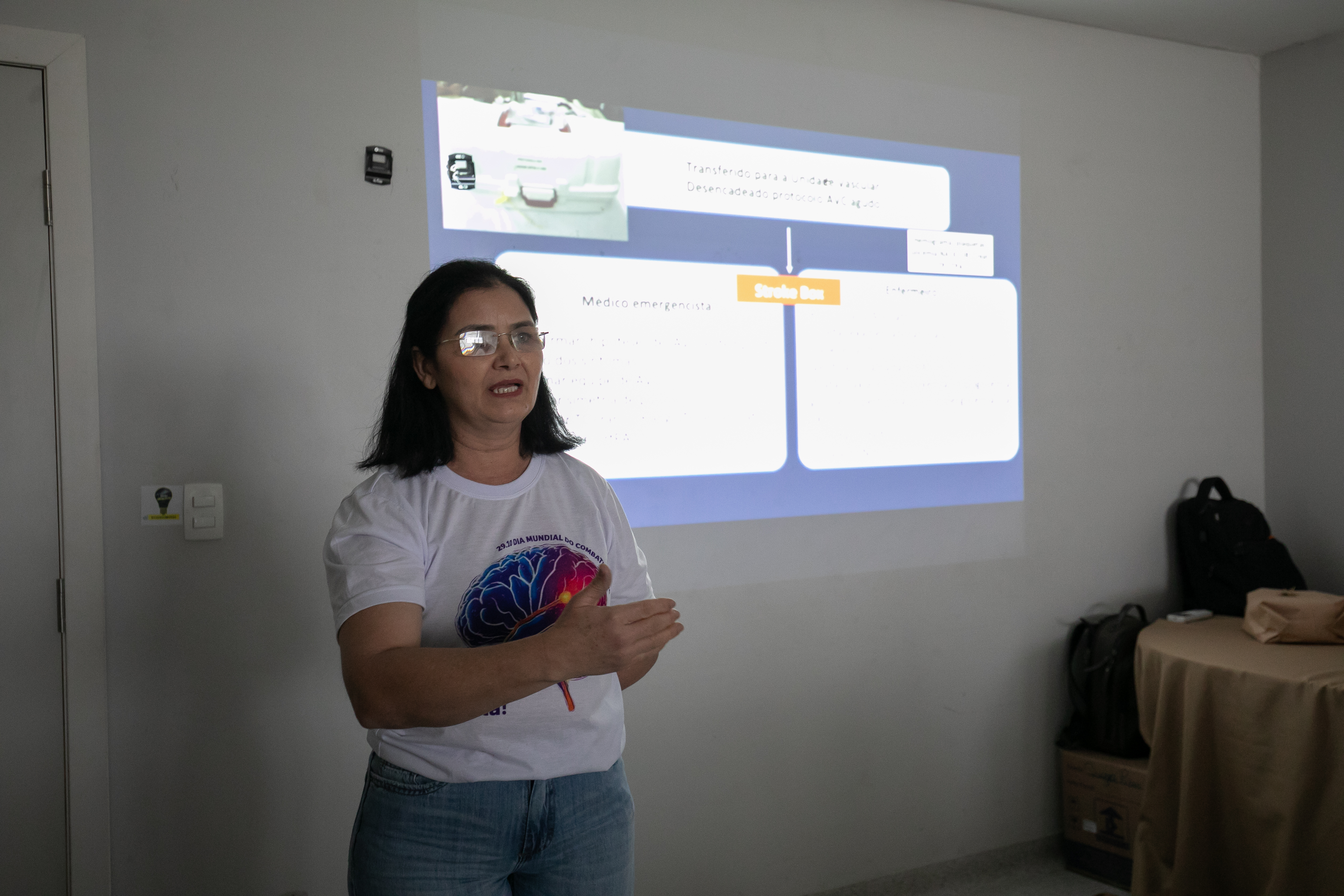 Na tarde desta terça-feira (29), a equipe do SOS AVC realizou uma capacitação para as equipes médicas e assistenciais do hospital e das demais unidades que compõem a rede municipal de saúde. Durante o evento, os profissionais trocaram experiências sobre os principais fatores de risco e as formas de identificar os sintomas do AVC. “O diagnóstico precoce é crucial, pois o tratamento imediato pode minimizar danos e aumentar as chances de recuperação”, garantiu o palestrante, Dr. Wilson Novaes.