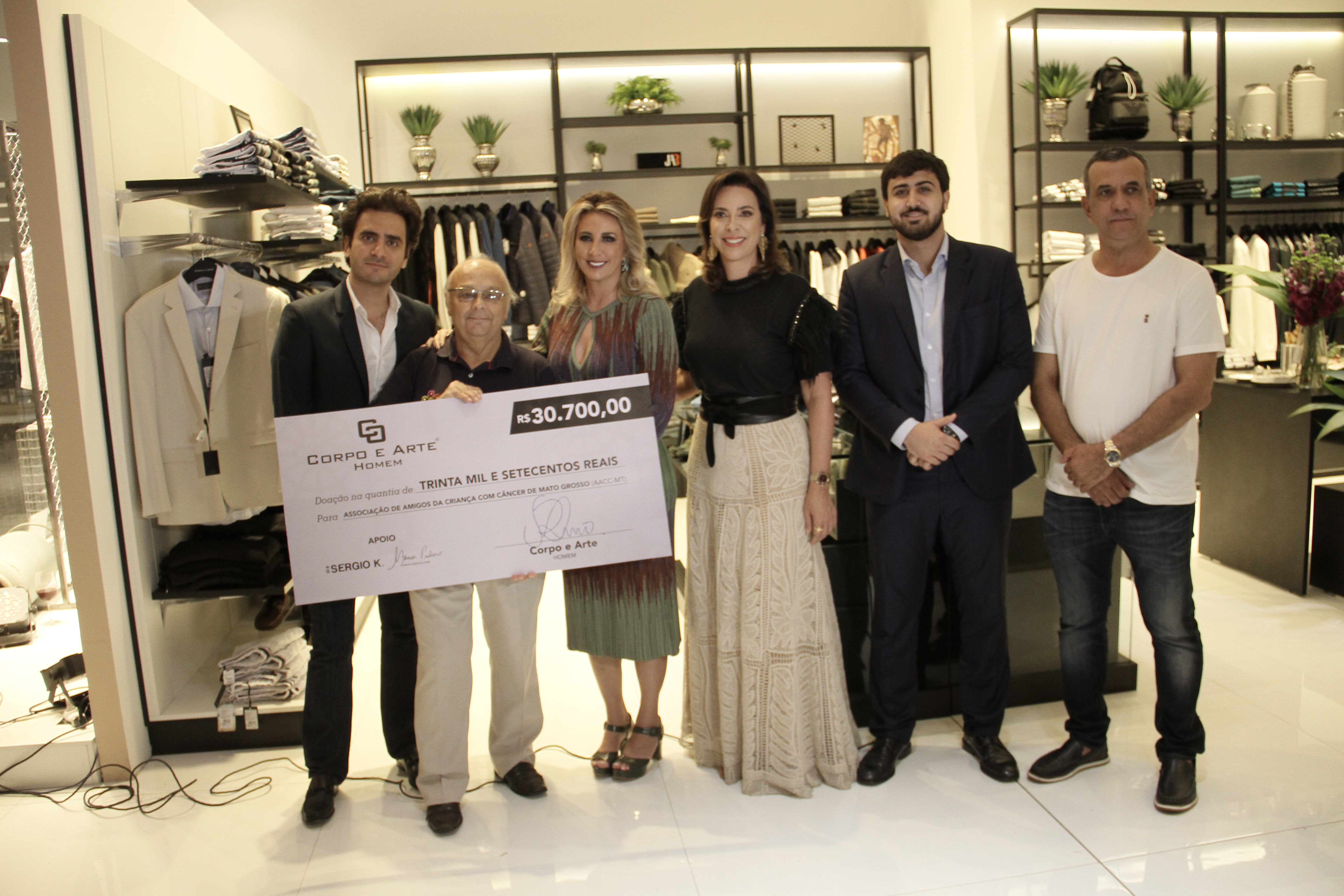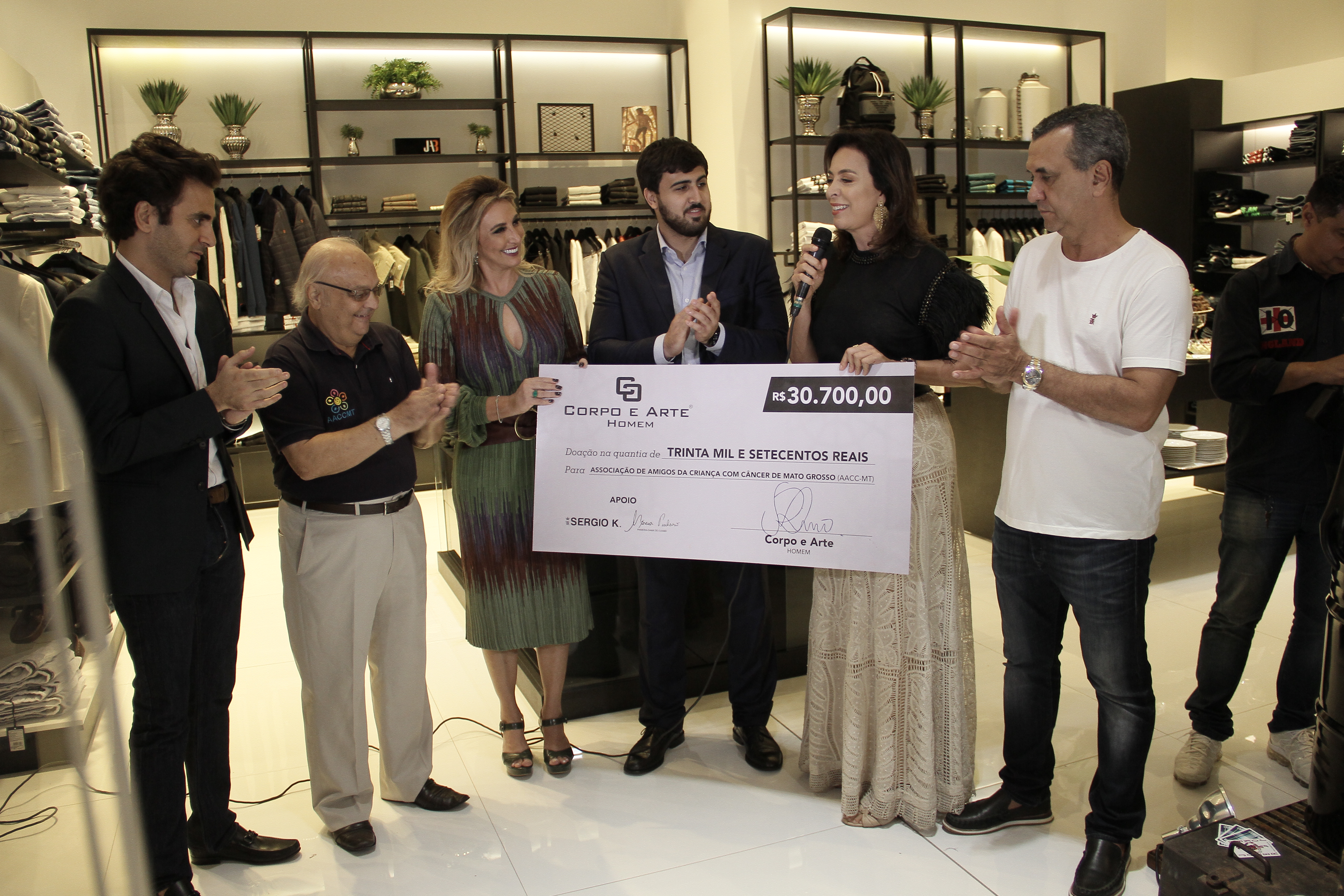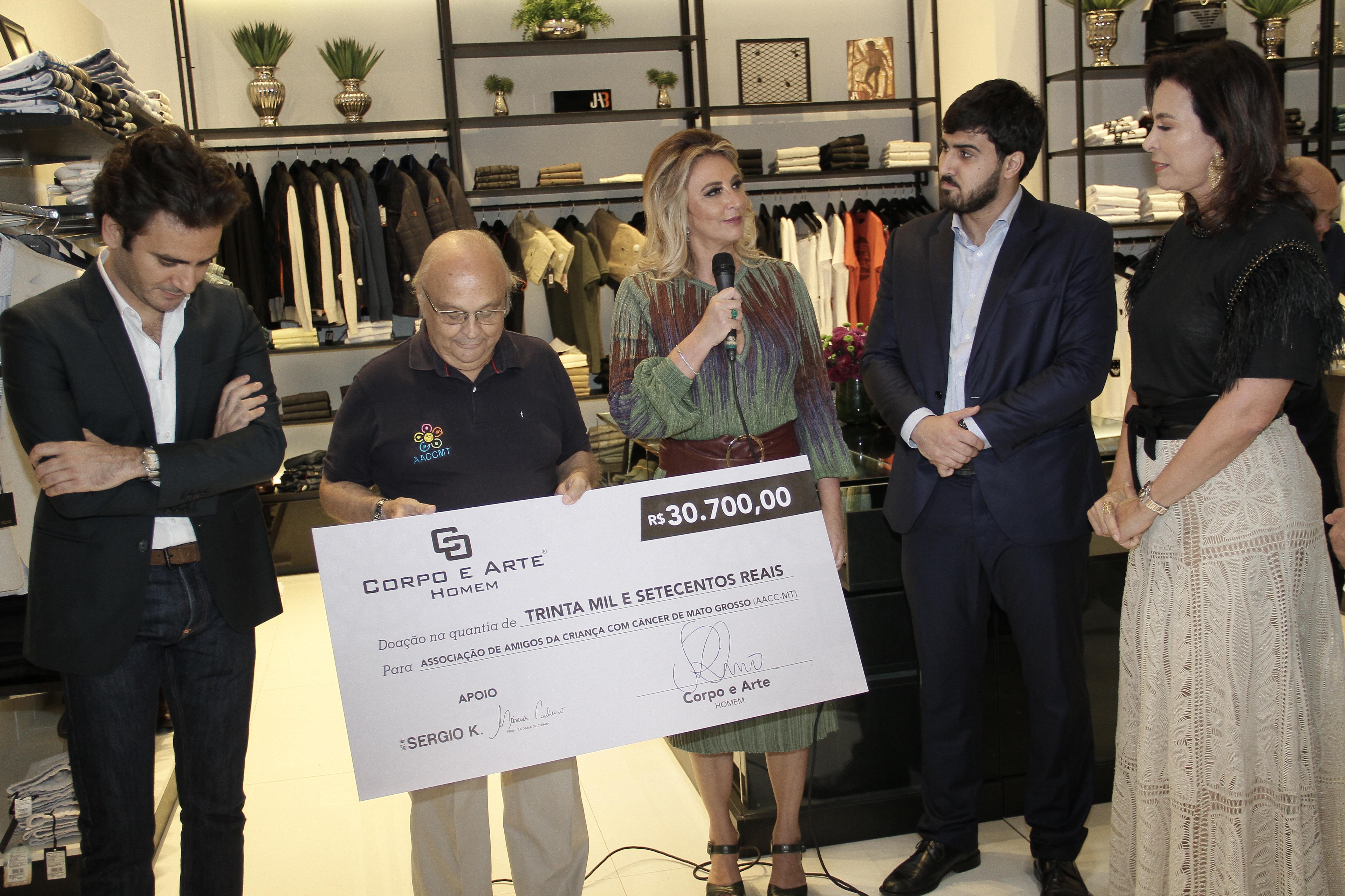 Parte das vendas da camiseta dos 300 anos, assinada pelo renomado estilista Sérgio K, proporcionou a renda de R$ 30,7 mil destinados à Associação de Amigos da Criança com Câncer de Mato Grosso (AACC-MT). A entrega simbólica do cheque à instituição aconteceu, nesta quinta-feira (11), na loja Corpo e Arte Homem, do Shopping Estação, principal parceria da ação beneficente.