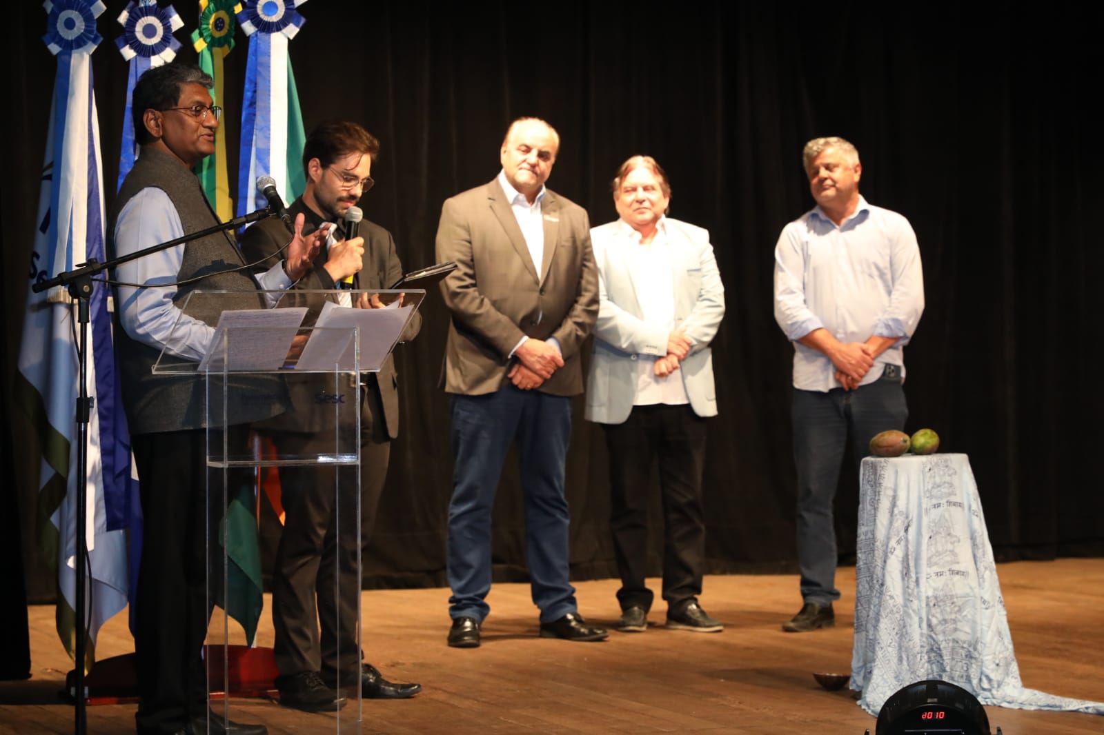 O projeto 'Viva o Feriado em Cuiabá' teve início nesta quarta-feira (15) e segue com uma extensa programação até o próximo domingo (19). A abertura do evento ocorreu no SESC Arsenal com a 'Semana da Índia em Cuiabá' e contou com a participação do embaixador da Índia no Brasil, Suresh Reddy, vice-prefeito da Capital, José Roberto Stopa, secretários Zito Adrien (Turismo), Francisco Vuolo (Agricultura), Aluízio Leite (Cultura), presidente do Sistema Fecomércio/Sesc/Senac/IPF-MT, José Wenceslau de Souza Júnior e demais autoridades.
