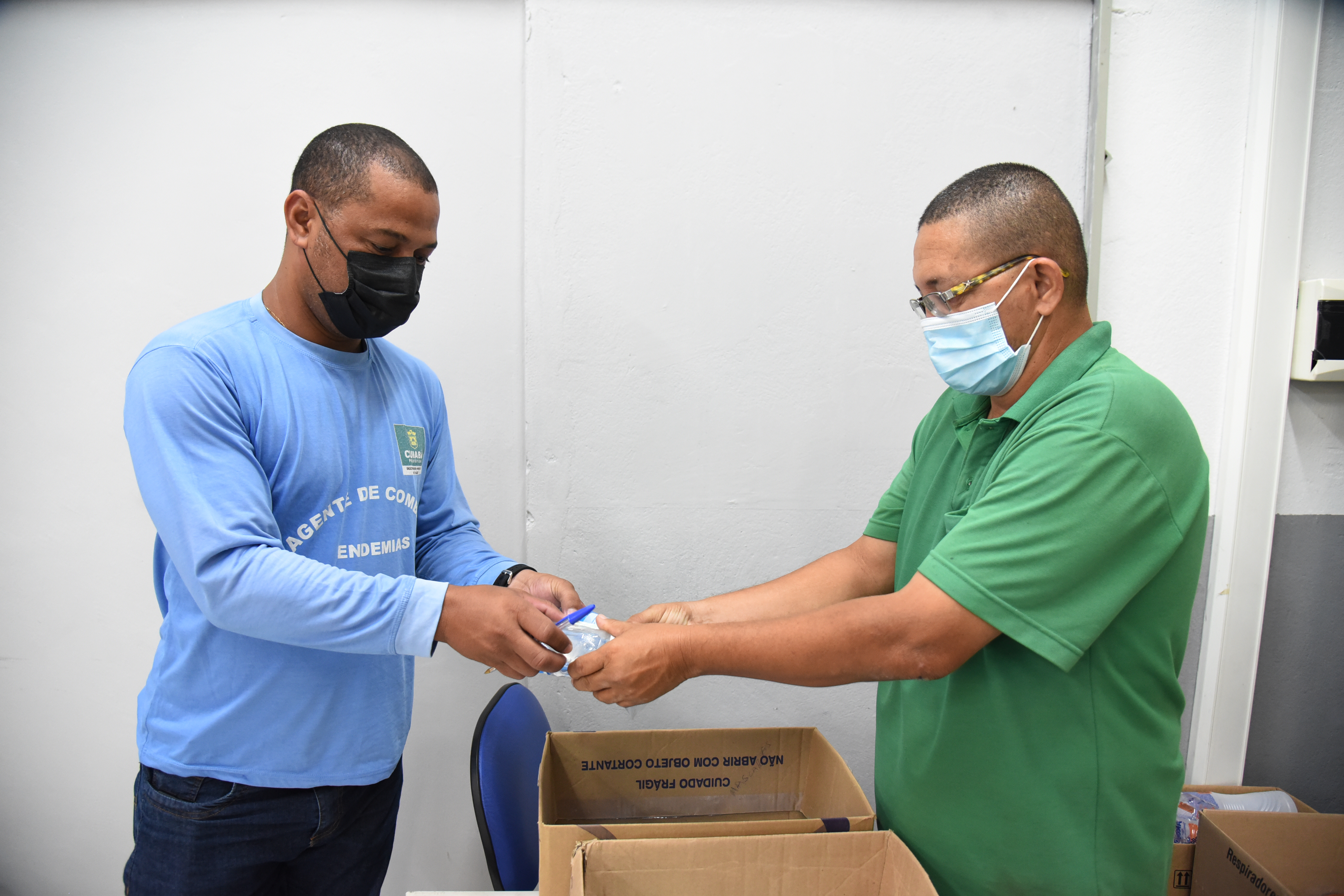 Os agentes também receberam máscaras faciais e álcool 70, que são disponibilizados em média a cada 15 dias, e protetor solar FPS 60, que é entregue a cada ciclo de visitas domiciliares, que ocorrem 6 vezes ao ano.
