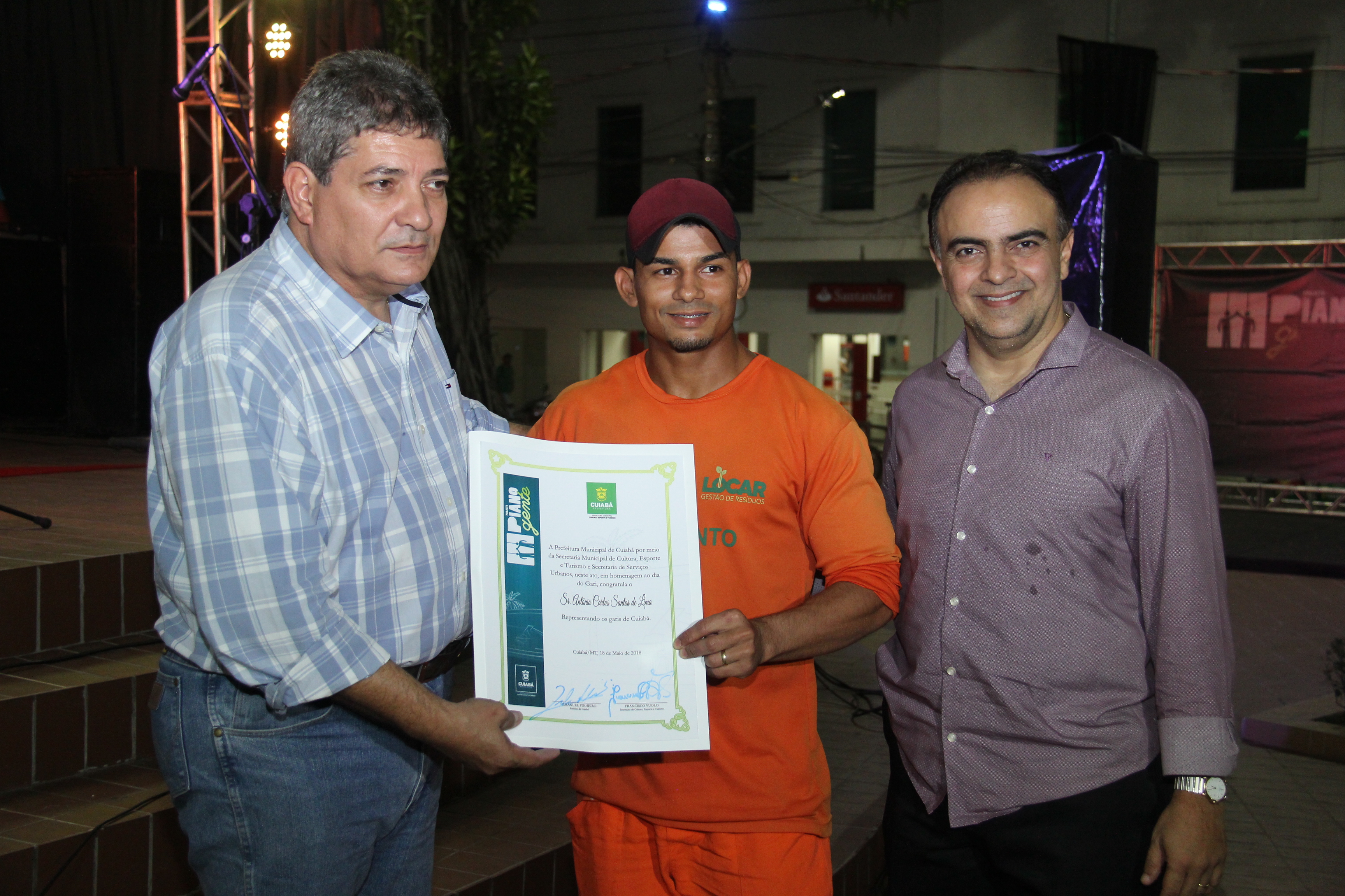 Dez agentes de limpeza pública foram homenageados na noite de sexta-feira (18) pela Prefeitura de Cuiabá, em lembrança ao “Dia do Gari”, comemorado na última quarta-feira (16). No ato, que ocorreu na Praça Alencastro, além de receberem um certificado de congratulação por toda dedicação na execução da coleta diária de lixo em toda a cidade, os trabalhadores também tiveram a 2ª edição do projeto “Piano Gente” totalmente dedicada para a classe que desempenha um fundamental papel dentro do planejamento de desenvolvimento sustentável e melhoria na qualidade de vida do cidadão cuiabano.