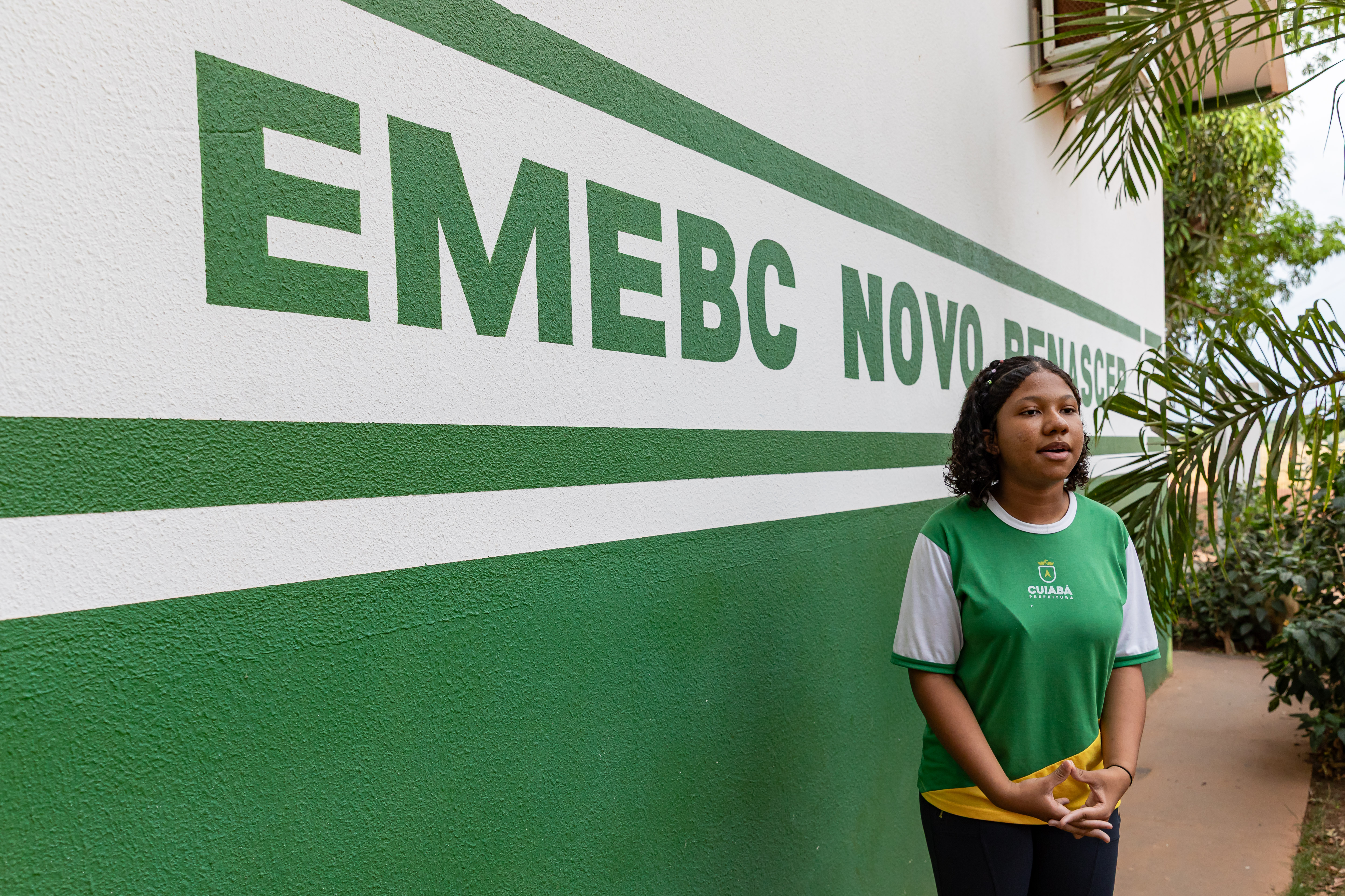 Da zona rural, numa estrada de chão, afastada 100 km da região Central, a educação de Cuiabá chega e cria talentos. A prova disso é a estudante Ana Julia Silvia Brandão, de 13 anos, matriculada no 7º ano da escola Novo Renascer. A escola está localizada no km 54 da Estrada Rio dos Couros, zona rural de Cuiabá.