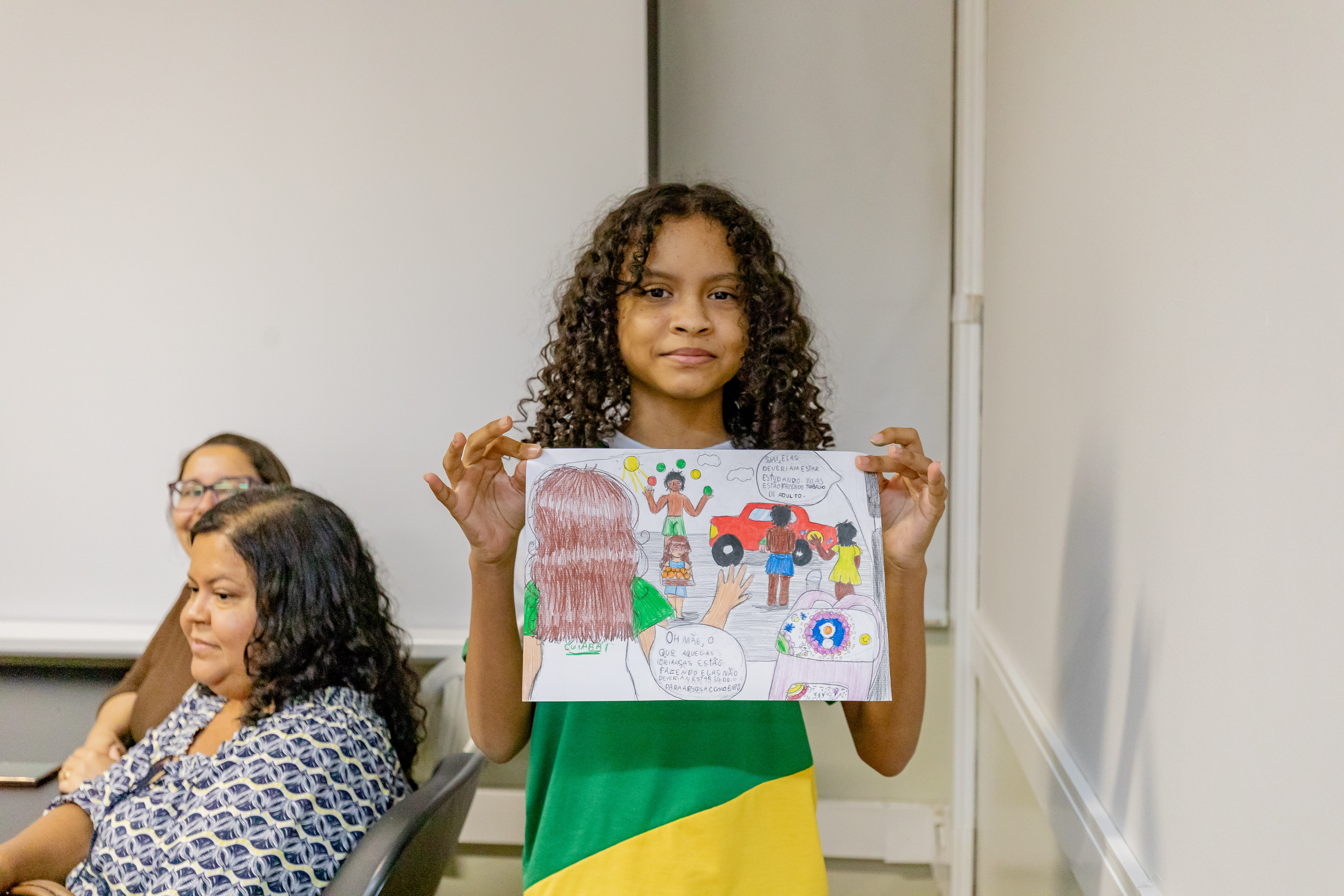 A jovem aluna foi reconhecida pelo Ministério Público do Trabalho de Mato Grosso como a autora da melhor produção de desenho que abordou o tema de combate ao trabalho infantil.