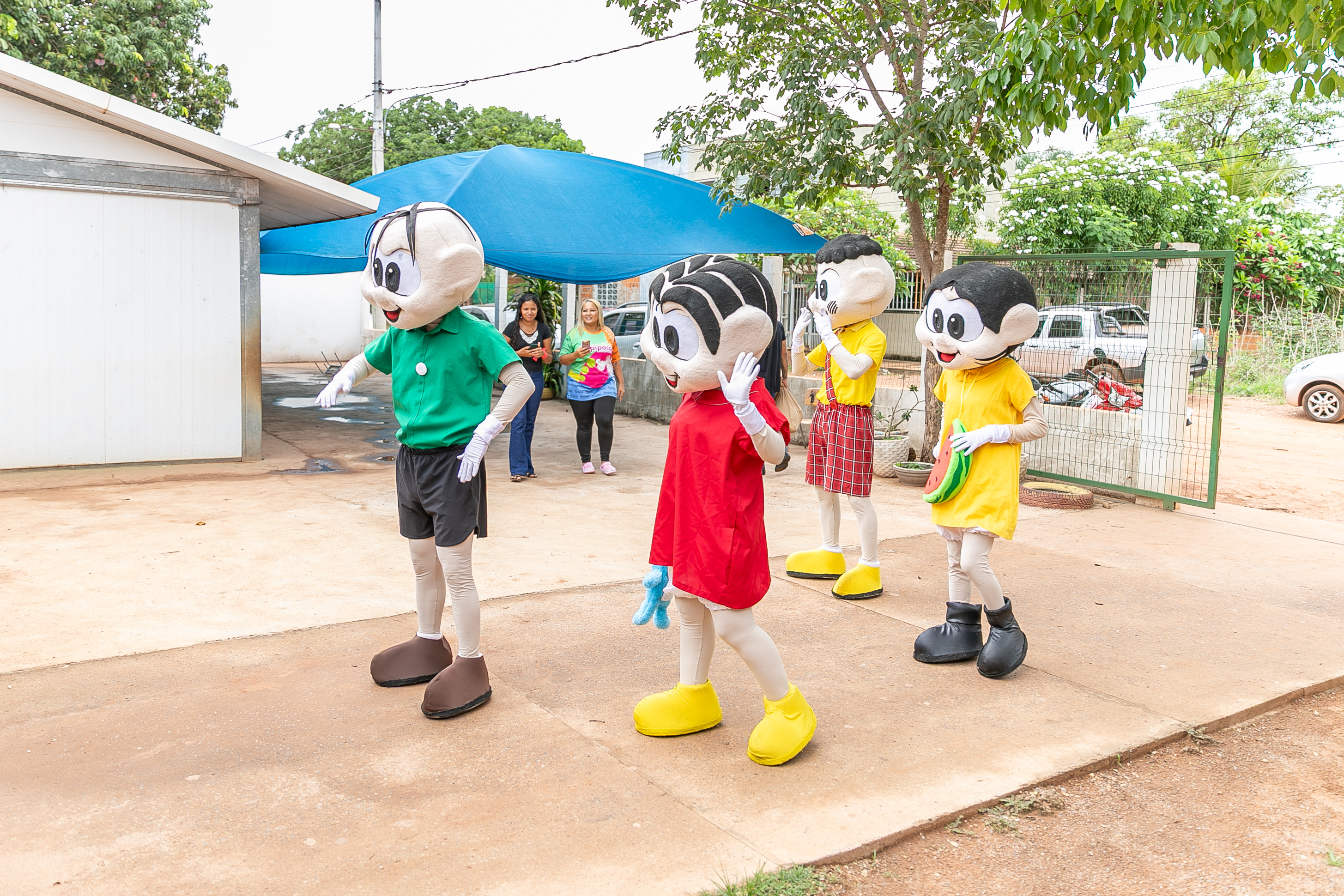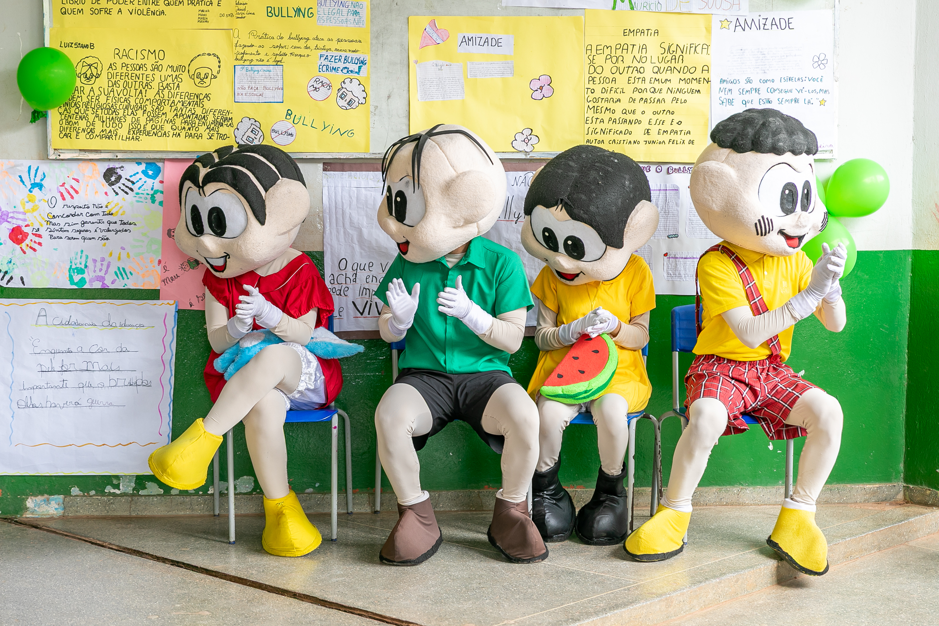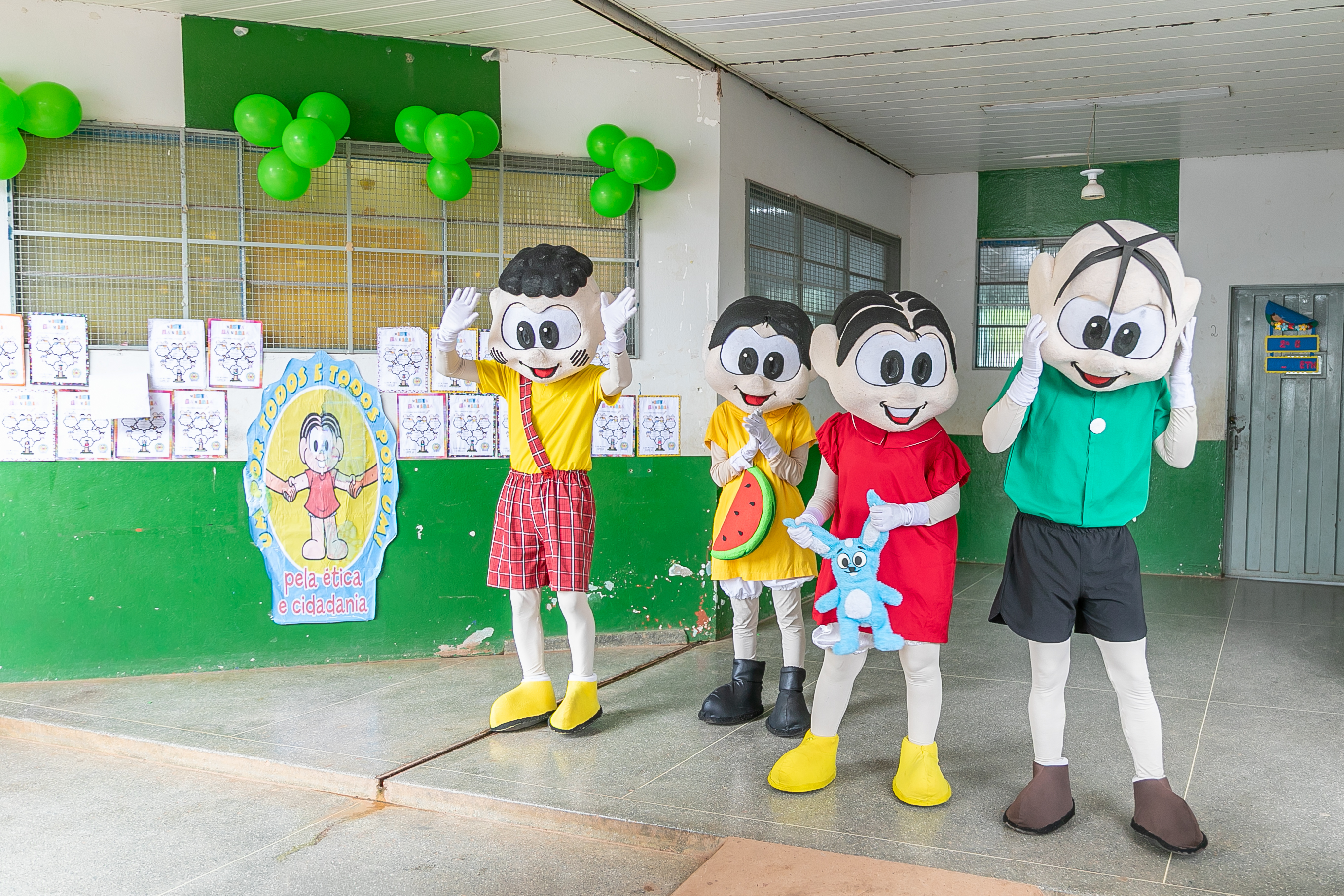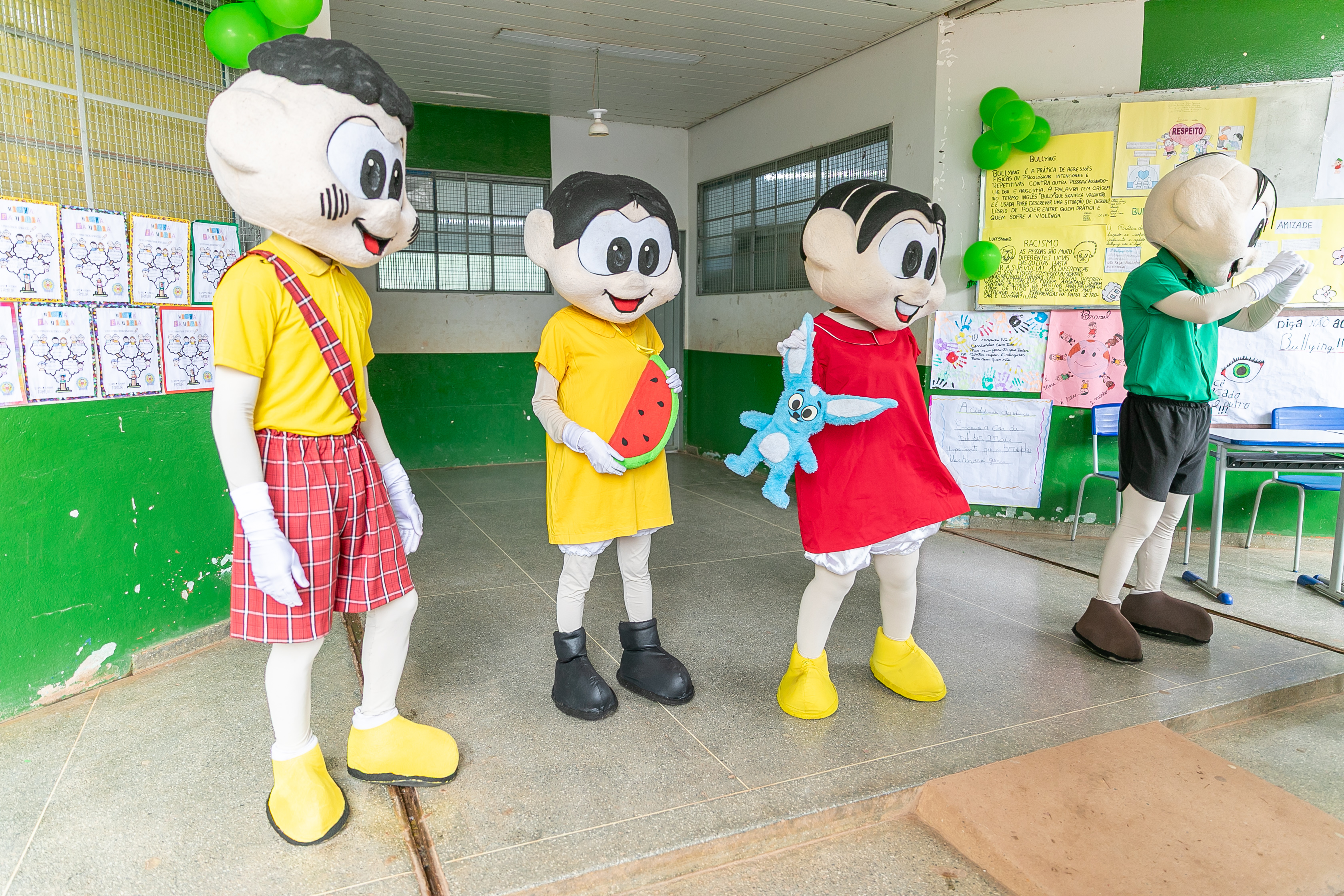Os personagens Mônica, Magali, Cebolinha e Cascão, devidamente fantasiados, participaram de uma apresentação teatral, bastante celebrada pelos estudantes.