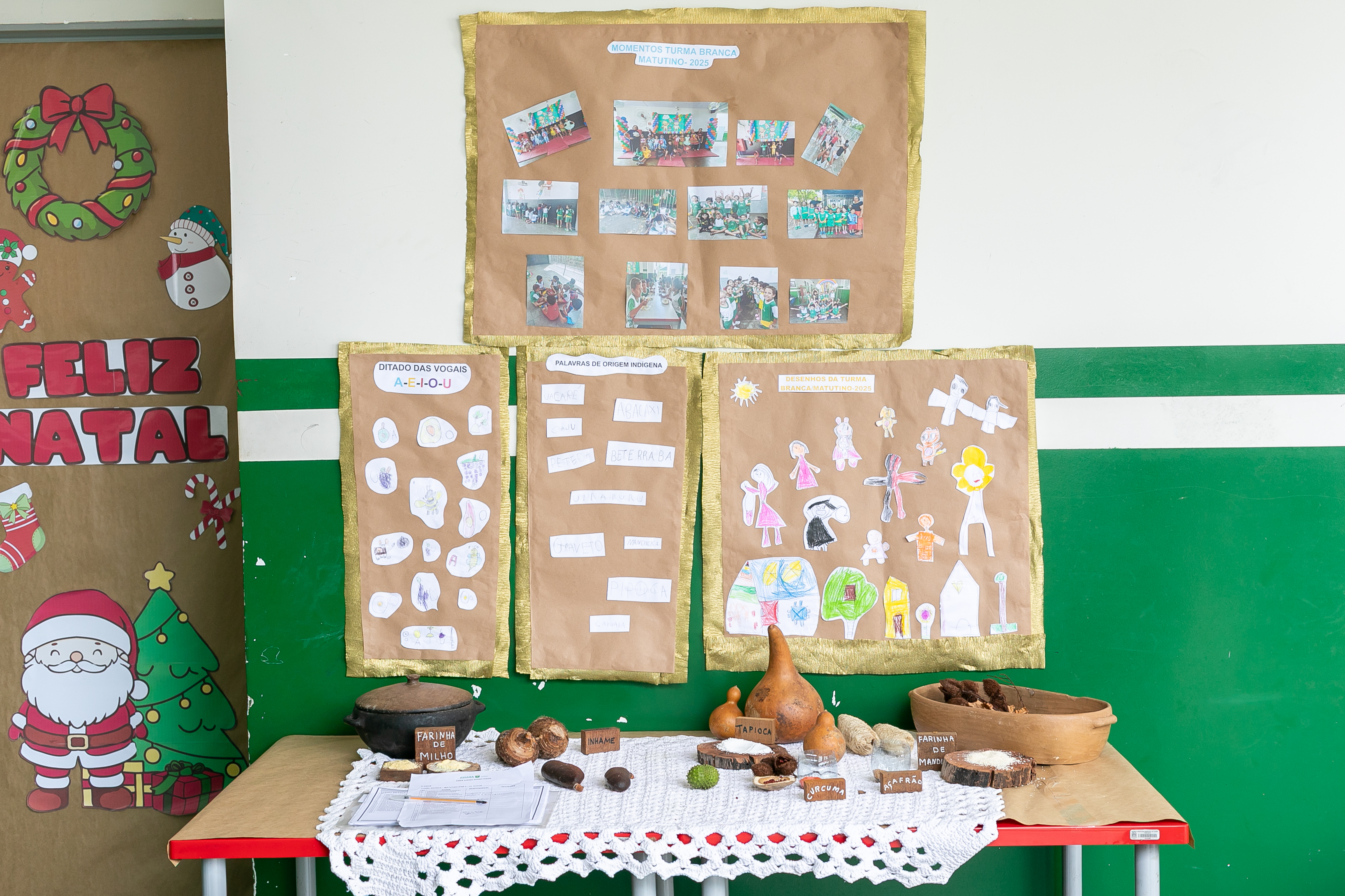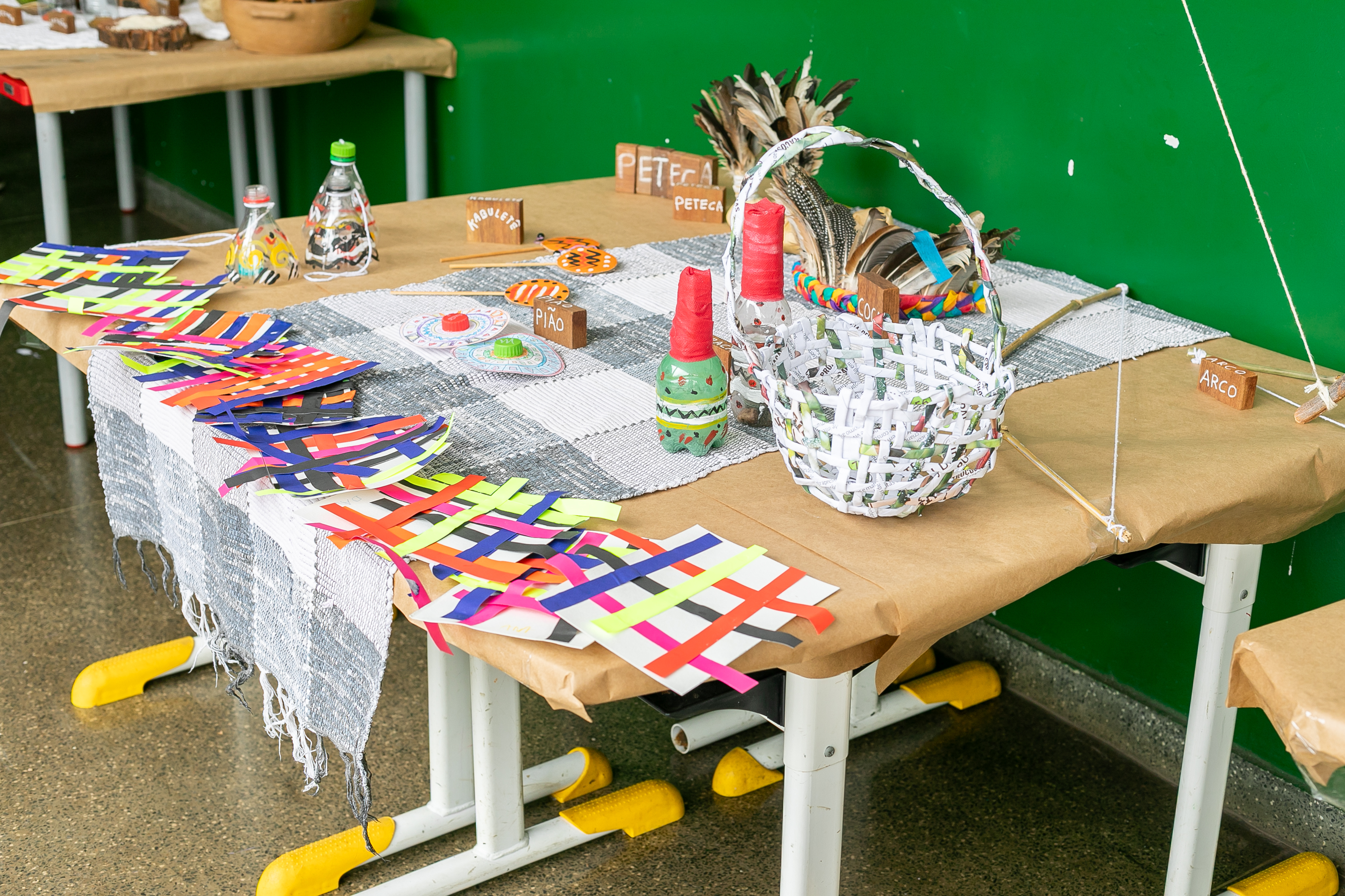 Uma série de trabalhos artísticos produzidos com argila, areia, tinta, lápis coloridos, desenhos em cartolinas e hábitos da cultura indígena, produzidos por crianças de 3 a 5 anos, foram apresentados na quinta-feira (11) pelos estudantes da Escola Municipal de Educação Básica (EMEB) Juarez Sodré Farias, localizada na Rua João Carlos Pereira Leite, no bairro Araés.