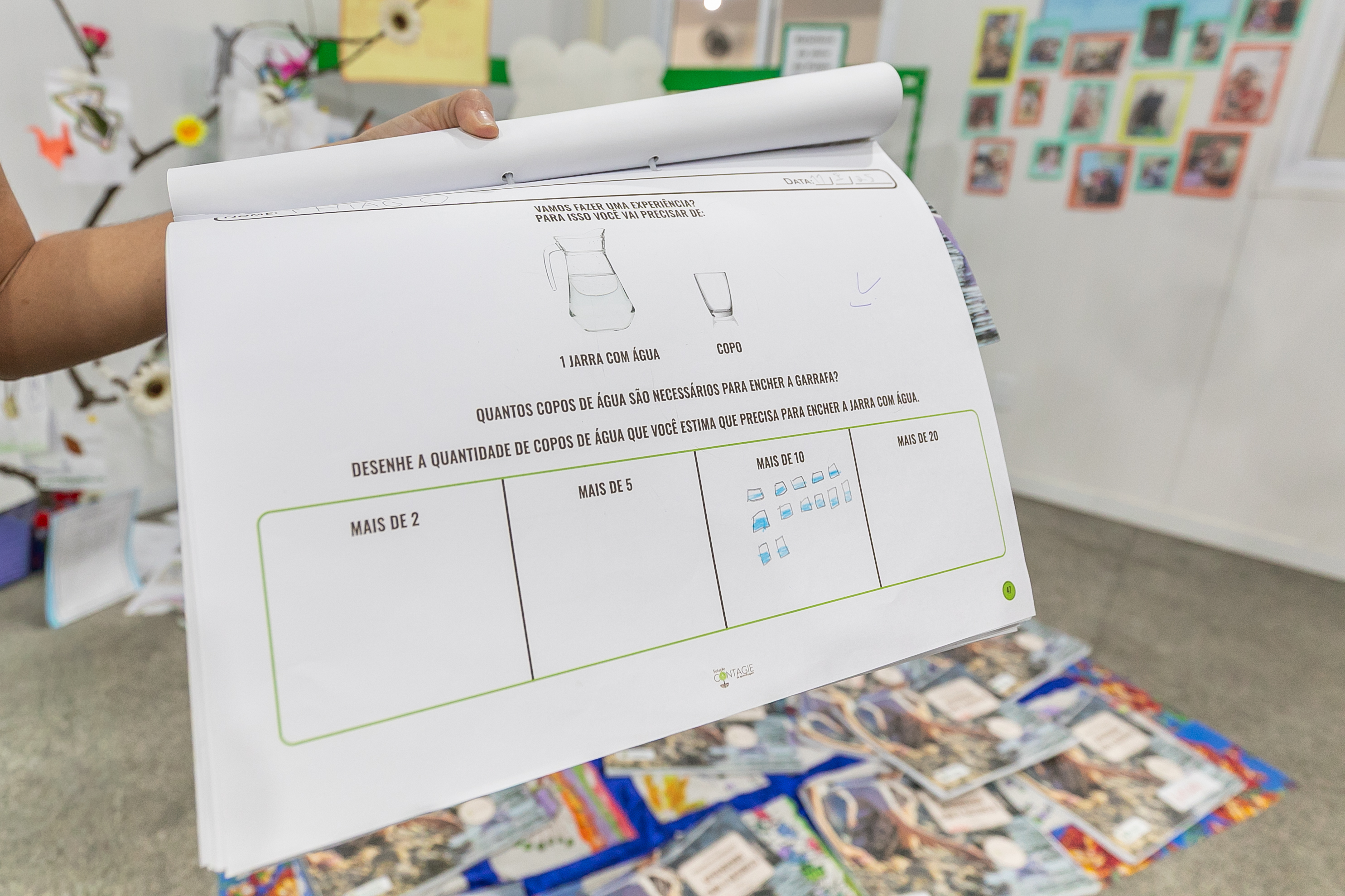 A diretora da escola Augusto Mário Vieira, professora Maria do Socorro, explica que as atividades com os materiais do sistema “Contagie” envolvem propostas de escrita, desenhos, parcerias com a família, releitura de obras de arte e identificação de elementos da natureza. Por isso, considera o trabalho essencial para a aprendizagem das crianças.