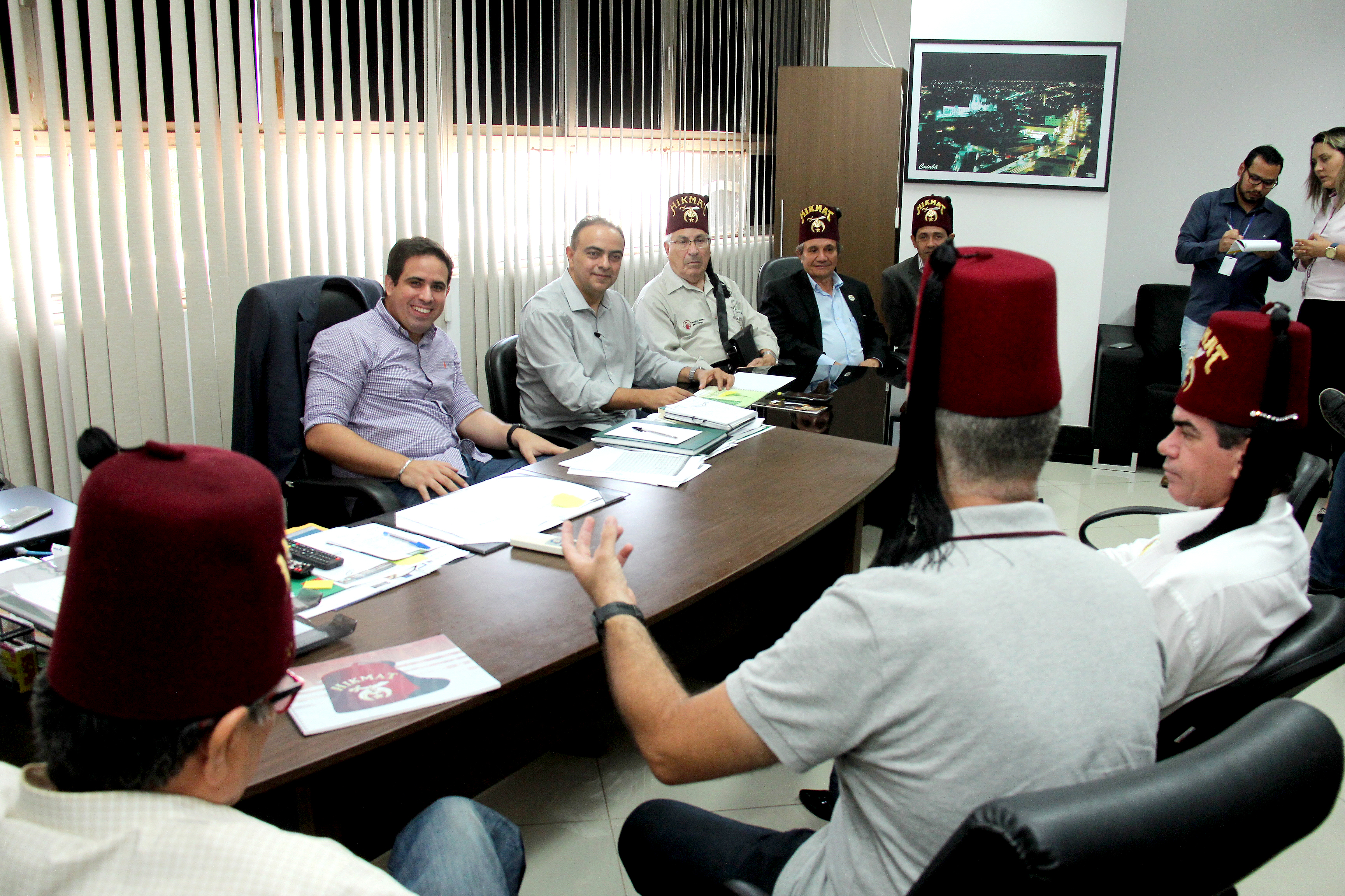 Manter as portas da Prefeitura de Cuiabá abertas para parcerias que resultem na melhoria da qualidade de vida da população. Foi com esse propósito que o vice-prefeito, Niuan Ribeiro, recebeu na tarde dessa quarta-feira (24), membros da fraternidade internacional Hikmat Shriners. O encontro ocorreu no Palácio Alencastro e teve como objetivo o fechamento de uma parceria para a realização de duas provas de rua ainda neste ano, que estão sendo organizadas pela instituição não-governamental.