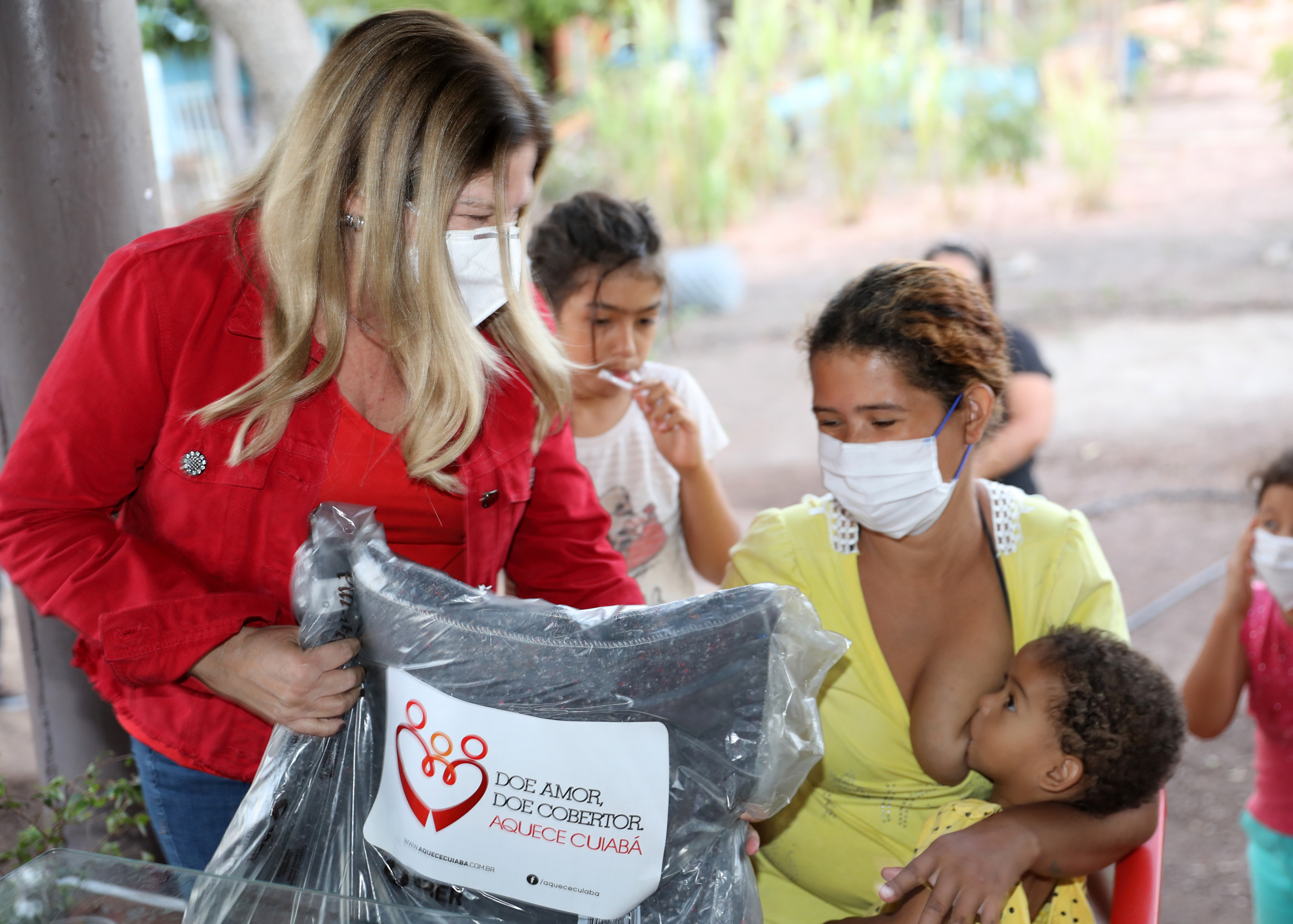 Outros 200 cobertores foram entregues à comunidade Quinta da Bandeira, situada na área rural de Cuiabá. A destinação para comunidades carentes são pedidos feitos ao Núcleo de Apoio à Primeira-dama que presta suporte no controle social junto aos líderes comunitários para averiguar a necessidade das famílias.