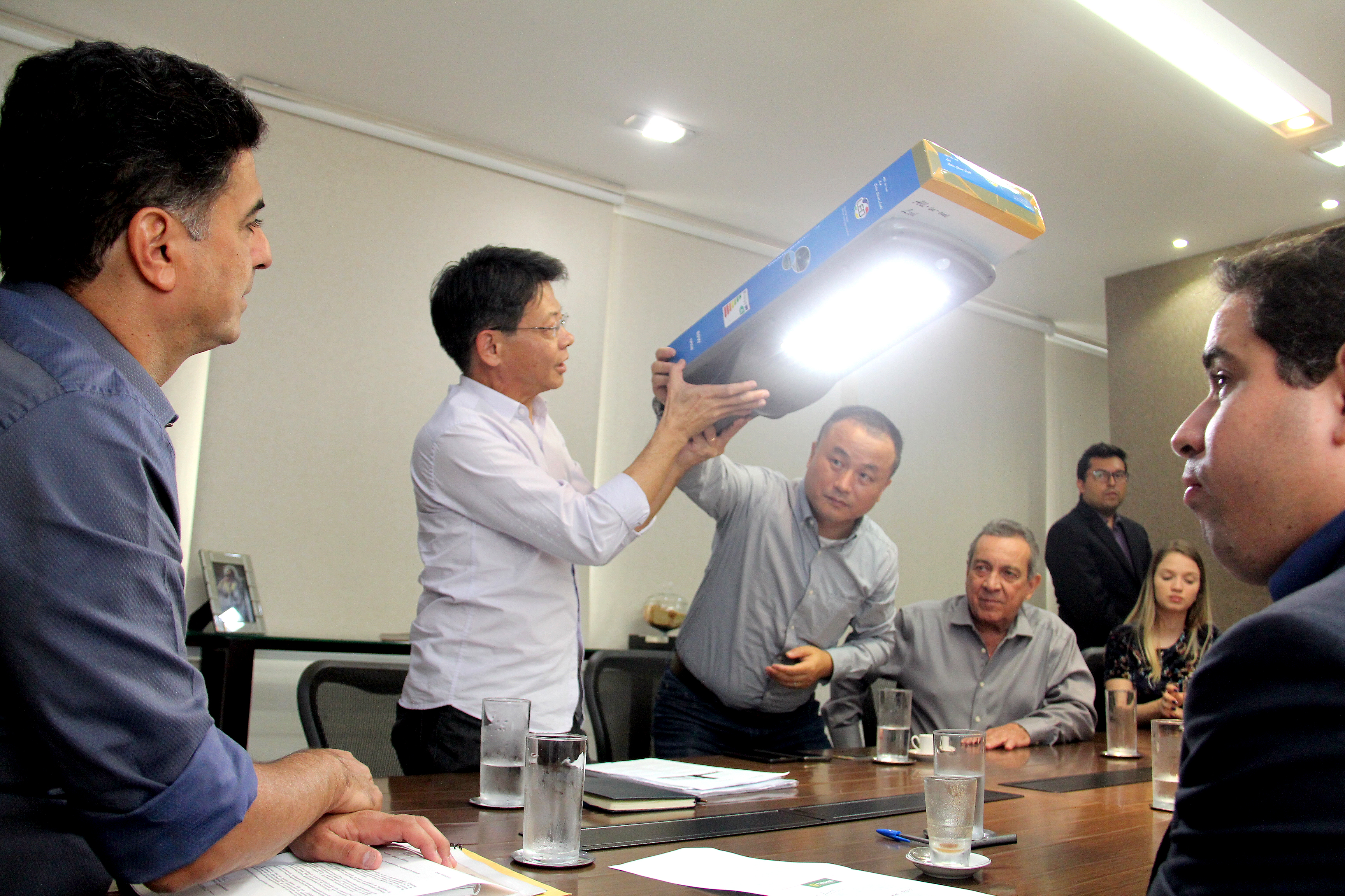 Para o novo empreendimento, os representantes chineses, Lawrence Liu e Henrique Kao, anunciaram um investimento de US$ 30 a 40 milhões – o equivalente a R$ 200 milhões -, que será aplicado na construção de uma linha de montadora de luminárias, movidas por energia solar, a qual na China já tem uma rede de 300 usinas instaladas, em pleno funcionamento.