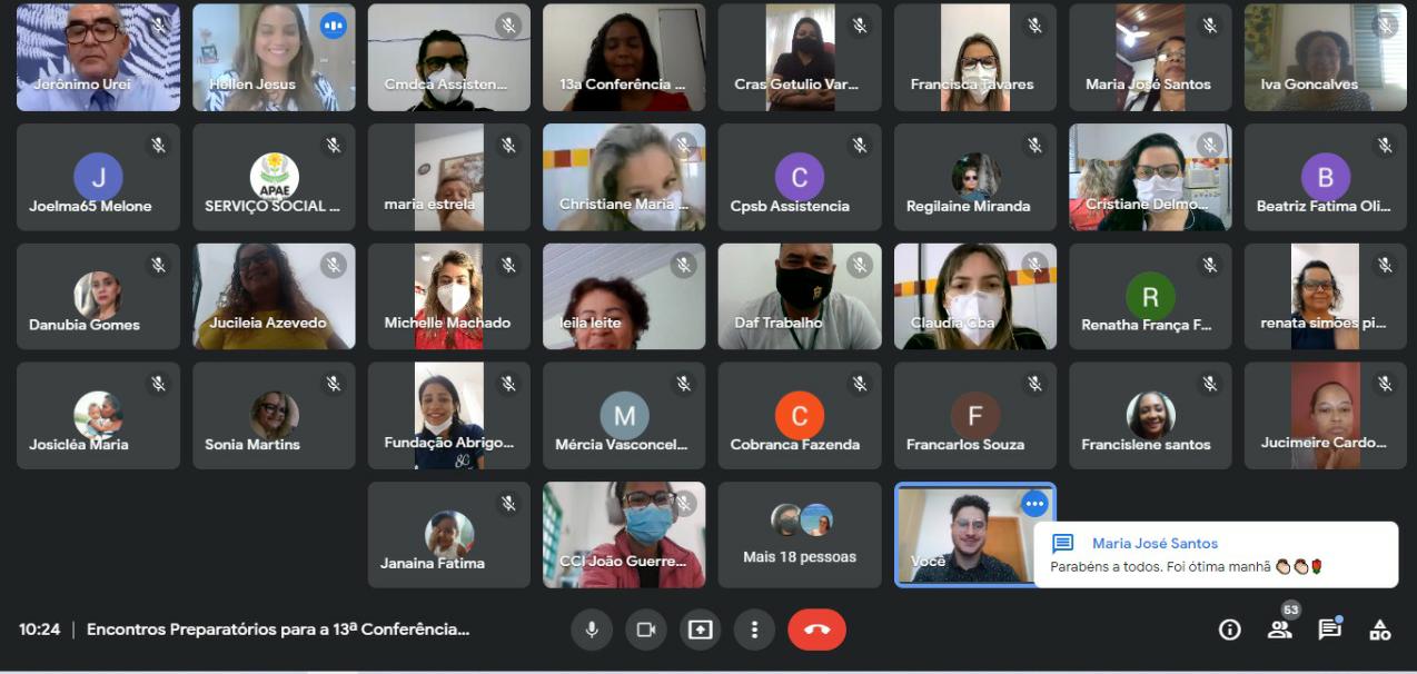 Para participar, os interessados devem acessar o link https://meet.google.com/tfp-sepb-qfb. As vagas são limitadas, com lotação máxima de cem participantes. “A 13ª Conferência Municipal de Assistência Social, avaliará a situação atual da política de Assistência Social e propor novas diretrizes para o aperfeiçoamento do Sistema Único de Assistência Social - SUAS pelo ente Municipal, Estadual e Federal. O debate se orienta no tema nacional que foi escolhido e na realidade local. Lembrando que esse encontro é o primeiro realizado pela Secretaria Municipal e Conselho Municipal de Assistência Social”, finalizou a secretária.