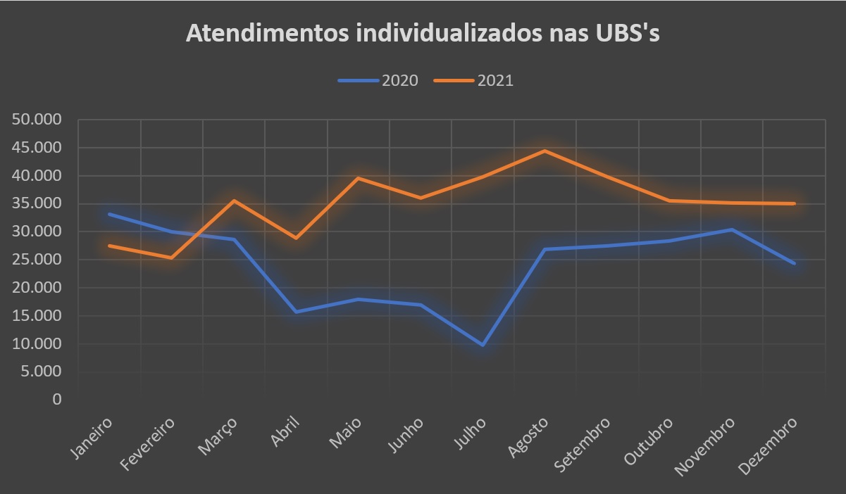 Isso pode ser constatado na plataforma e-SUS, que mostra que em janeiro de 2022 houve um novo salto na produção das unidades, que registraram 68.152 atendimentos individualizados. O recorde em tempos pandêmicos coincide com a transmissão da variante Ômicron do coronavírus e também da variante Darwin do vírus Influenza H3N2, que fez aumentar a busca pelos serviços de saúde. De acordo com o coordenador de Ações Básicas da SMS, Marcel Lemos, o aumento nos registros também pode refletir uma capacitação sobre o sistema e-SUS, realizada com enfermeiros e médicos das UBS’s de toda a Capital.