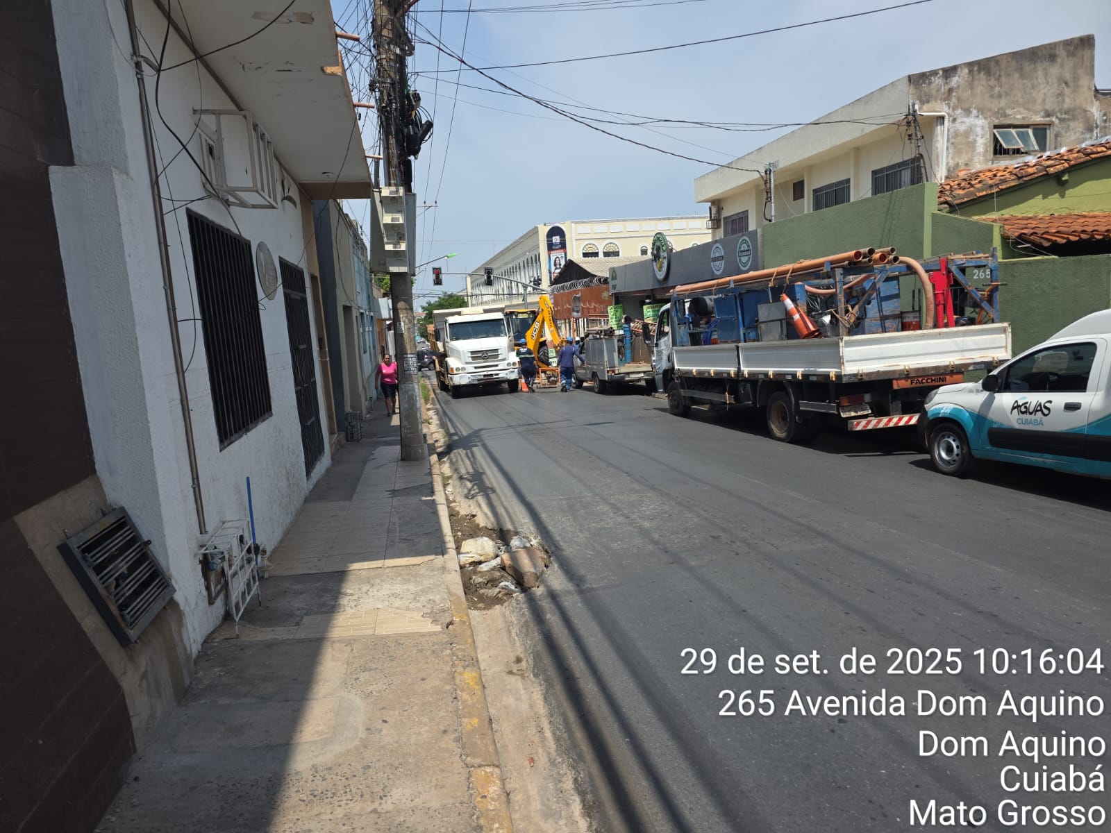A Prefeitura de Cuiabá acompanha, nesta segunda-feira (29), os trabalhos de reparo em uma rede de abastecimento de água na Avenida Dom Aquino, realizados pela concessionária Águas Cuiabá. O serviço é executado nas proximidades do Hospital H-Bento, no sentido bairro Porto, e exige a interdição total de um trecho da via.