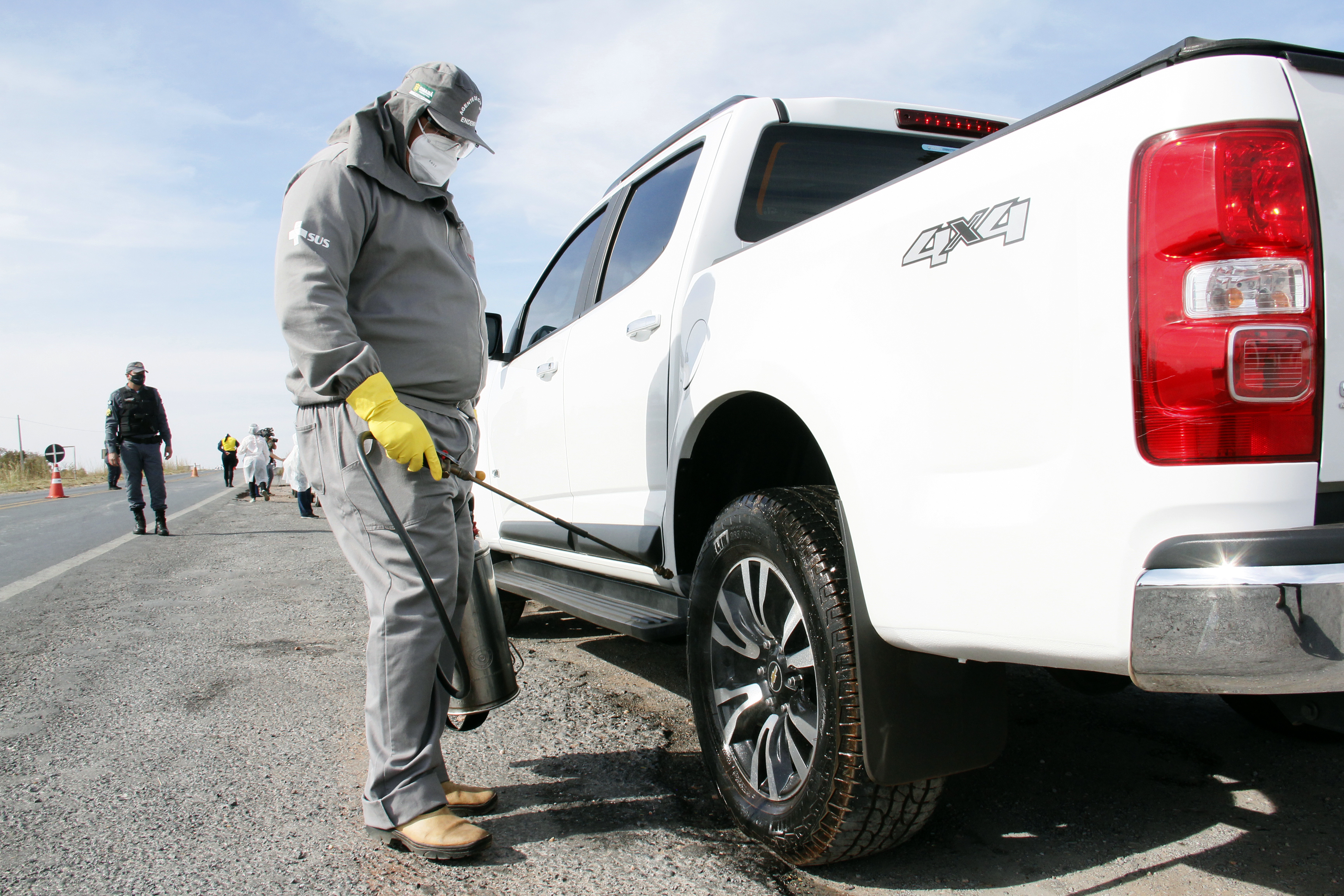 Além da aferição de temperatura e questionário junto aos condutores e passageiros, a equipe da Vigilância Sanitária também está fazendo a desinfecção dos pneus dos veículos com cloreto de benzalcônio, comumente utilizado na fabricação de detergentes, desengordurantes, com ação germicida e antisséptica. “É uma medida muito adotada nas barreiras fitossanitárias, na questão animal. E neste momento, nós estamos trabalhando isso também na questão da Covid-19”, explica o diretor da Vigilância em Saúde de Cuiabá.