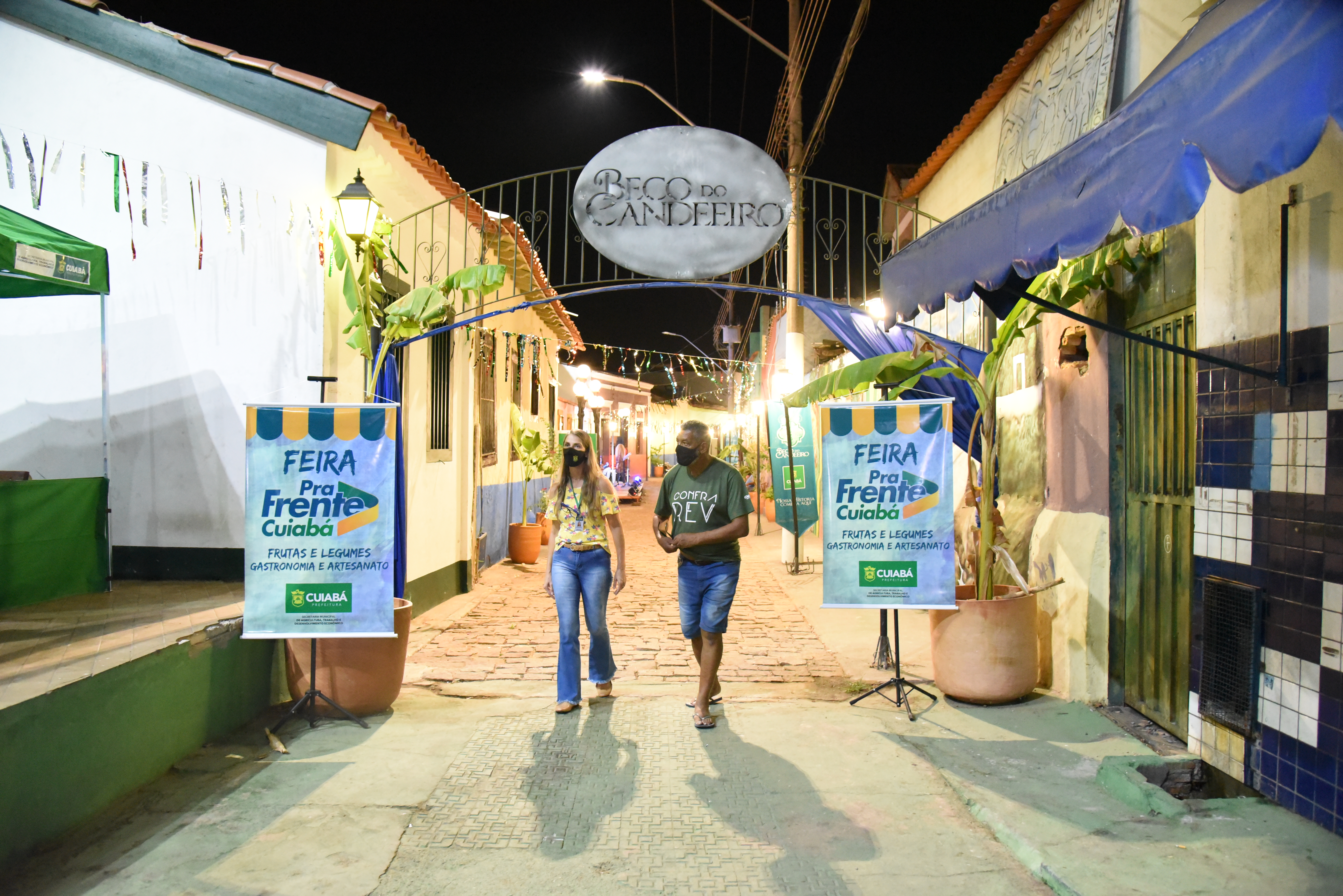 Frutas, verduras, legumes, comidas típicas cuiabanas, apresentação musical e performance circense. Na noite da última quinta-feira (12) e sexta-feira (13), o Beco do Candeeiro recebeu a programação do Pra Frente Cuiabá, programa da Secretaria de Agricultura, Trabalho e Desenvolvimento Econômico e do projeto Arte no Beco, da Secretaria de Cultura, Esporte e Lazer. O evento teve entrada franca e seguiu todas as medidas de biossegurança.