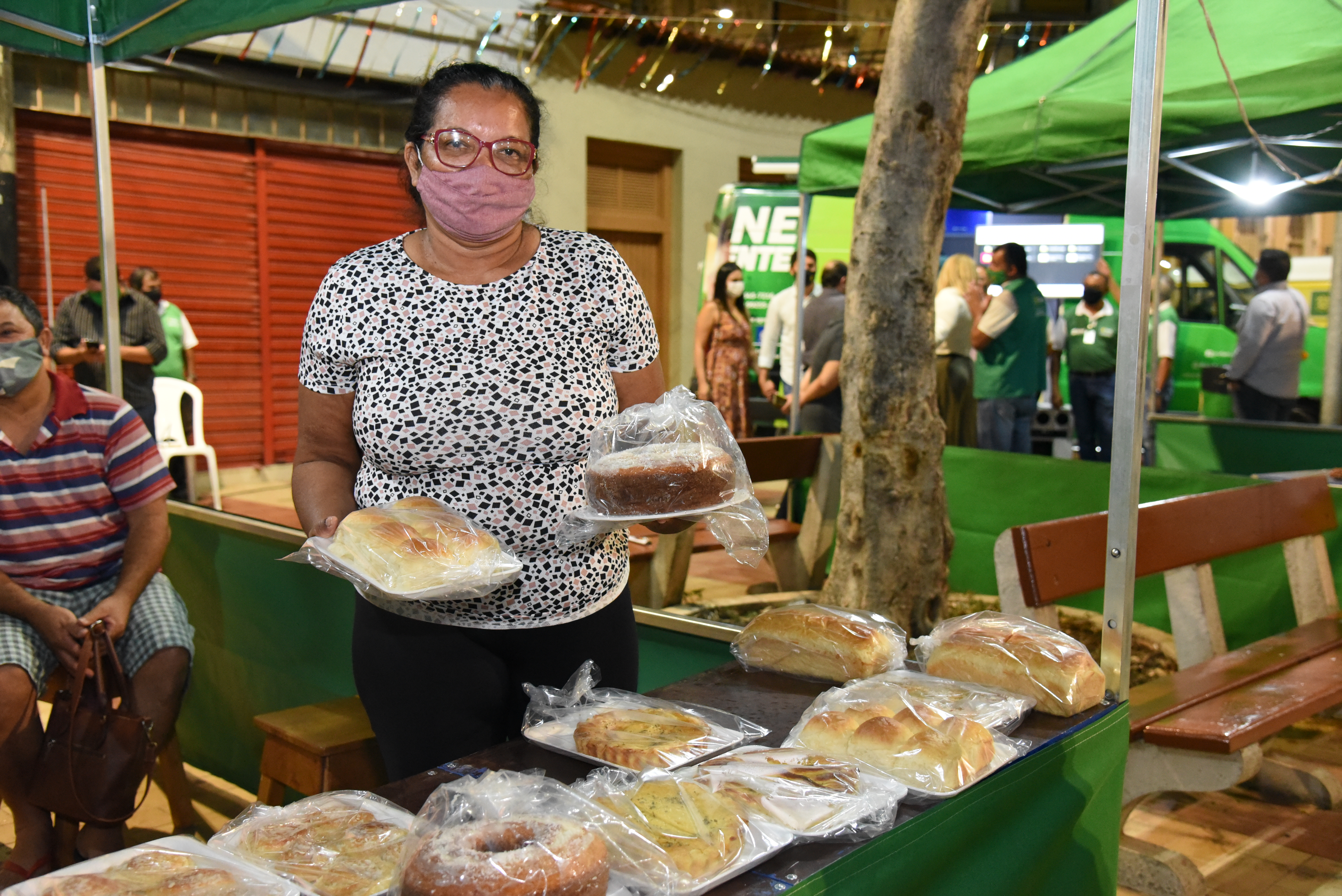 No local também se encontravam bolos, tortas e roscas, todos feitos por Dona Antônia das Dores, 56 anos. Ela aceita encomendas pelo número (65) 99278-3123. Também estavam disponíveis no local, peças artesanais, como brincos, colares e anéis feitos por Cleonice Monzilar.