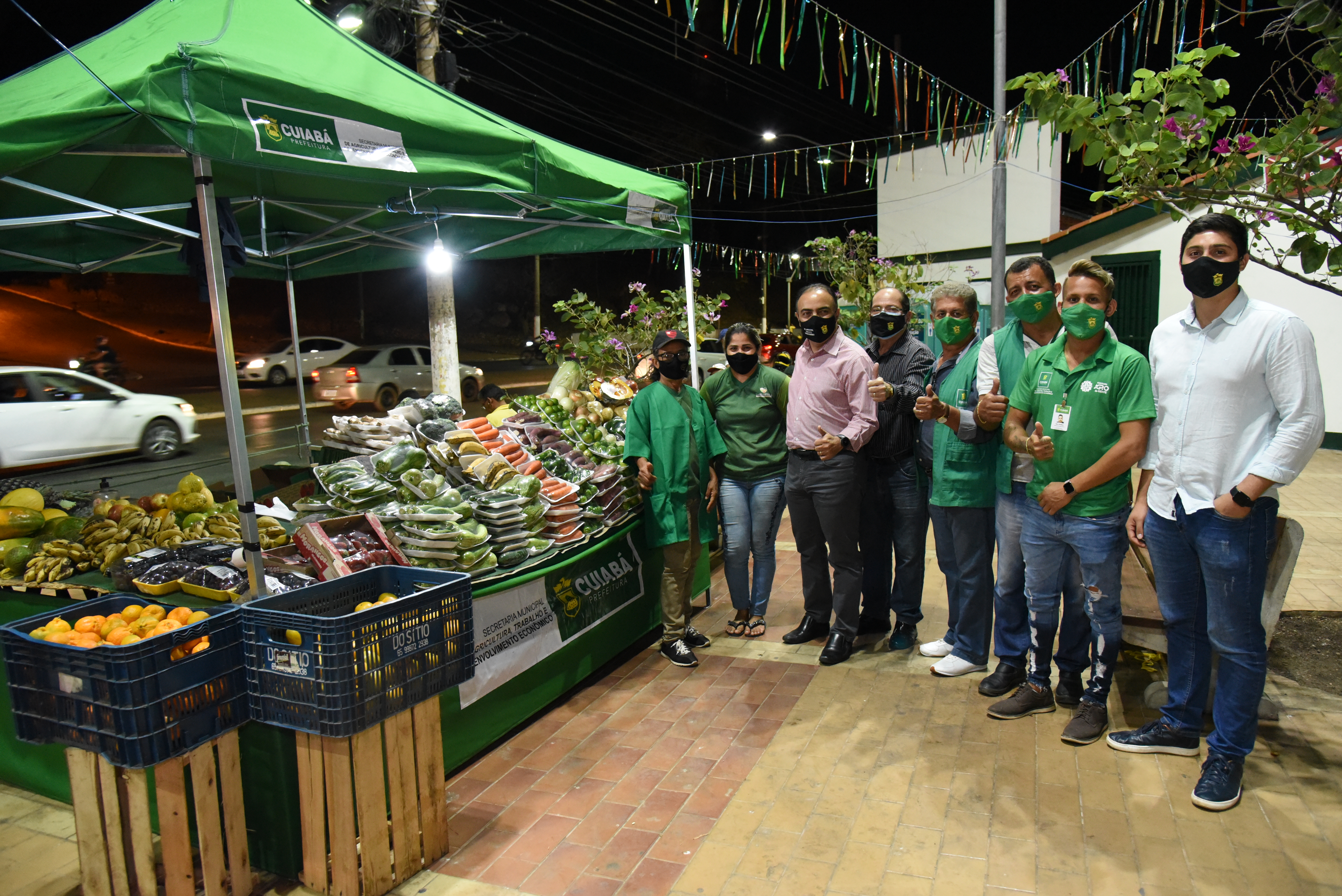 Barracas de legumes, frutas, verduras e comidas típicas preenchiam o espaço das praças Alberto Novis e Senhor dos Passos. Leide Laura, de 38 anos estava empolgada com a participação no evento. Feirante há 18 anos, ela começou fazendo uma diária como ajudante de uma das barracas no Mercado do Porto e pegou gosto pelo trabalho. Com ajuda do ex-patrão e da coordenadora do Mercado, Rosilma, hoje ela tem sua própria barraca, seus fornecedores e é uma dentre tantos profissionais que fomentam a cadeia produtiva da agricultura familiar em Cuiabá.