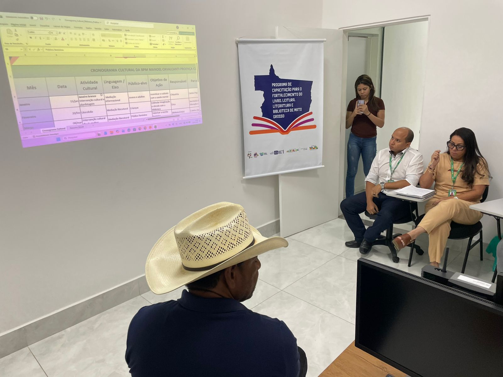Cuiabá está entre os oito municípios participantes do primeiro ciclo de imersão cultural do Programa de Capacitação para o Fortalecimento do Livro, Leitura, Literatura e Biblioteca de Mato Grosso. A atividade foi realizada nesta semana e a unidade contemplada foi a Biblioteca Municipal Manoel Cavalcanti de Proença, localizada na sede da Secretaria Municipal de Cultura de Cuiabá, para os servidores que atuam no local, além da presença do secretário municipal de Cultura, Johnny Everson.