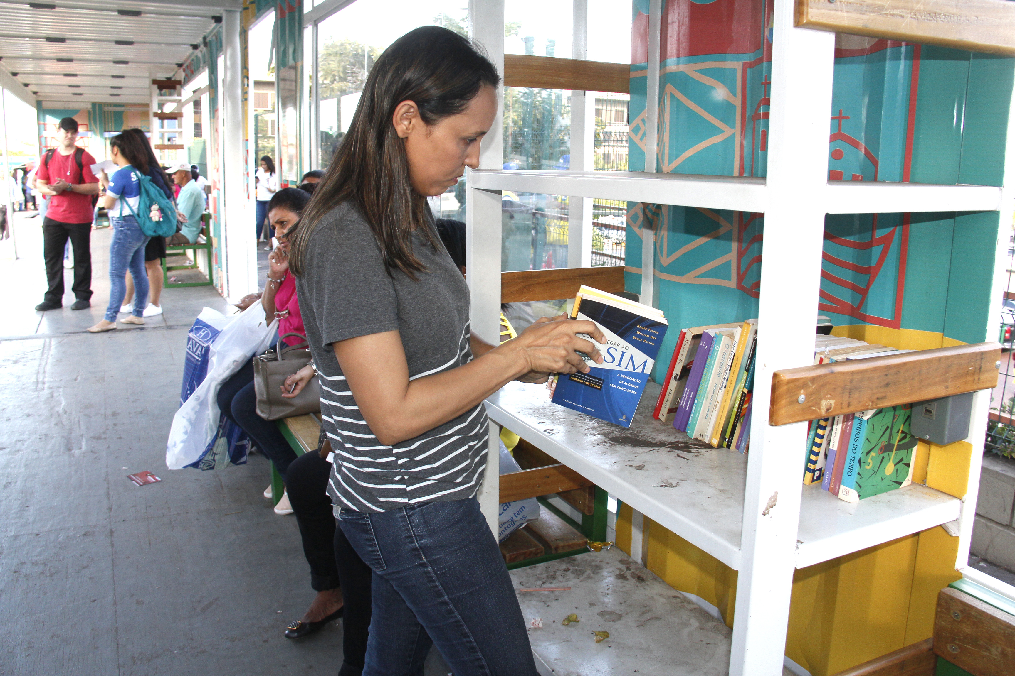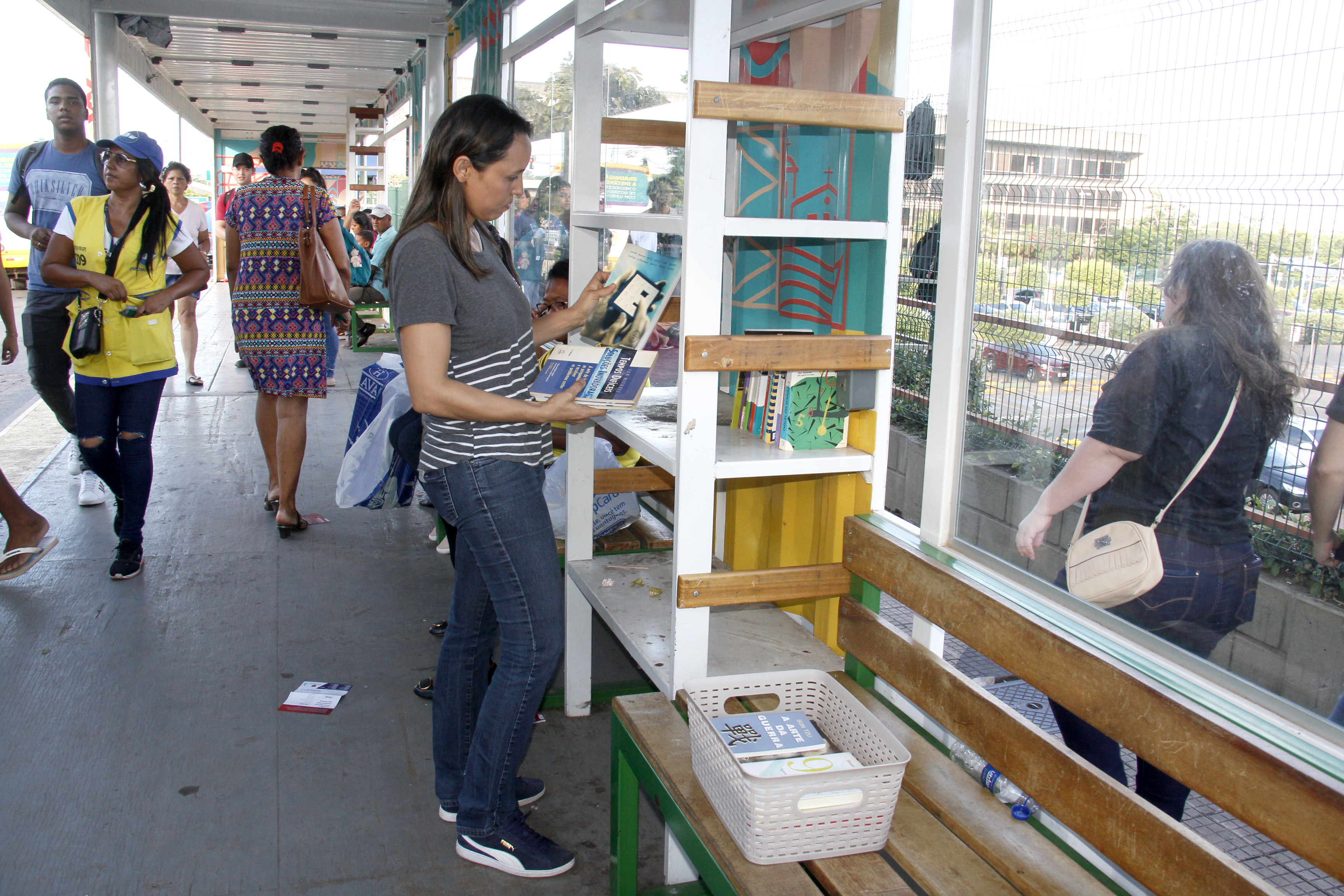 Foi então que, no caminho entre a residência e o trabalho, a bióloga notou que o novo modelo de embarque e desembarque de passageiros, edificado pela Prefeitura de Cuiabá na Avenida Historiador Rubens de Mendonça (Av. do CPA), possuía um espaço voltado especificamente para este fim. Com o findar do expediente, Luciana não teve dúvidas: colocou a cesta de livros no carro, levou-os até a inovadora estrutura e, um a um, organizou os exemplares nas prateleiras.
