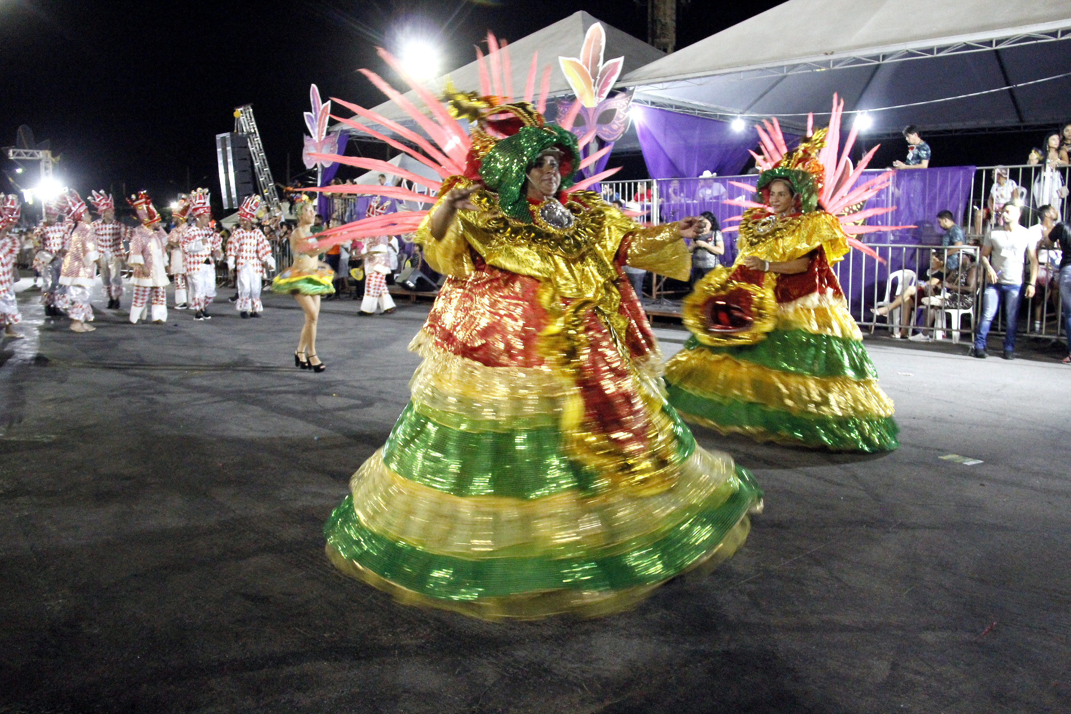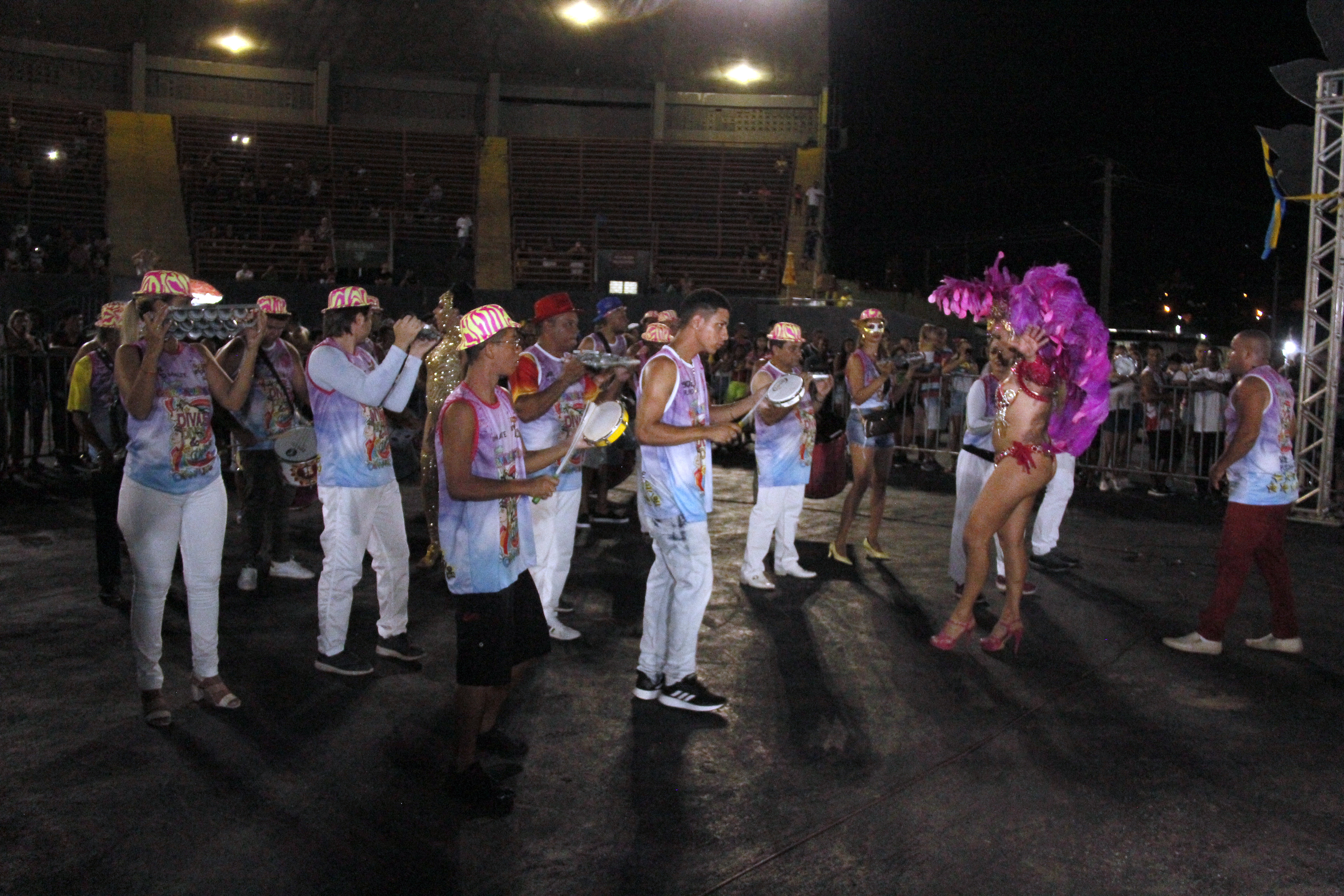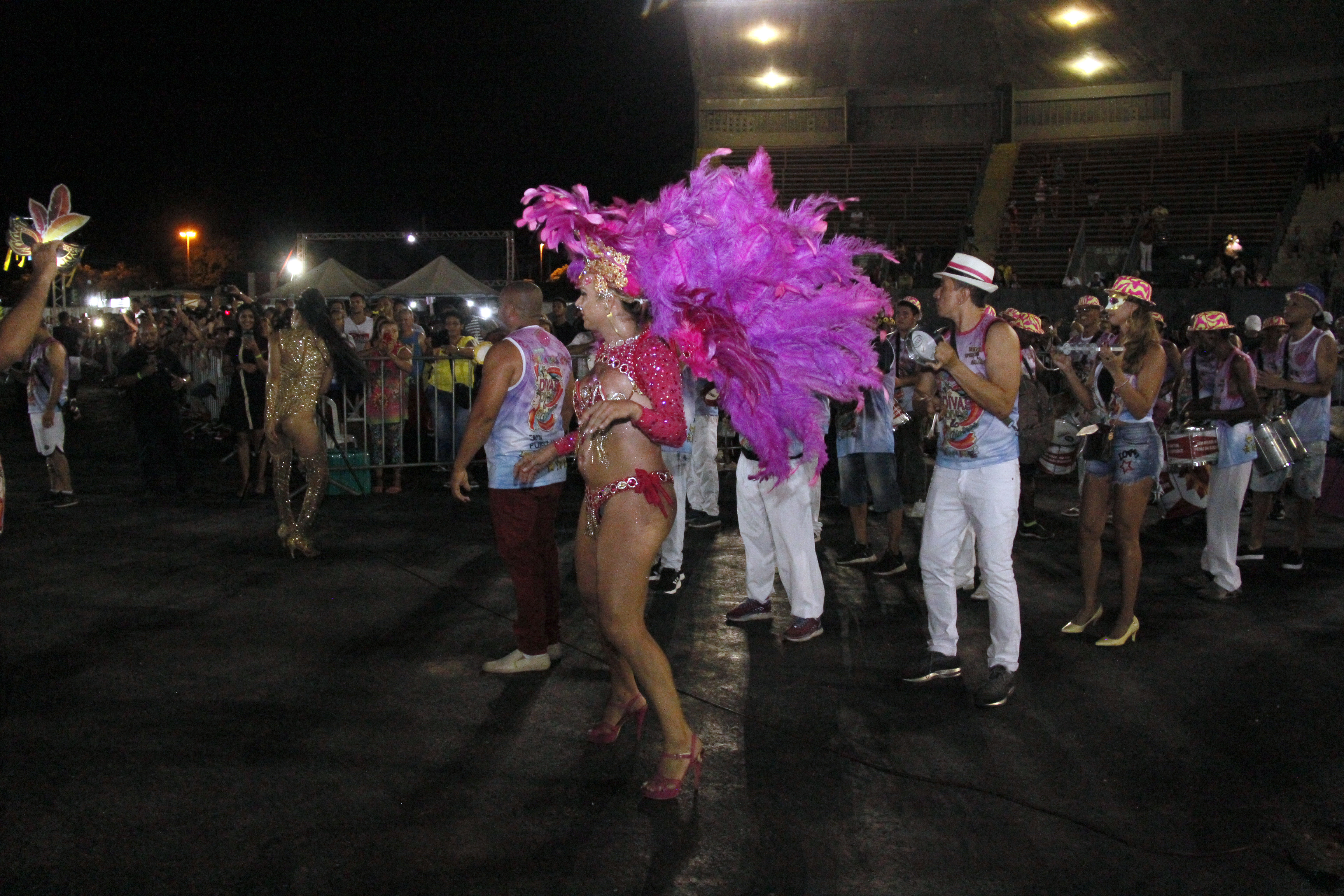 No pátio em frente da arquibancada os blocos Vaidade, Unidos do “Carumbé”, Império de Casa Nova, Unidos do Araés, Melados e Boca Suja desfilaram ao som de seus respectivos samba enredo. Cada unidade contou com 60 minutos para desfilar e apresentar alegorias aos jurados. A abertura do desfile ficou por conta dos blocos “Divas” e “Bloco Plus Samba”. “O carnaval está maravilhoso e empolgante. É importante incentivar o carnaval em Cuiabá, aqui também tem tradição e cultura e tudo isso pode estar presente nessa festa”, explicou a foliã, Tânia da Silva Santana após acompanhar o desfile dos blocos.