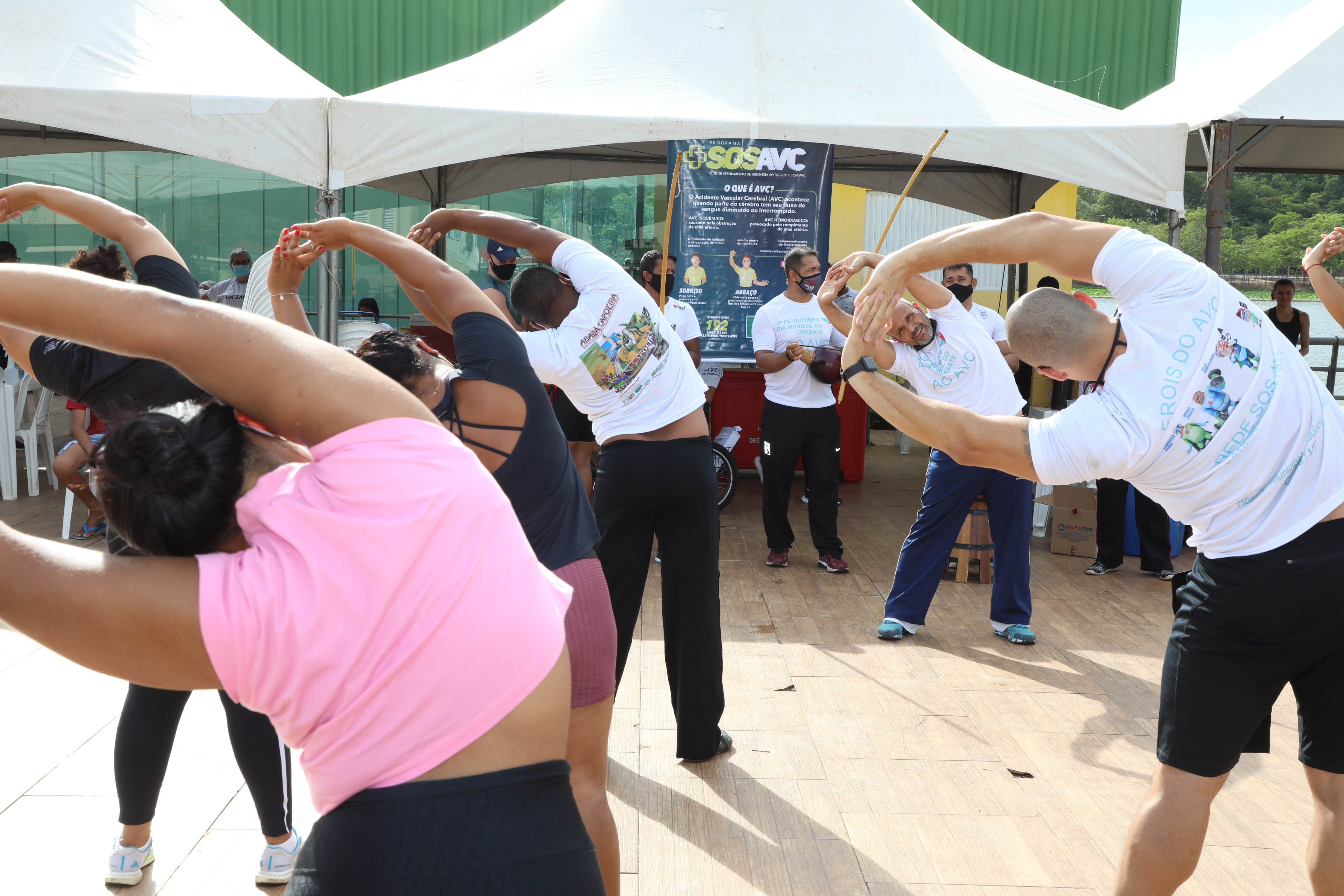 Em 29 de outubro é celebrado o Dia Mundial de Combate ao AVC (Acidente Vascular Cerebral), que é a segunda maior causa de óbito em todo o mundo e a primeira causa de incapacidade. Para chamar a atenção da população para essa doença e incentivar a manutenção de hábitos saudáveis para preveni-la, a equipe da Rede SOS AVC, da Prefeitura de Cuiabá, realizou na manhã deste sábado (30) a Segunda Caminhada Rede SOS AVC no Parque das Águas. Além da caminhada, o evento contou com aulas de ginástica funcional e zumba e também teve aplicação de auriculoterapia e vacinação contra o coronavírus.