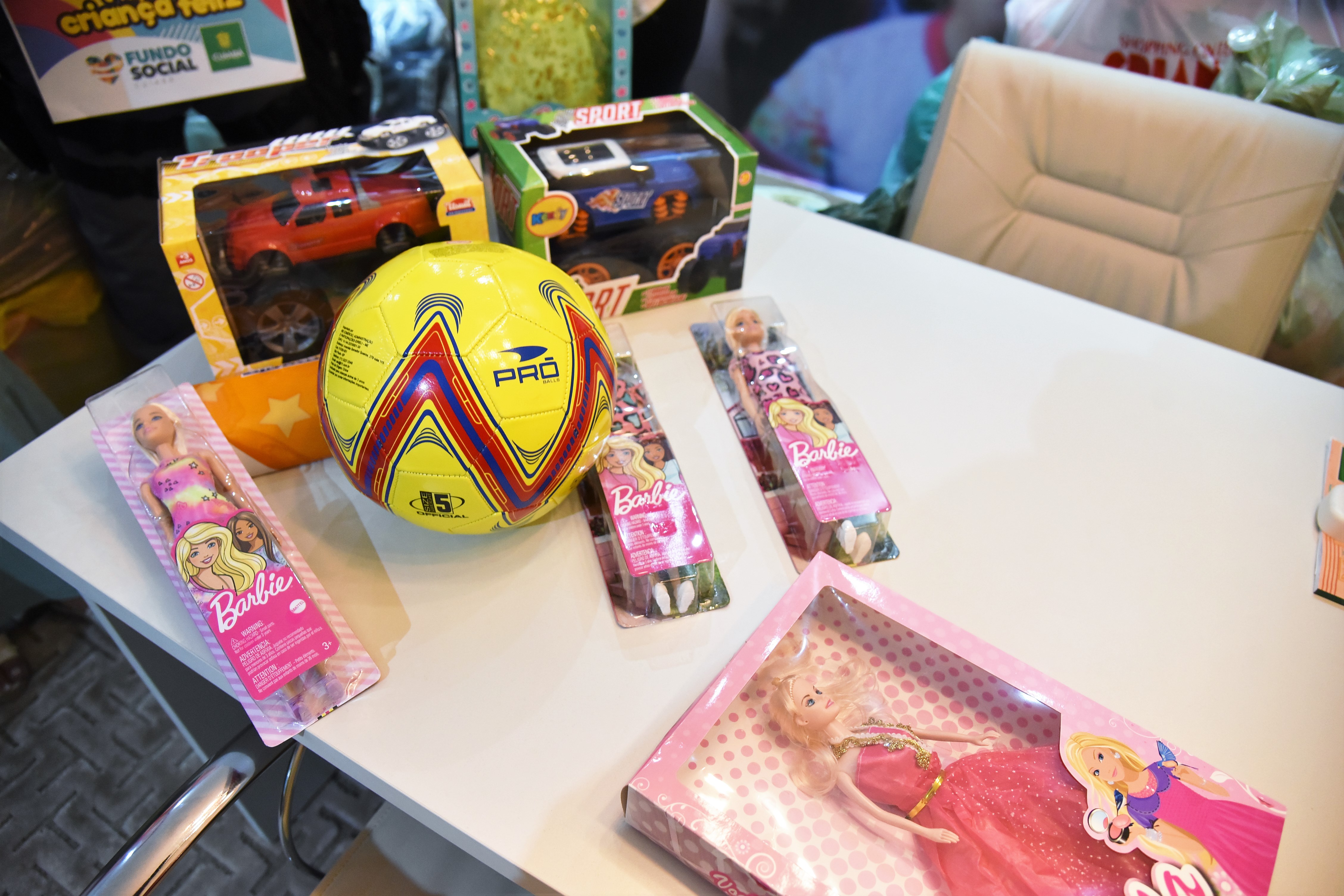 Bonecas, bolas e carrinhos irão fomentar sorrisos. Os brinquedos foram arrecadados na campanha “Doe um brinquedo e faça uma criança feliz”, ação organizada pelo Fundo Social Cuiabá ligado ao Núcleo da Primeira-Dama de Cuiabá, Márcia Pinheiro. A iniciativa conta com a parceria da
