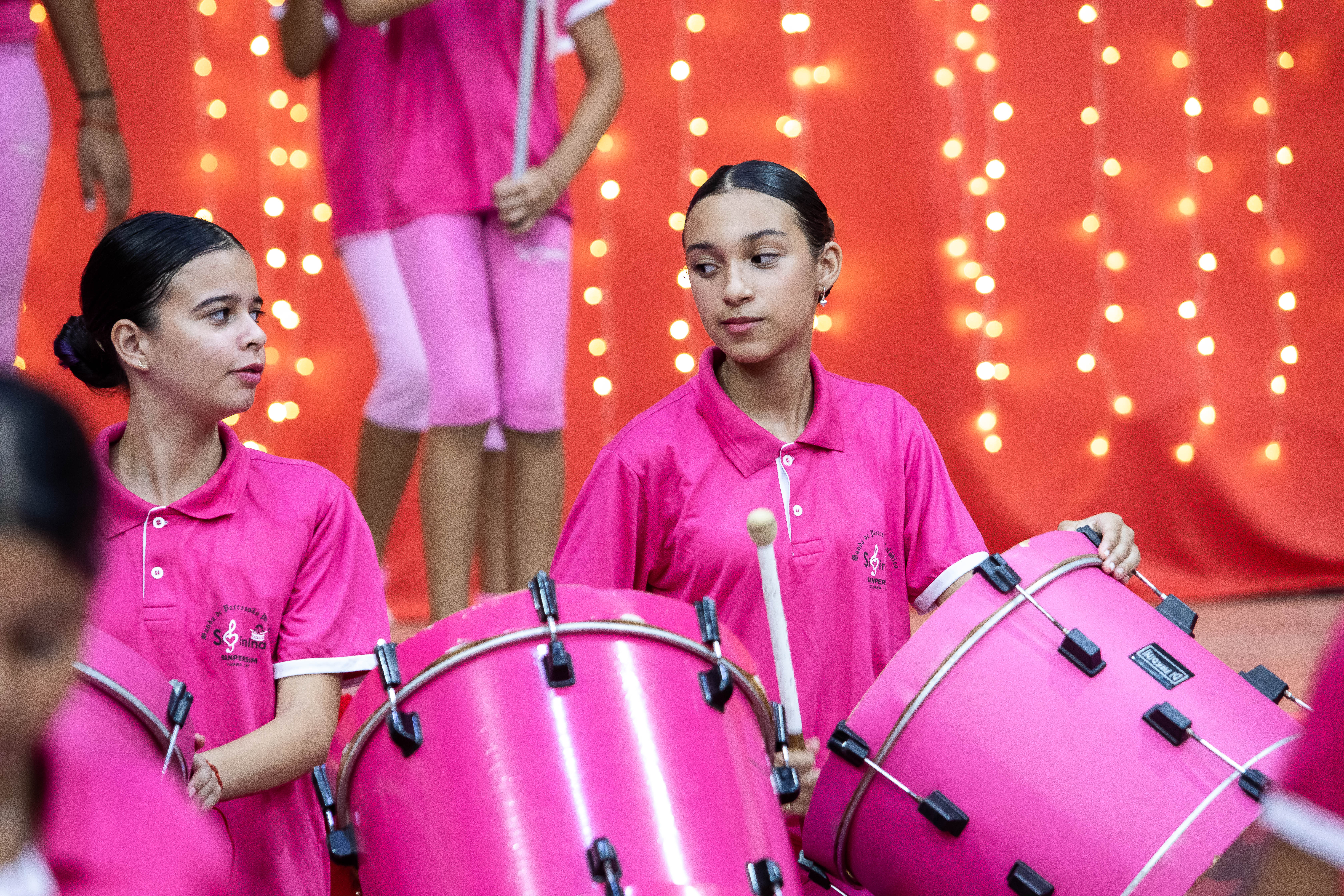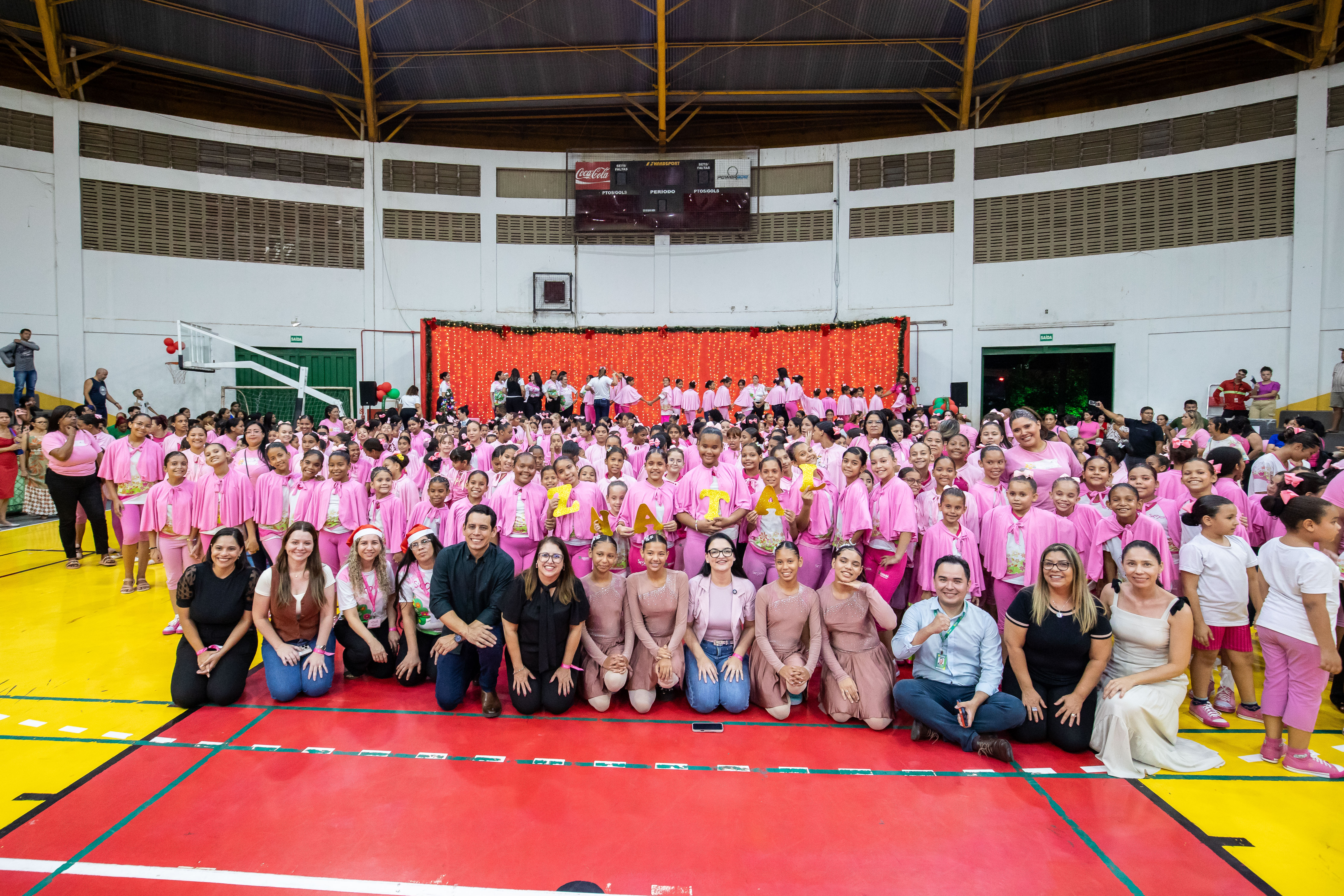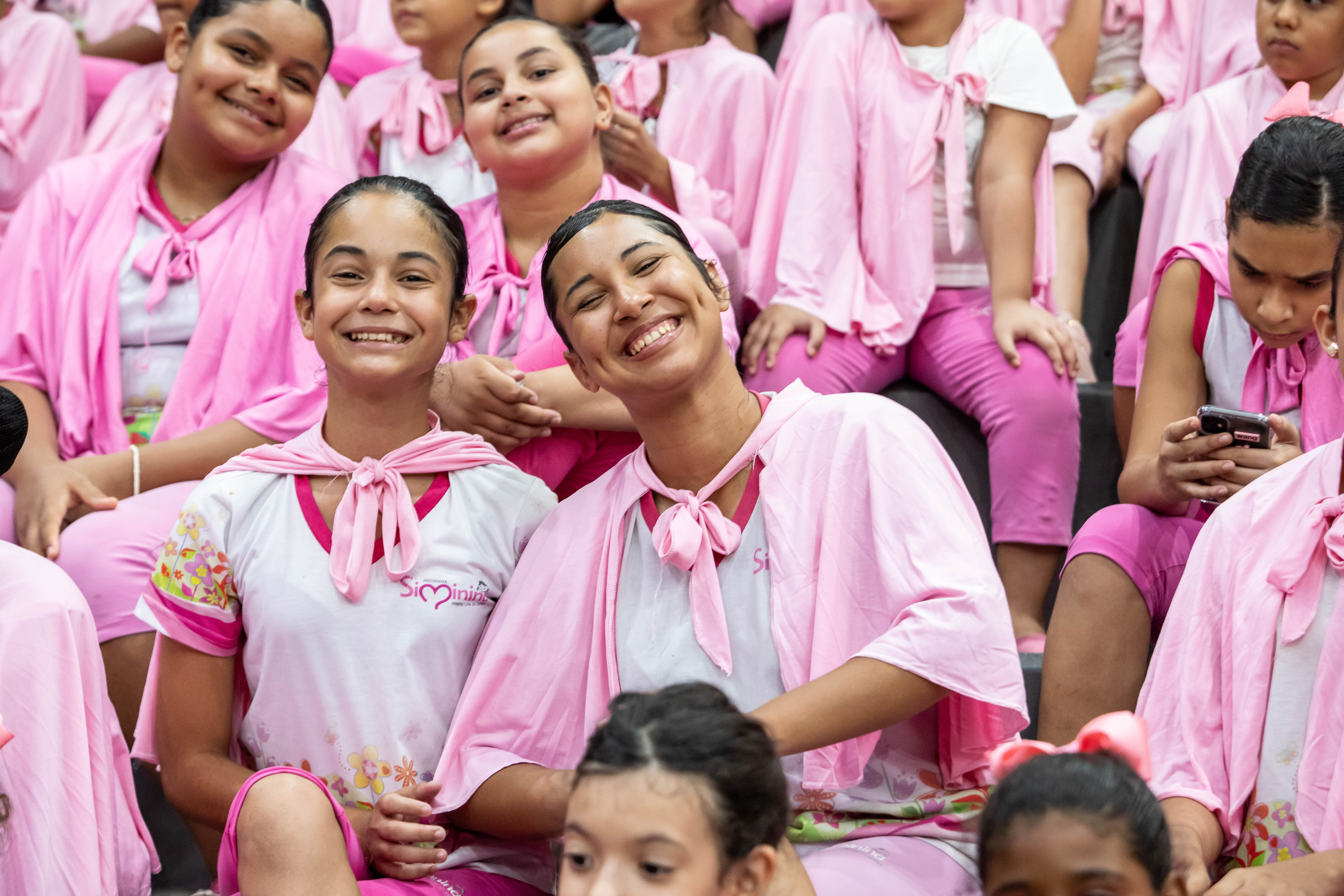 Mais de 56 meninas encerraram o ano de 2025 com uma belíssima apresentação natalina na noite da última quarta-feira (17), no Ginásio Verdinho, em Cuiabá. A Cantata de Natal do Programa Siminina reuniu famílias, educadores e moradores do bairro em uma celebração marcada por música, cores e emoção, reafirmando o papel do projeto na formação cultural e cidadã das participantes.