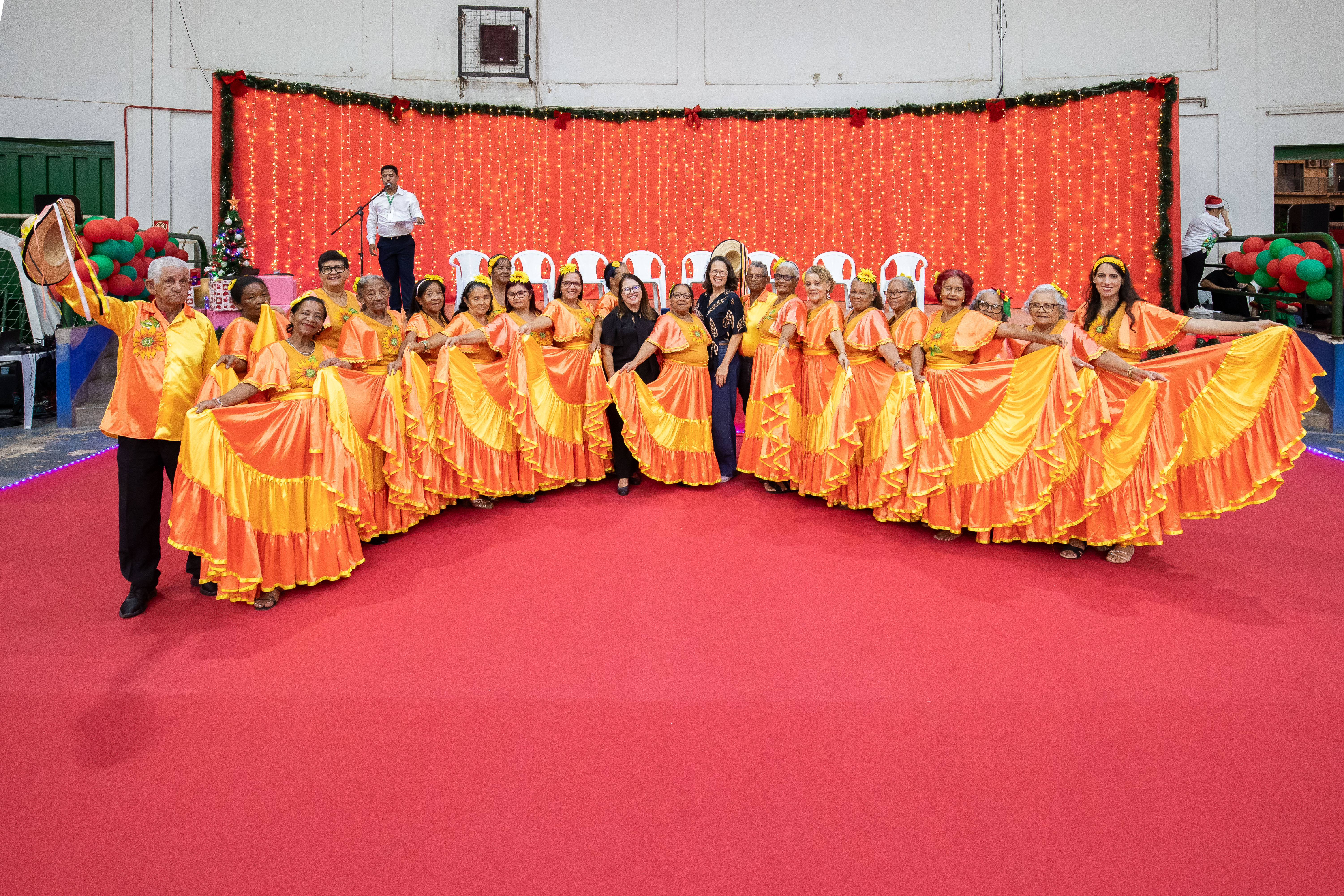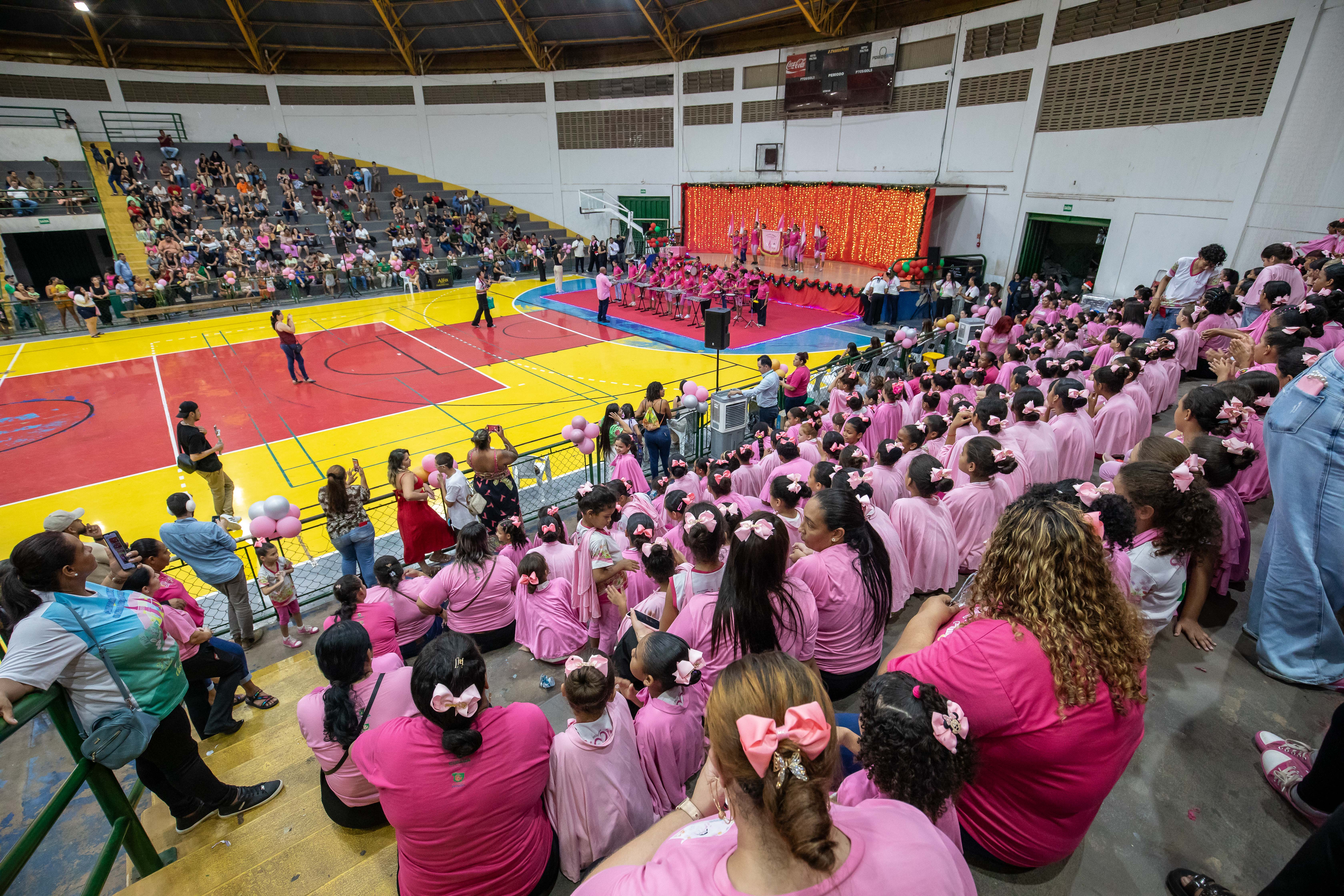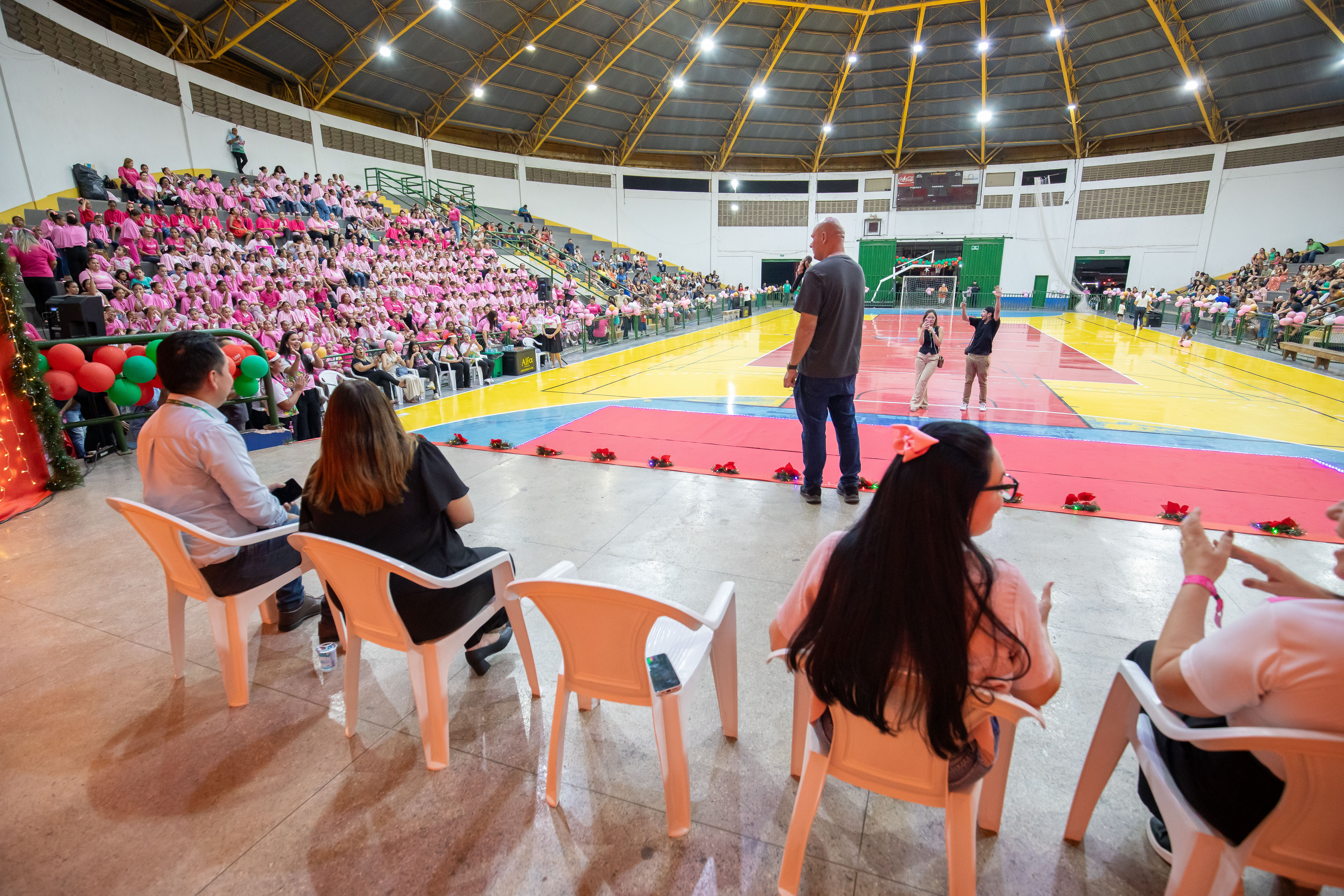Mais de 56 meninas encerraram o ano de 2025 com uma belíssima apresentação natalina na noite da última quarta-feira (17), no Ginásio Verdinho, em Cuiabá. A Cantata de Natal do Programa Siminina reuniu famílias, educadores e moradores do bairro em uma celebração marcada por música, cores e emoção, reafirmando o papel do projeto na formação cultural e cidadã das participantes.