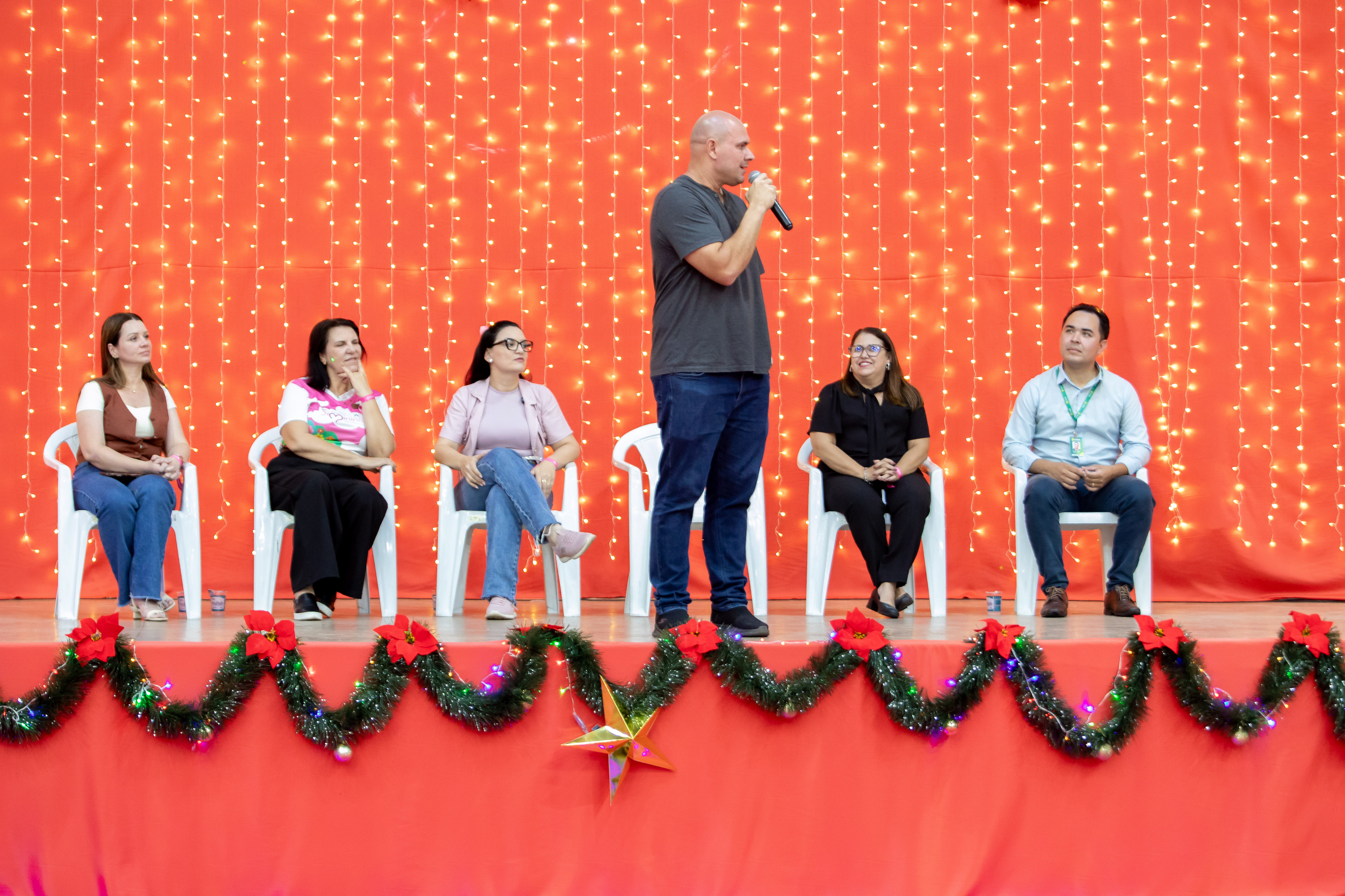 O ritmo tomou conta do espaço com a apresentação do grupo de percussão, que fez o público acompanhar cada batida com palmas e atenção. Para encerrar, o coral natalino preencheu o ginásio com vozes afinadas e mensagens de esperança, emocionando pais, professores e visitantes. Entre luzes, canções e abraços, a Cantata de Natal se despediu como um capítulo bonito de um ano que ficará na lembrança de todos.