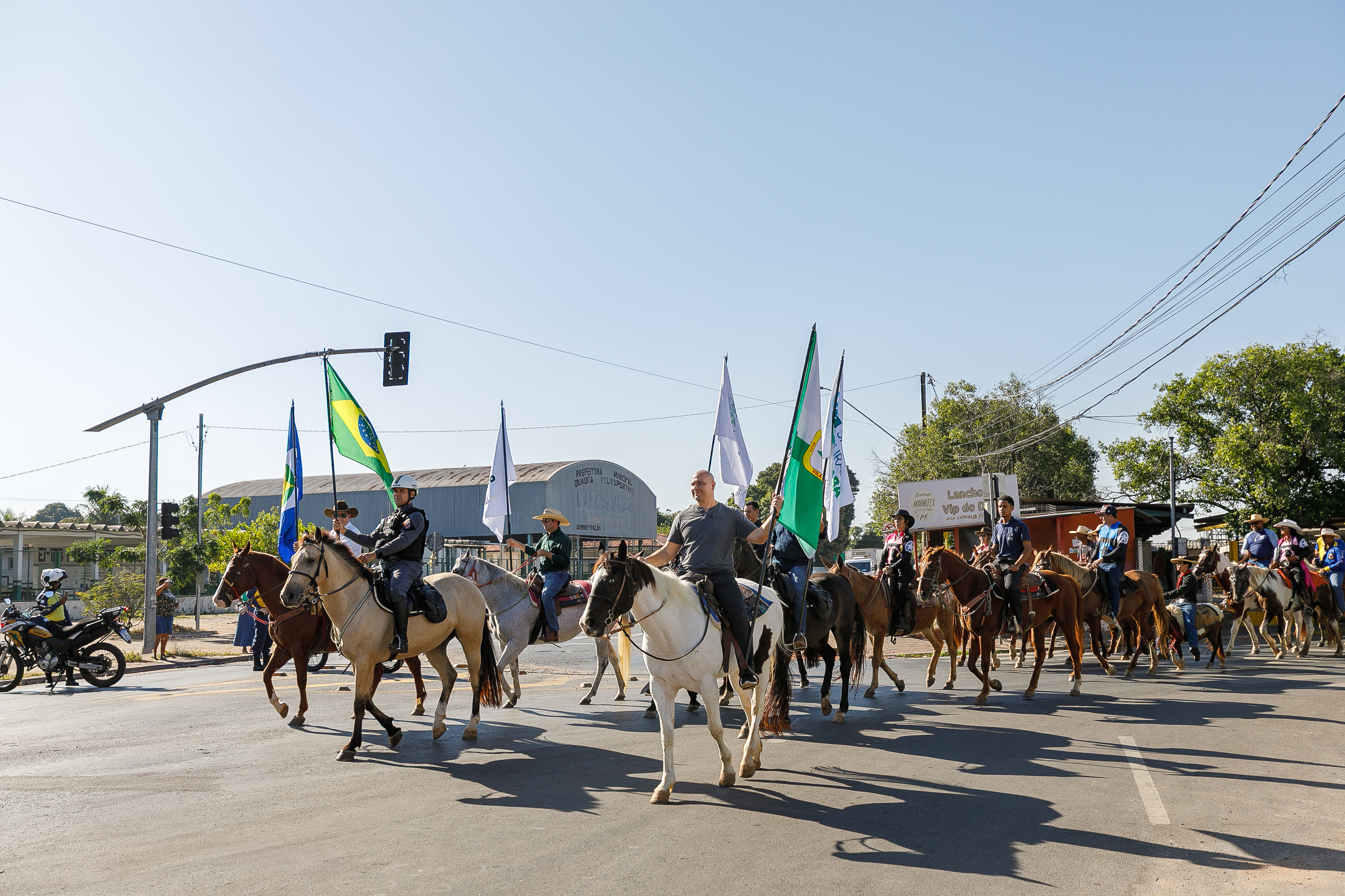 "Fiquei feliz porque o presidente do Sindicato Rural, meu amigo Celso Nogueira, disse que sou o primeiro prefeito a participar da cavalgada (fazer o trajeto). Eu acho que não, deve ter tido outros prefeitos no passado, numa época em que era mais comum. Mas estou aqui participando, prestigiando e dando uma força para todos eles", comentou o prefeito, reforçando seu compromisso com as tradições da capital.