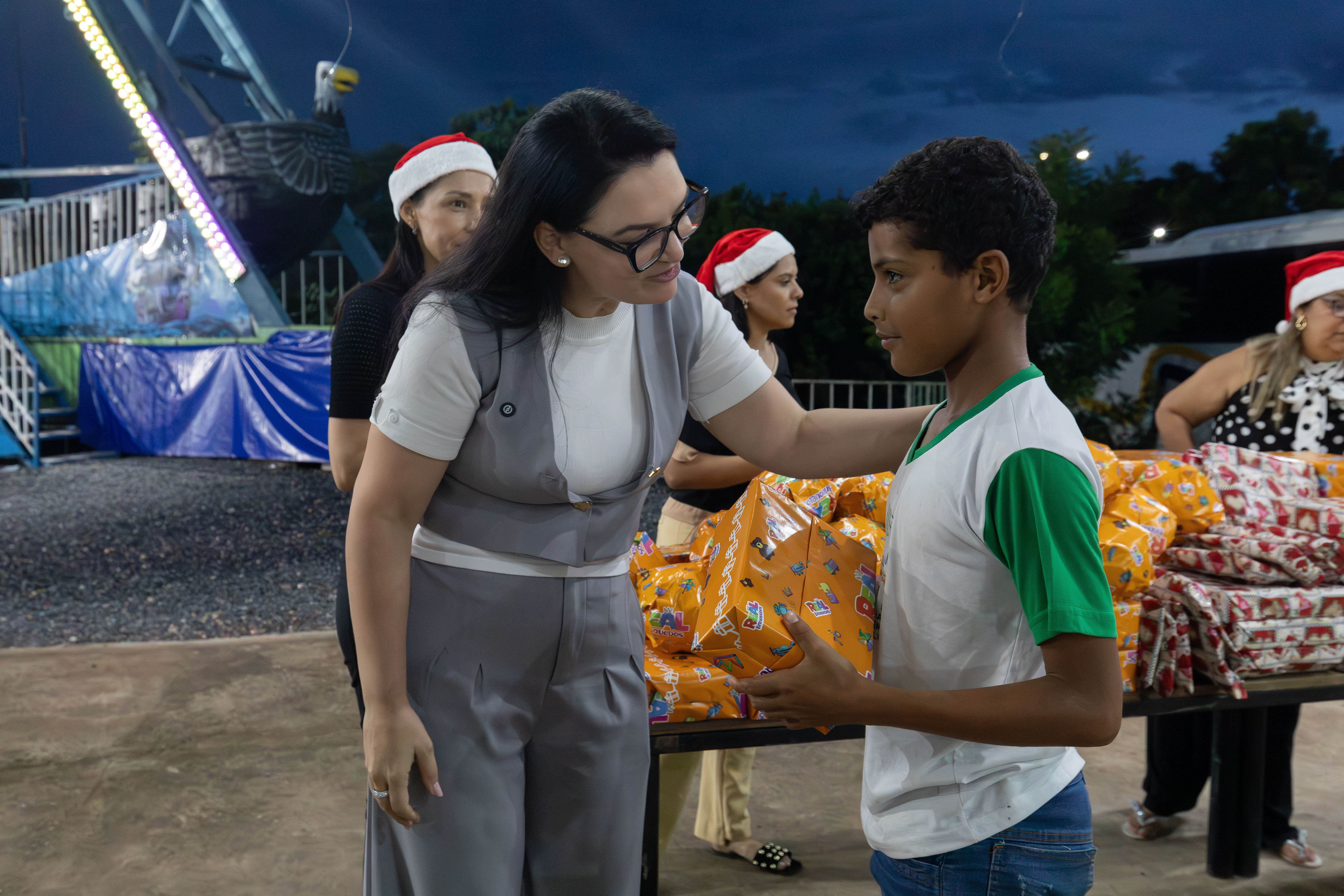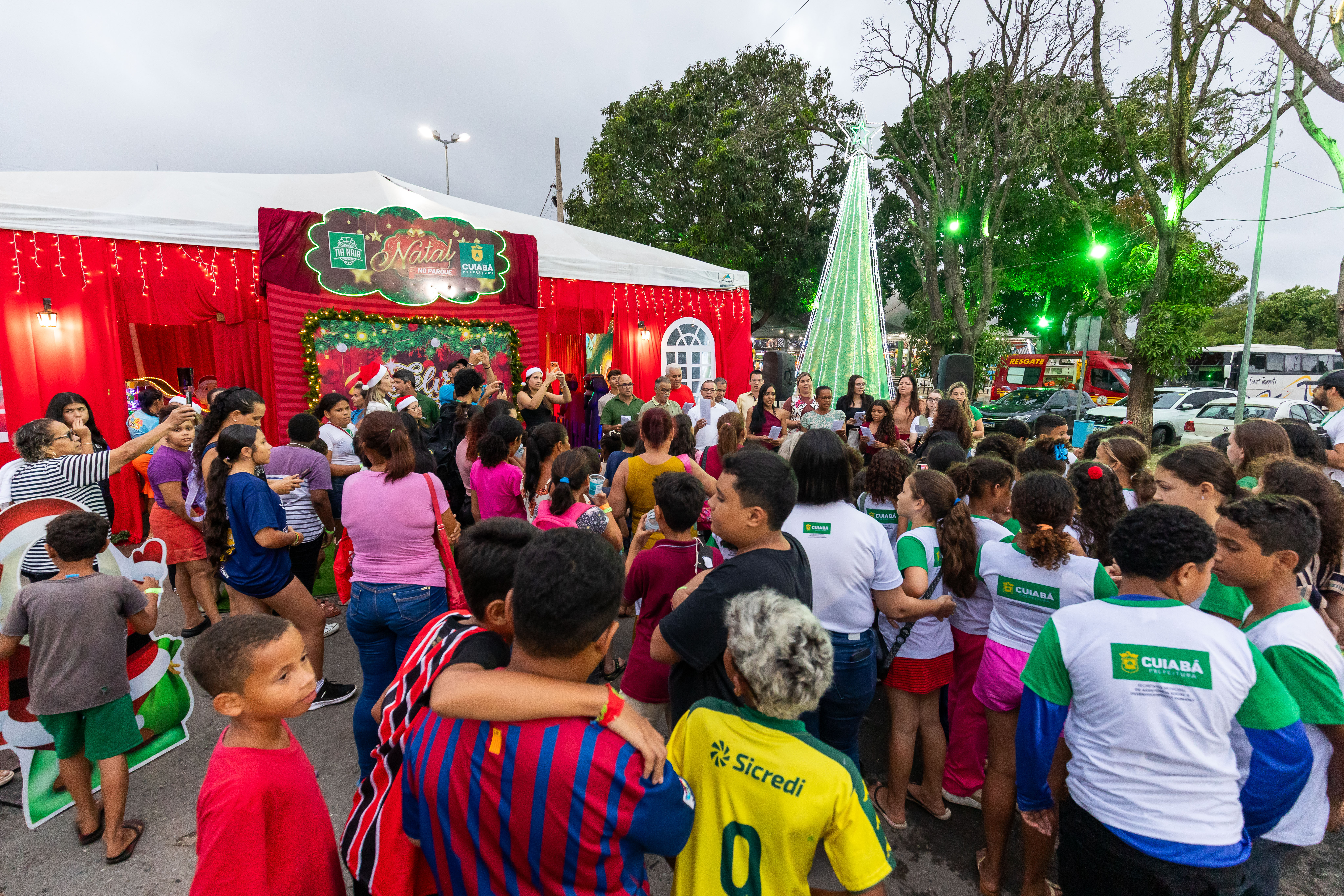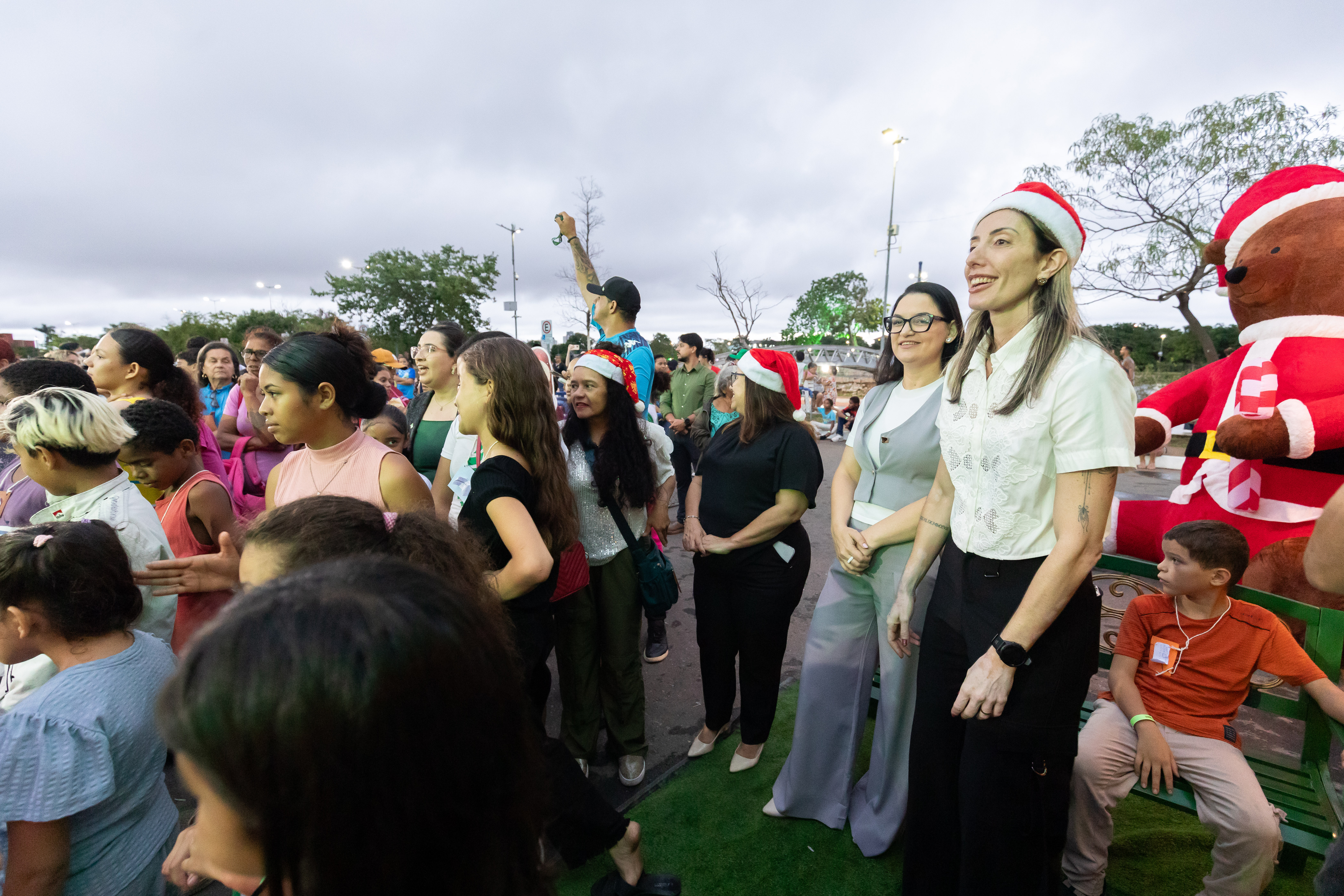 O “Natal no Parque” e o “Natal do Serviço de Convivência e Fortalecimento de Vínculos”, ações promovidas pela Prefeitura de Cuiabá, reuniram crianças, famílias e visitantes no Parque Tia Nair, na última terça-feira (16), em um momento de muita alegria, diversão, solidariedade e inclusão. O evento contou com a atuação integrada da Secretaria de Ordem Pública e da Secretaria de Assistência Social, Direitos Humanos e Inclusão.