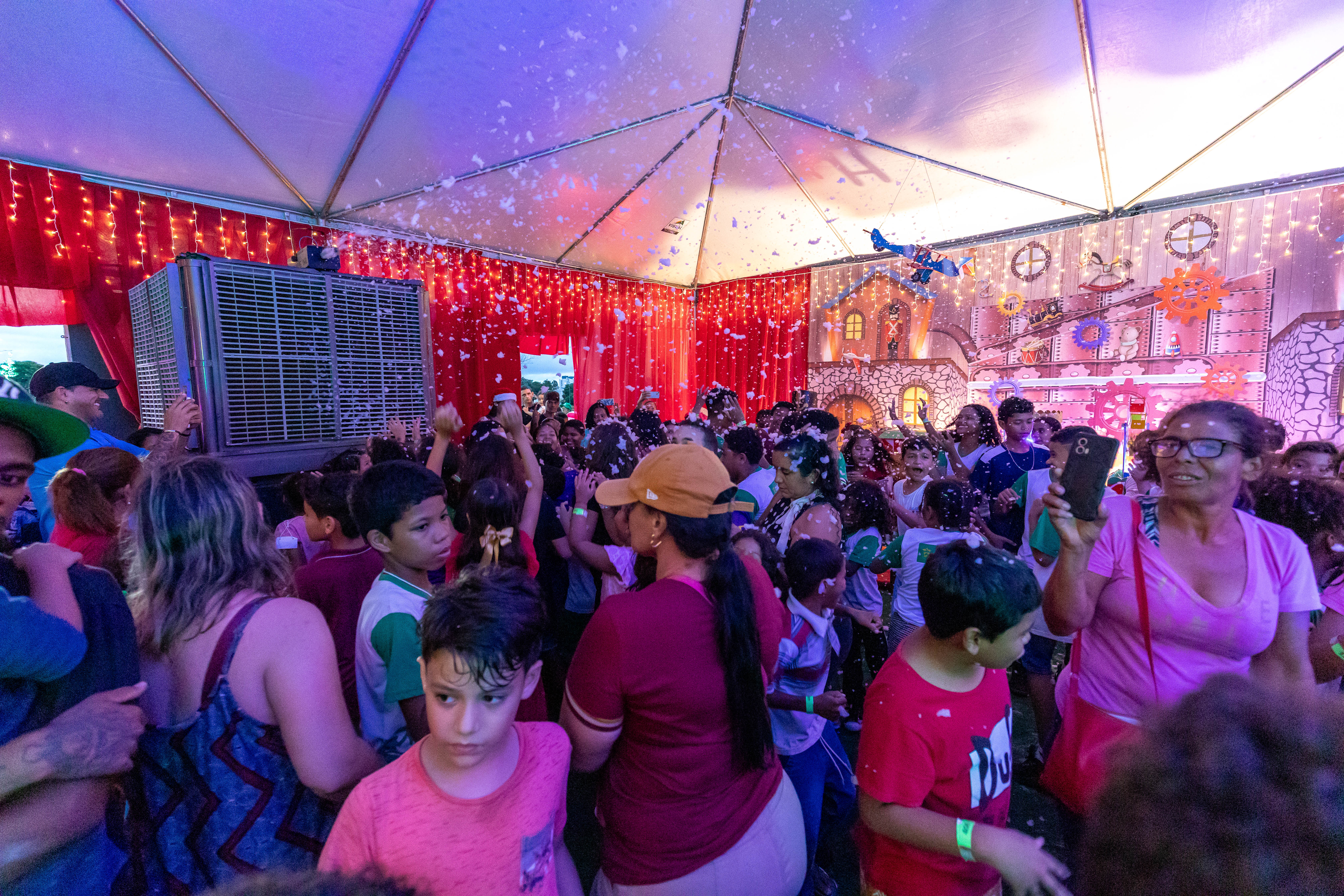 O evento também recebeu crianças atendidas pelos Centros de Referência de Assistência Social (CRAS), que participaram de uma programação especial e receberam presentes. A ação foi coordenada pela secretária municipal de Assistência Social, Direitos Humanos e Inclusão, Hélida Vilela, que explicou que o objetivo foi proporcionar uma experiência inédita às crianças do Serviço de Convivência e Fortalecimento de Vínculos (SCFV).