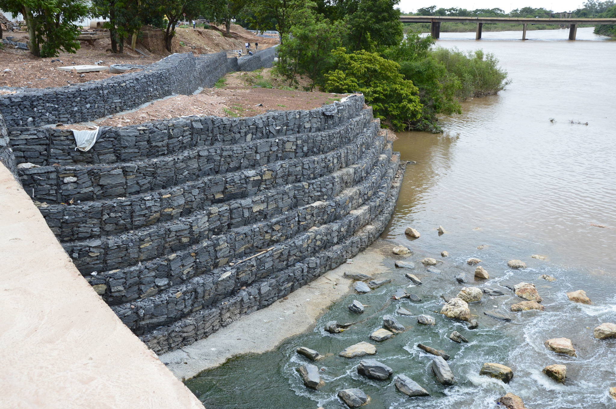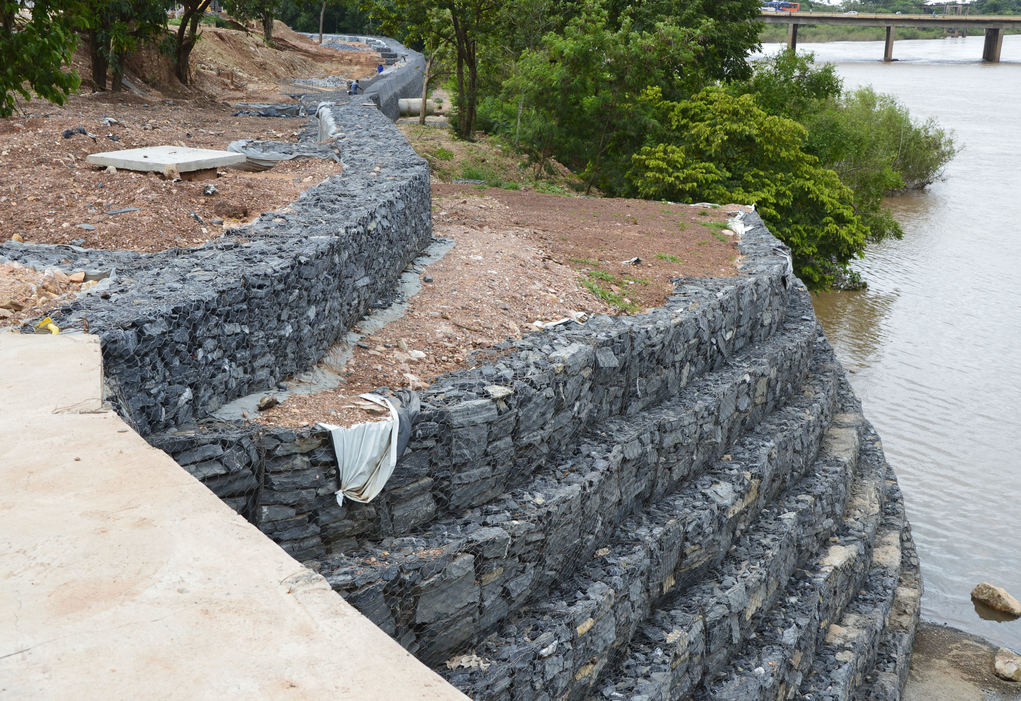 Até agora já foram concluídos os serviços de fiação para a implantação da iluminação no sistema LED e 900 metros do calçadão, com muro de gabião na margem do rio, e também neste trecho já foi colocada a proteção lateral, o guarda-corpo. “O material de acabamento do calçadão já foi adquirido, só aguardando ainda a conclusão de 400 metros de muro de gabião, aterramento e concretagem”, disse o secretário.