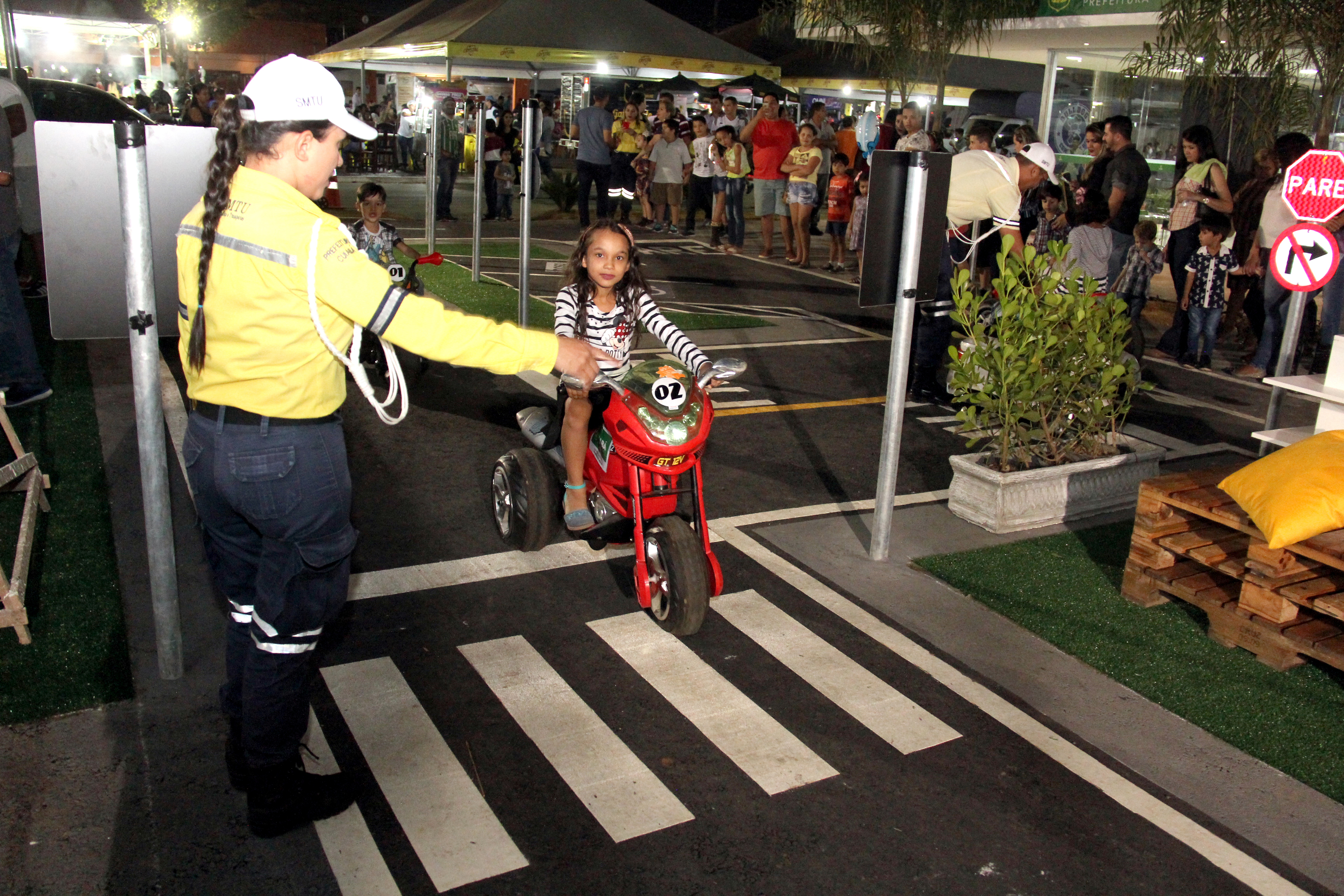Durante a 53ª Expoagro nesta terça-feira (11), no Parque de Exposições Jonas Pinheiro, entre shows nacionais e regionais e ato de solidariedade, uma atração vem chamando a atenção dos e pais, visitantes e expositores: a “Cidade Mirim de Trânsito”, instalada pela Secretaria Municipal de Mobilidade (Semob). Pelo menos 300 crianças, desde a abertura no 7, já passaram pelo local e receberam orientações e noções de regras básicas de trânsito.