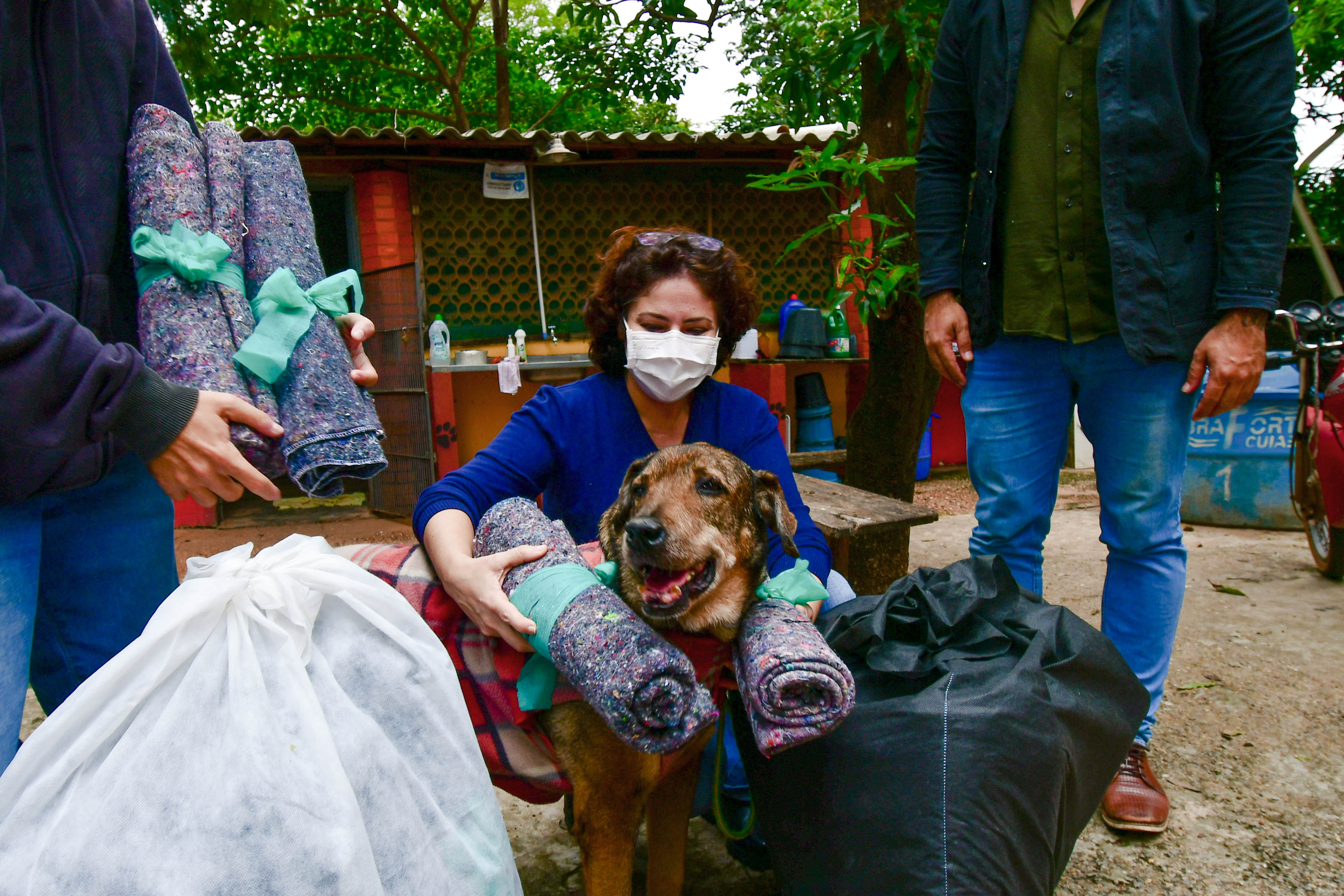 A Prefeitura de Cuiabá, via Núcleo de Apoio à Primeira-dama e a Diretoria de Bem Estar Animal, distribuíram mais de 300 cobertores mantas da campanha Aquece Cuiabá nesta sexta-feira (01), para quatro Organizações Não Governamentais (ONGs) que acolhem mais de 700 animais.