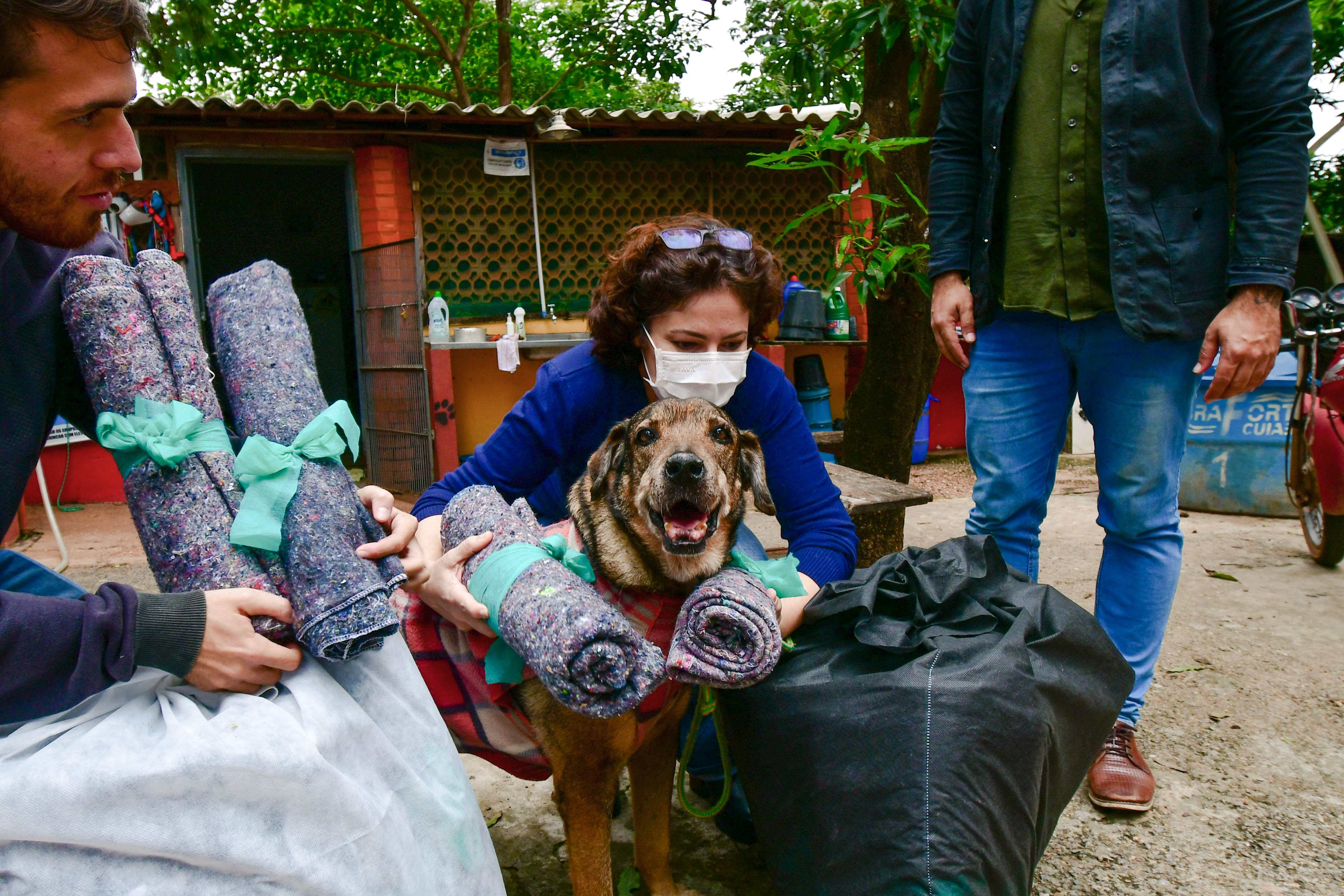 "Desde 2017, nós pegamos as mantas que envolvem os cobertores e as transformamos em mini cobertores para os pets. As instituições nos procuram e de lá pra cá ajudamos, de alguma forma, a proteger esses animais durante as frentes frias", frisou.