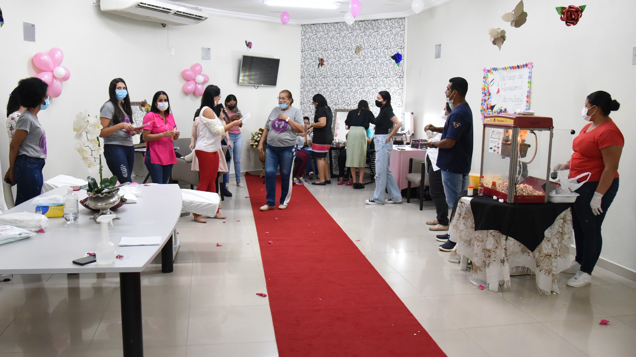 A recepção para as colaboradoras foi calorosa, com decoração e distribuição de mimo, como símbolo de carinho. Na seqüência, massagem relaxante em parceria com o Centro de Ensino Técnico Mato-Grossense – CETEM e Faculdade Fasipe e maquiagem e limpeza de pele em parceria com a representante Mary Kay, além de palestra realizada com o intuito de elevar a autoestima feminina.