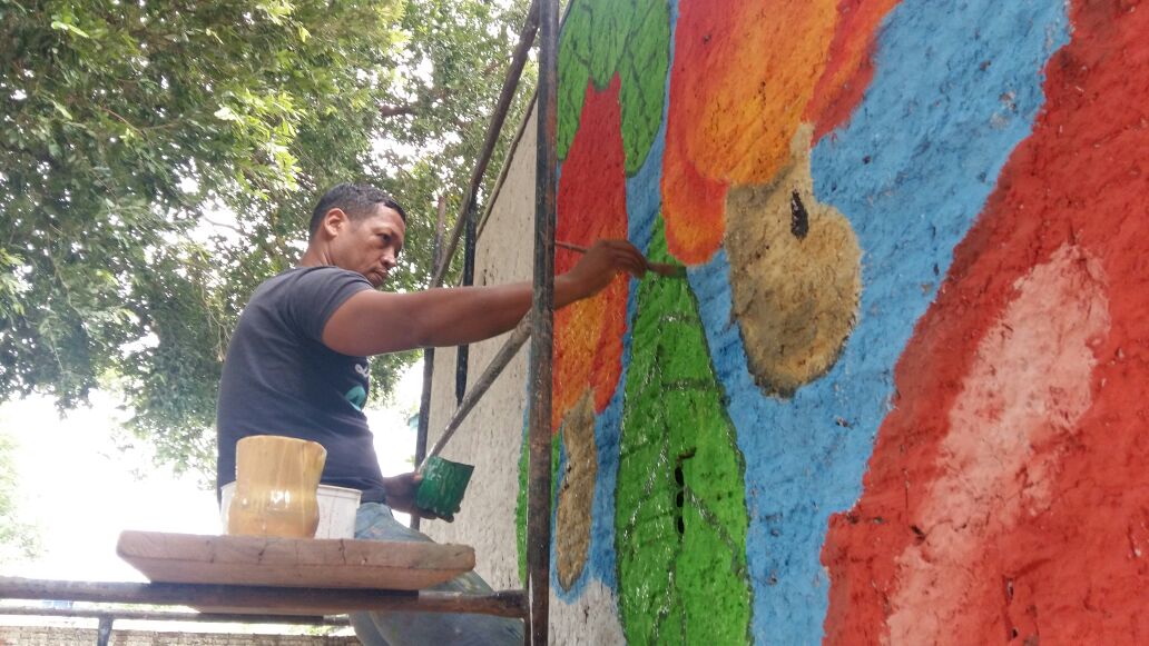 Com recursos do Fundo Municipal artista plástico retrata tradições em muro de escola