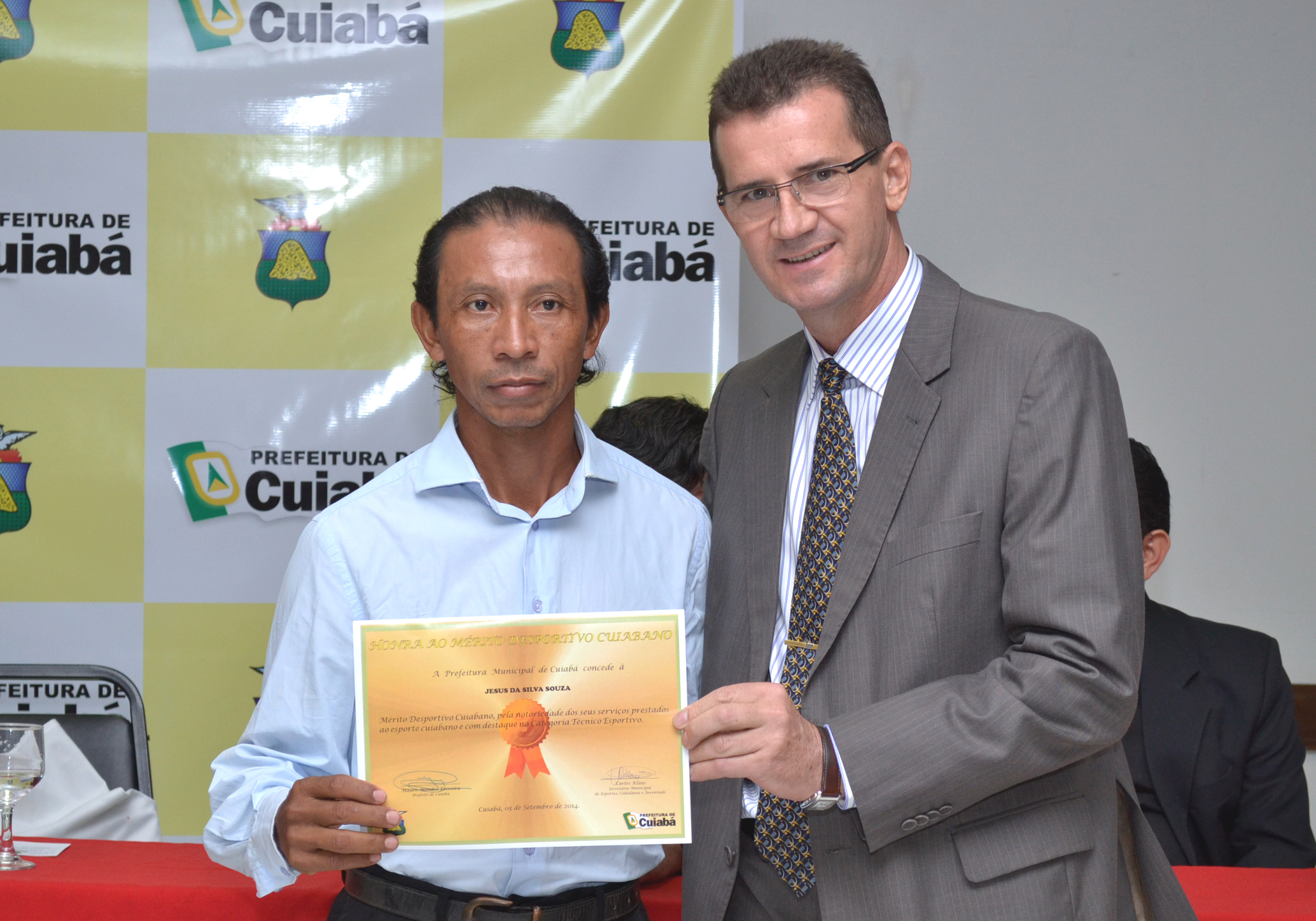 A Prefeitura de Cuiabá entregou na noite desta sexta-feira (05), 21 certificados de Honra ao Mérito Desportivo Cuiabano. Os homenageados foram indicados pelo Conselho Municipal de Desporto e Recreação Pública (COMDERP), mantido pela Secretaria Municipal de Esportes, Cidadania e Juventude. Esta é primeira condecoração realizada no segmento desportivo municipal.
