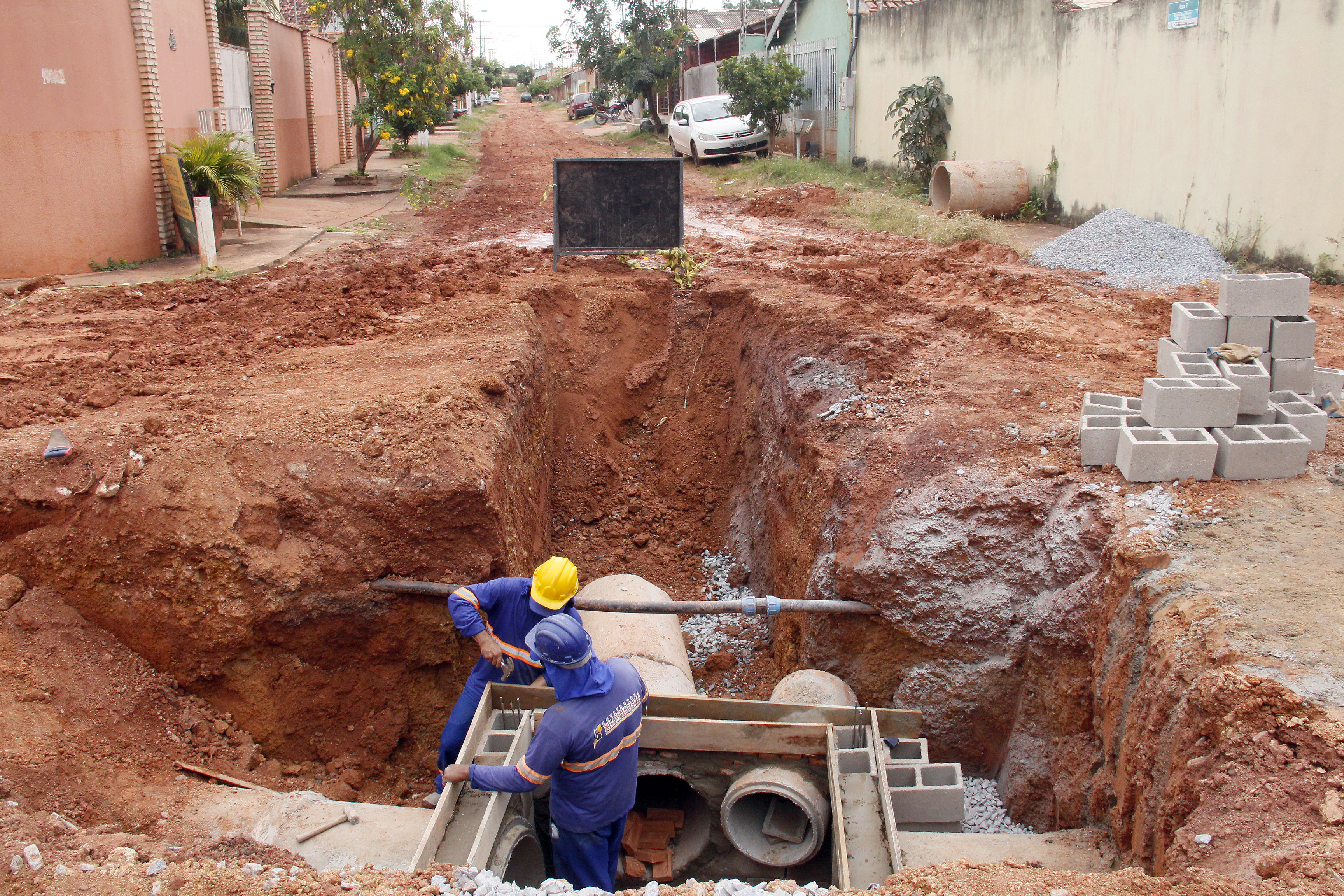 Construção da rede de drenagem avança no Residencial Ana Maria