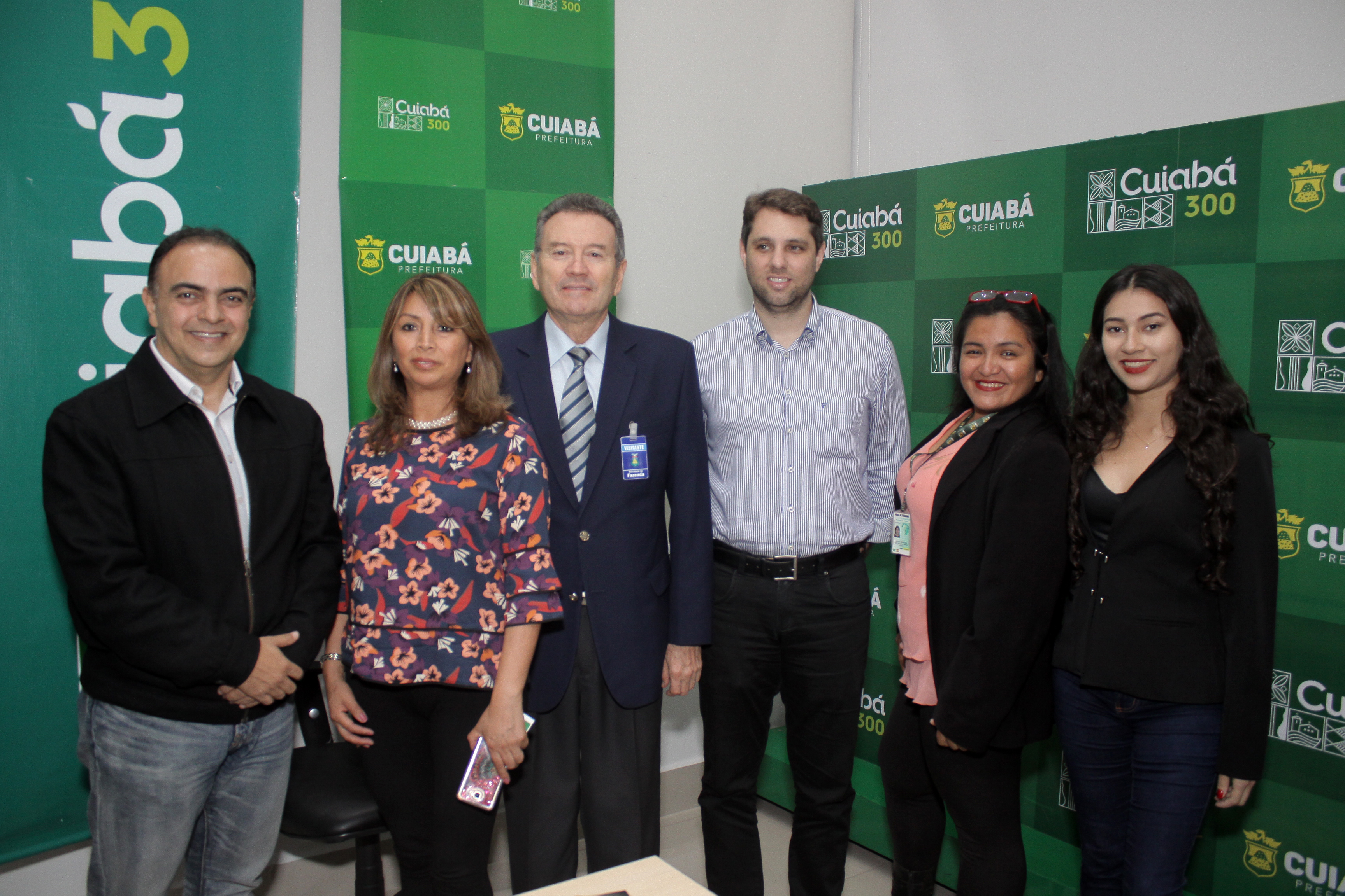 Representando o prefeito de Cuiabá, Emanuel Pinheiro, o secretário de Cultura, Esporte e Turismo, Francisco Vuolo, e o chefe de Gabinete da Prefeitura de Cuiabá, Antônio Moreal, receberam nesta quarta-feira (07) no salão Nobre do Palácio Alencastro, o cônsul-geral do Peru Teobaldo Reategui San Martin acompanhado de um grupo de turismólogos para realizar um protocolo de intenção entre os dois países.