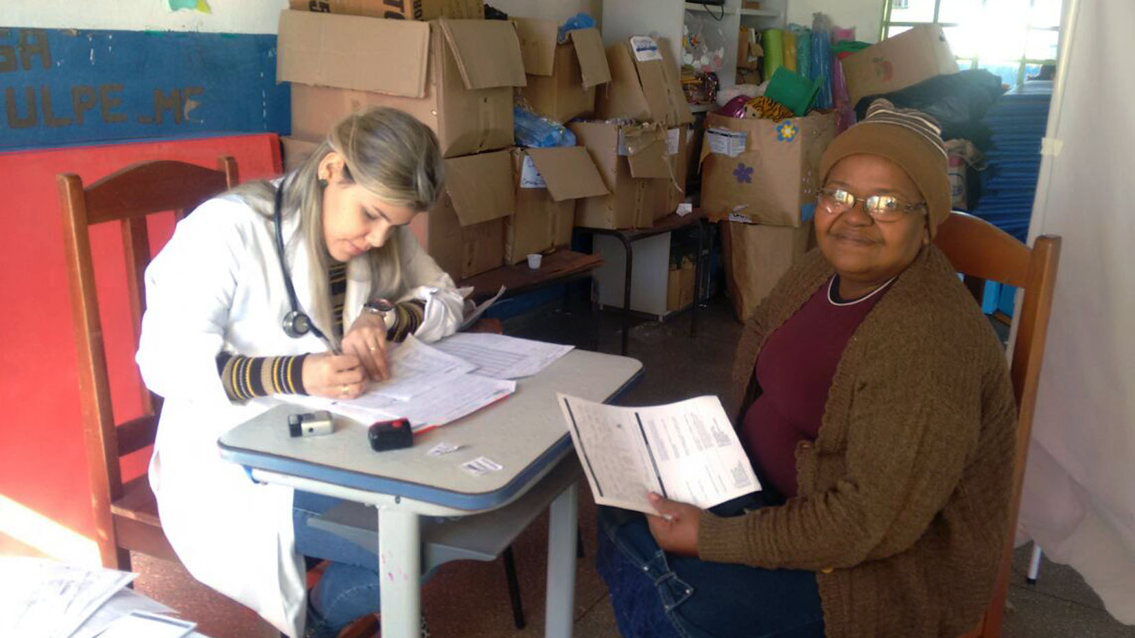A equipe de saúde que participou da ação foi composta por um médico clínico geral, um enfermeiro, um psicólogo, dois técnicos de enfermagem e um técnico de saúde bucal.