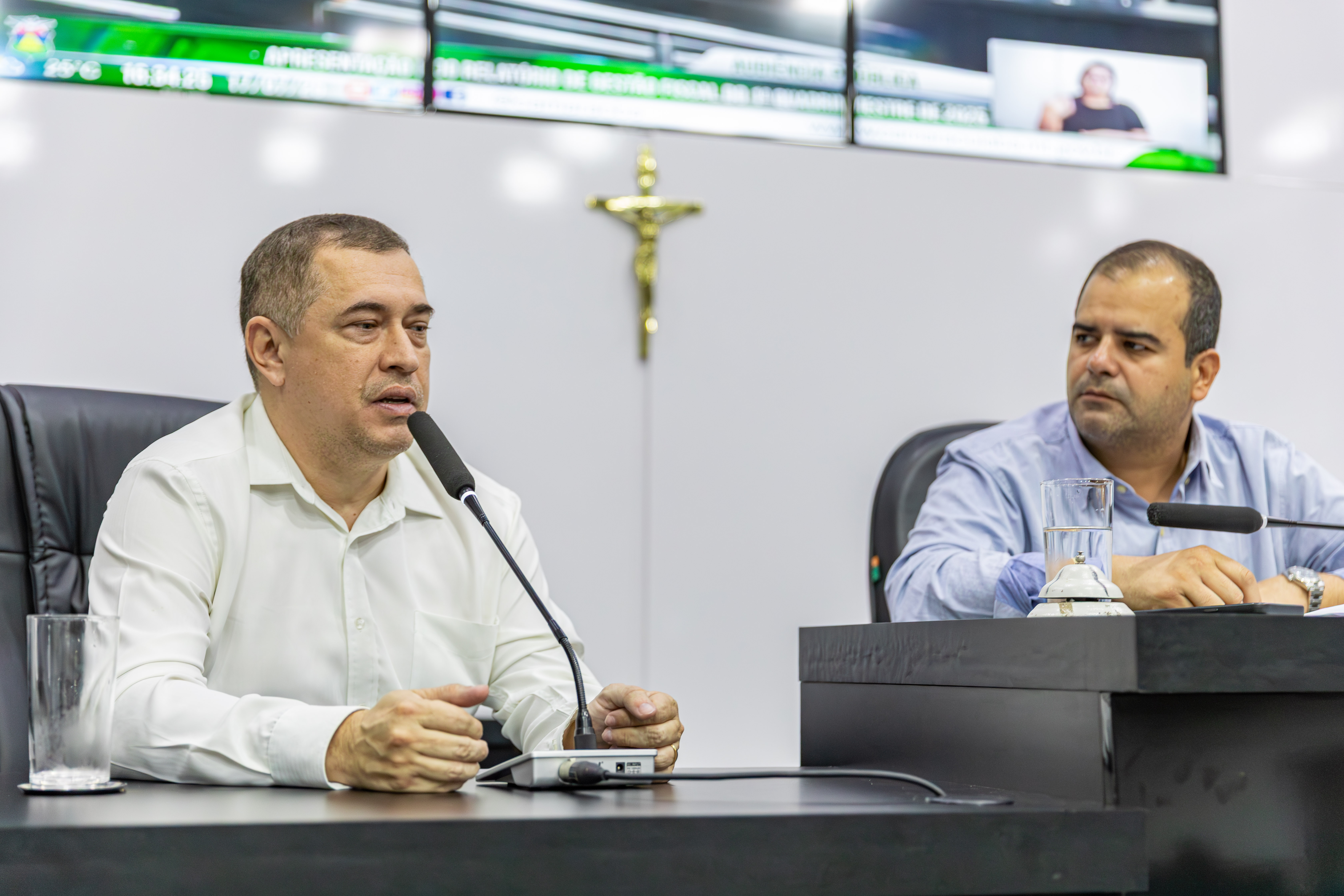 O secretário municipal de Economia, Marcelo Bussiki, e o contador-geral do município, Éder Galiciani, apresentaram na tarde desta quinta-feira (17), na Câmara Municipal, os resultados das contas do primeiro quadrimestre da Prefeitura de Cuiabá.