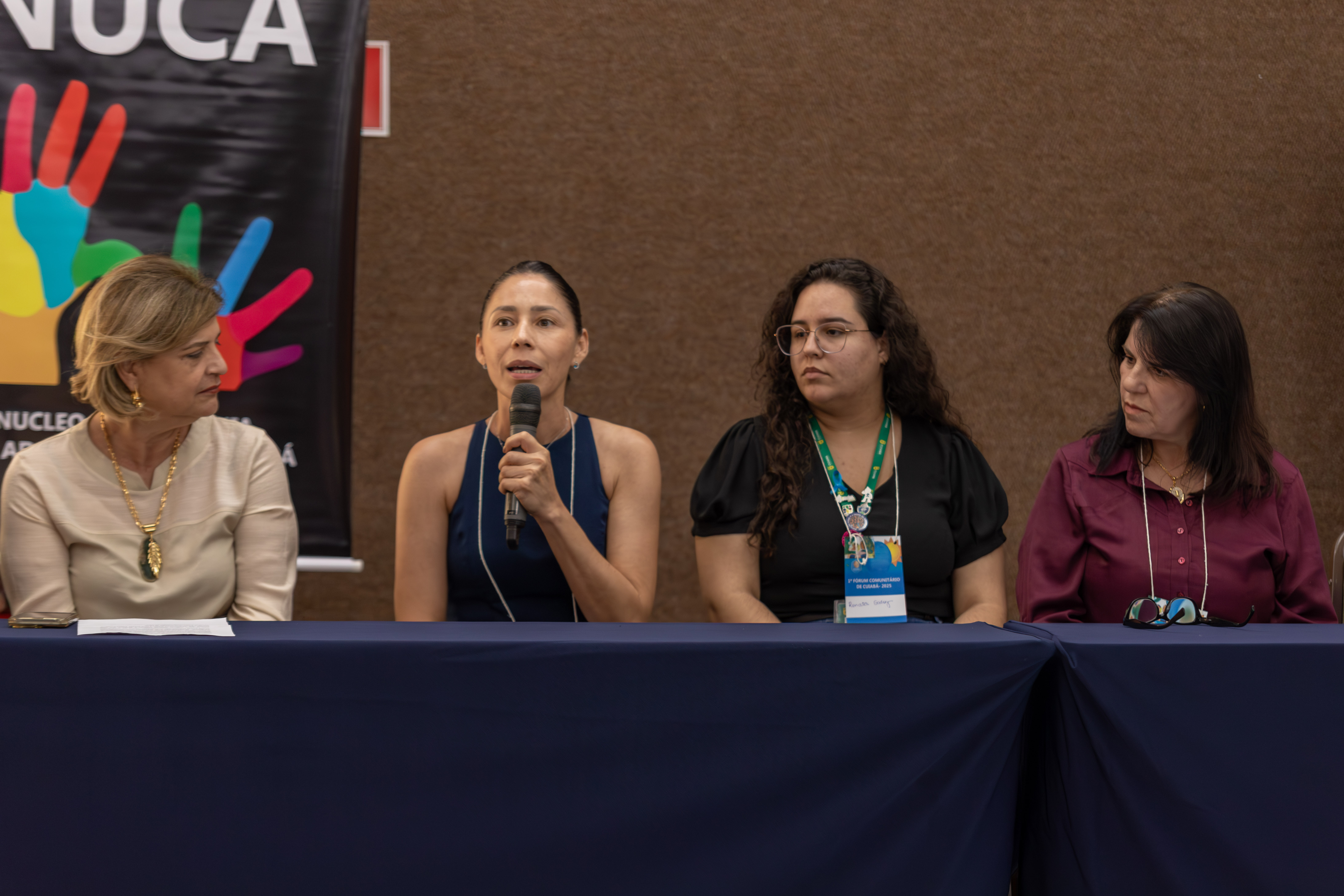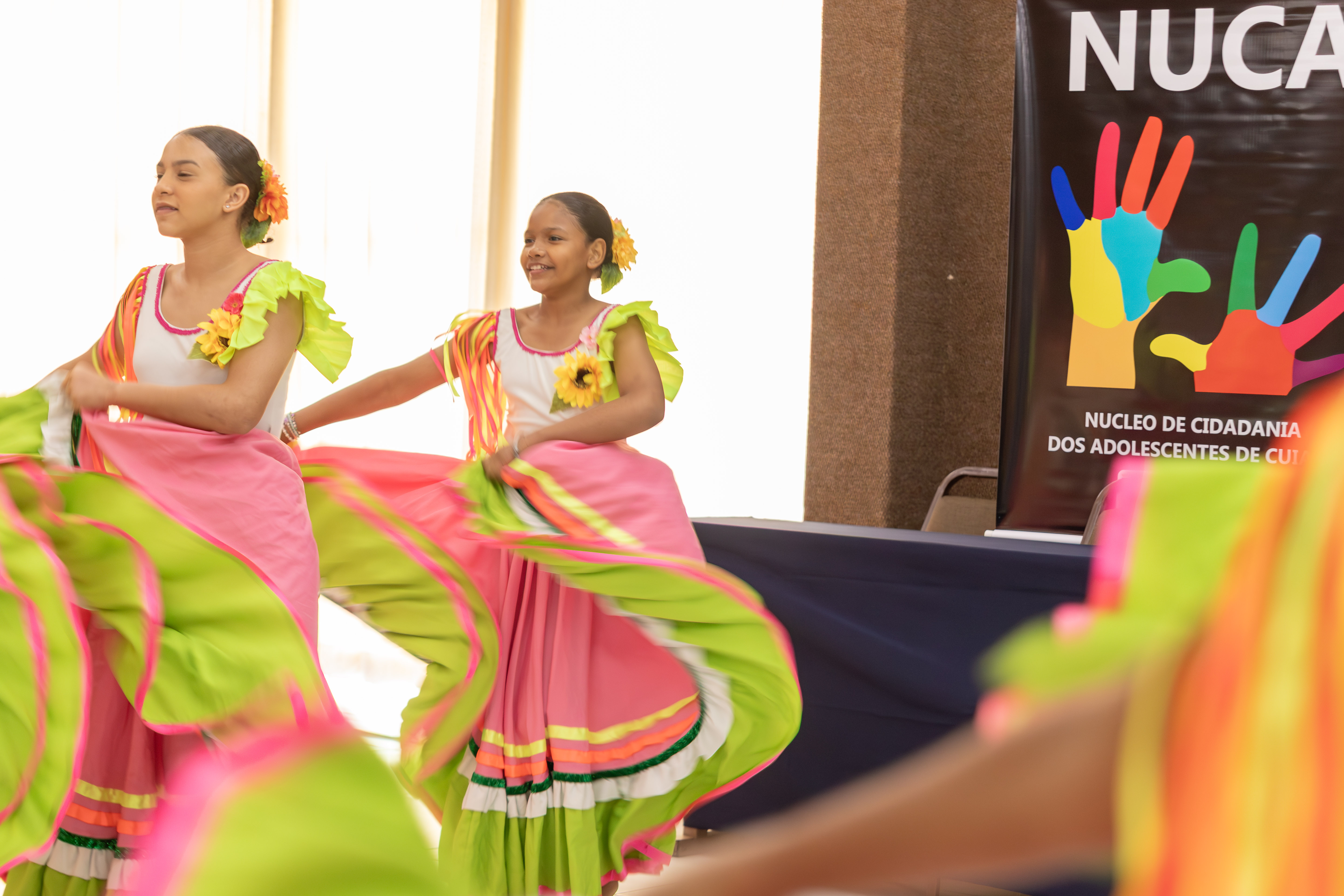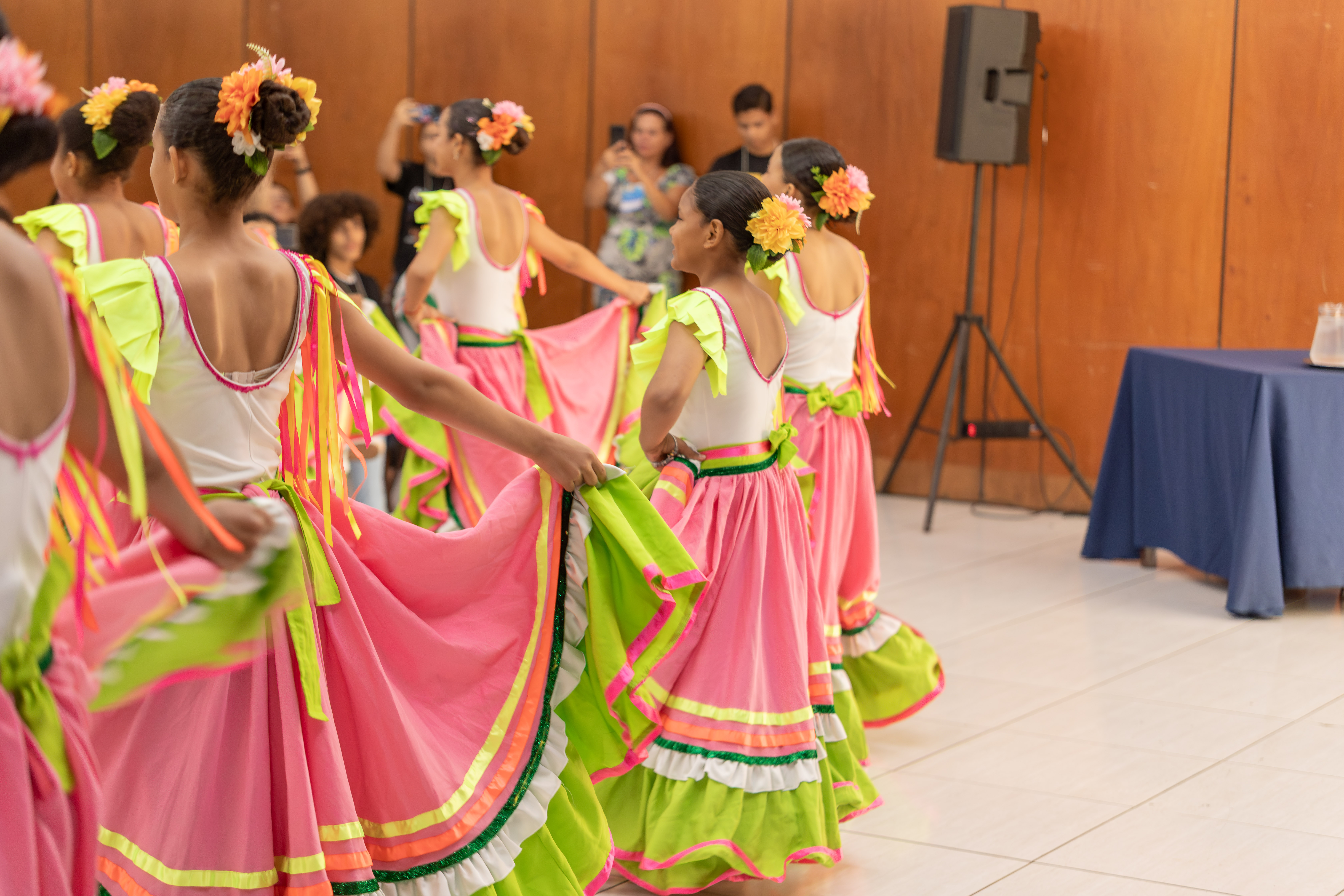 Um dos momentos mais marcantes da tarde foi a participação das adolescentes do Projeto Siminina, que inauguraram o fórum com uma apresentação vibrante de siriri. A dança tradicional mato-grossense simbolizou o protagonismo juvenil buscado pelo Selo UNICEF e deu o tom de acolhimento e identidade cultural ao encontro. As apresentações foram seguidas de falas de mobilizadores, professores, conselheiros tutelares e representantes das secretarias, que ressaltaram a importância da atuação conjunta.