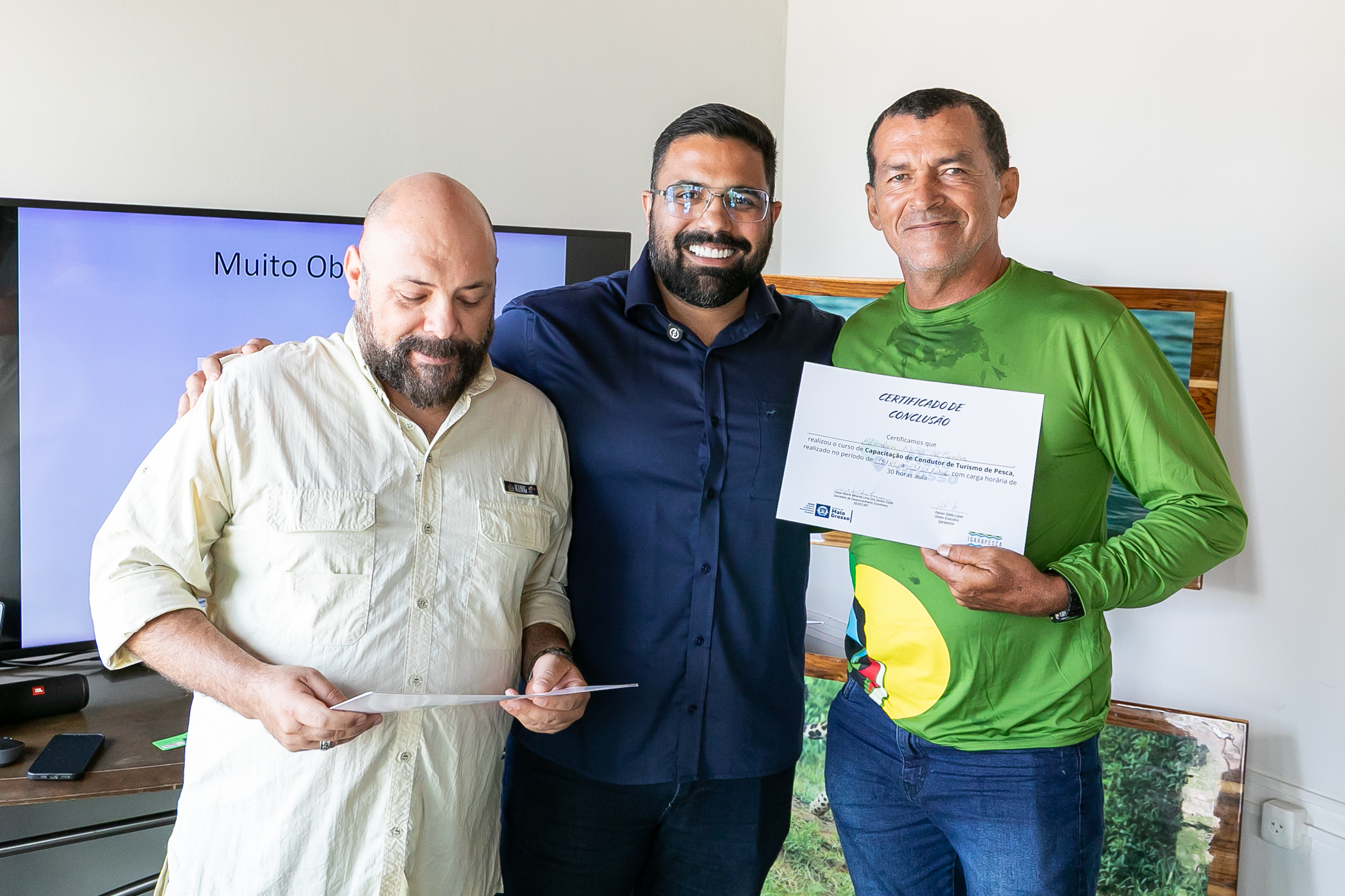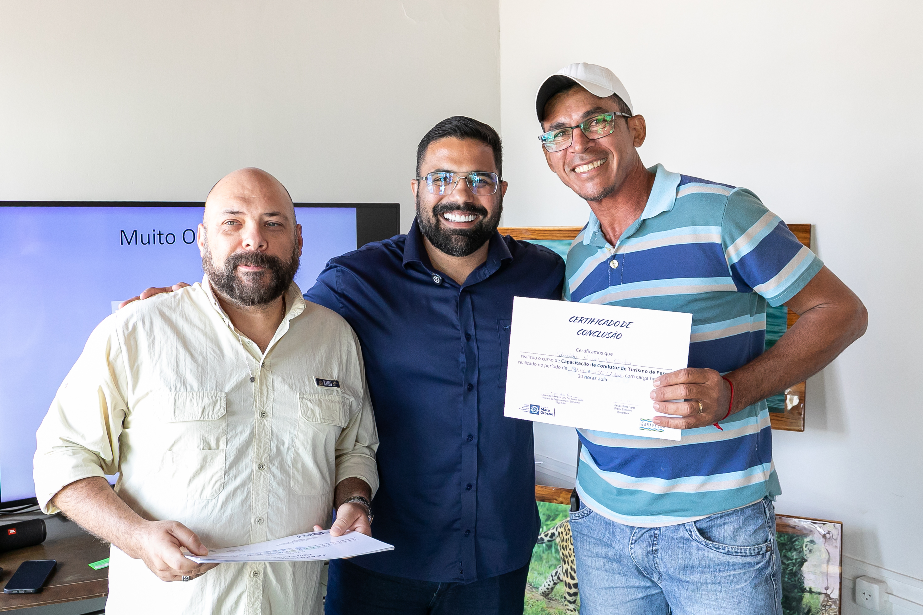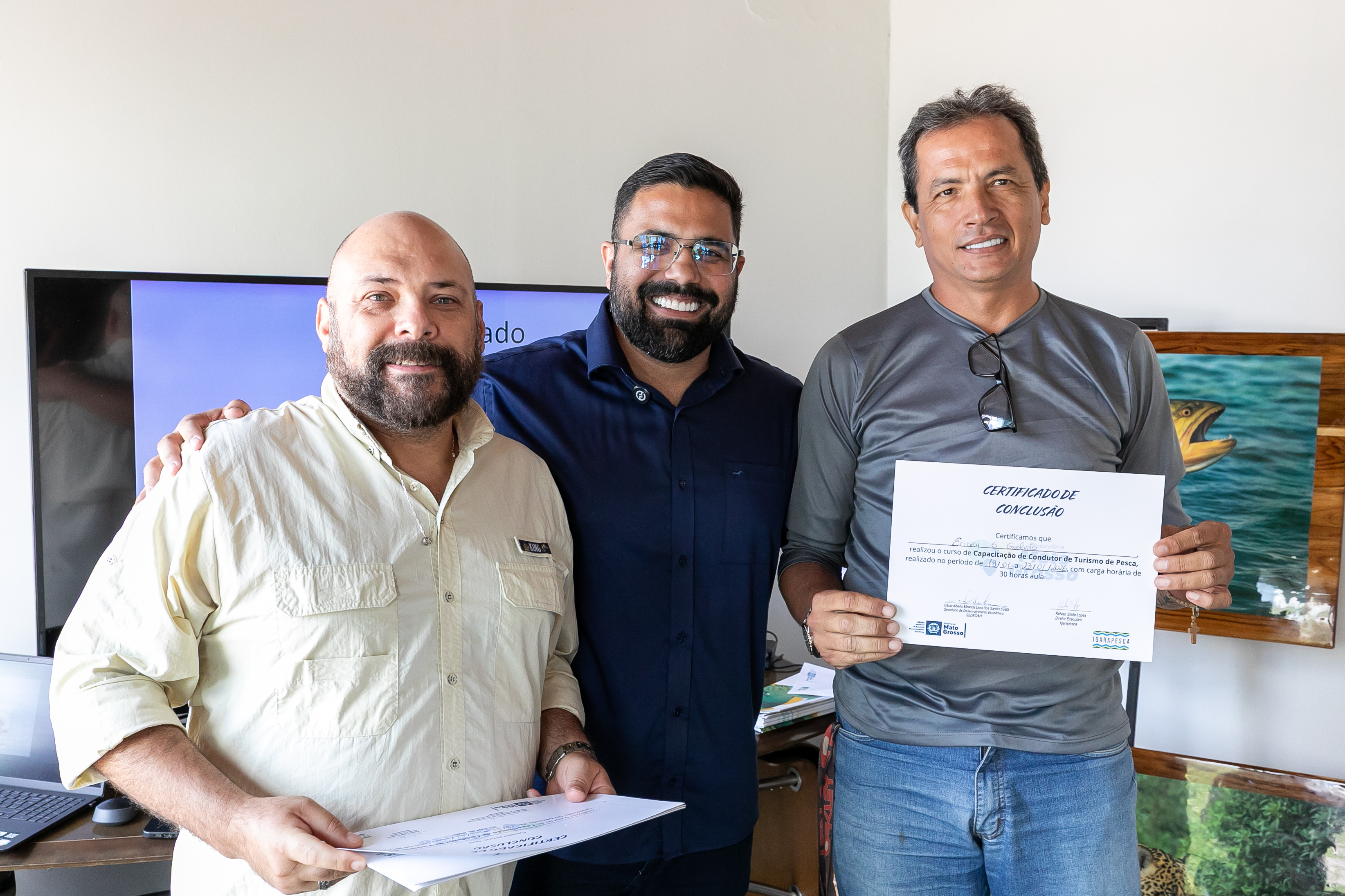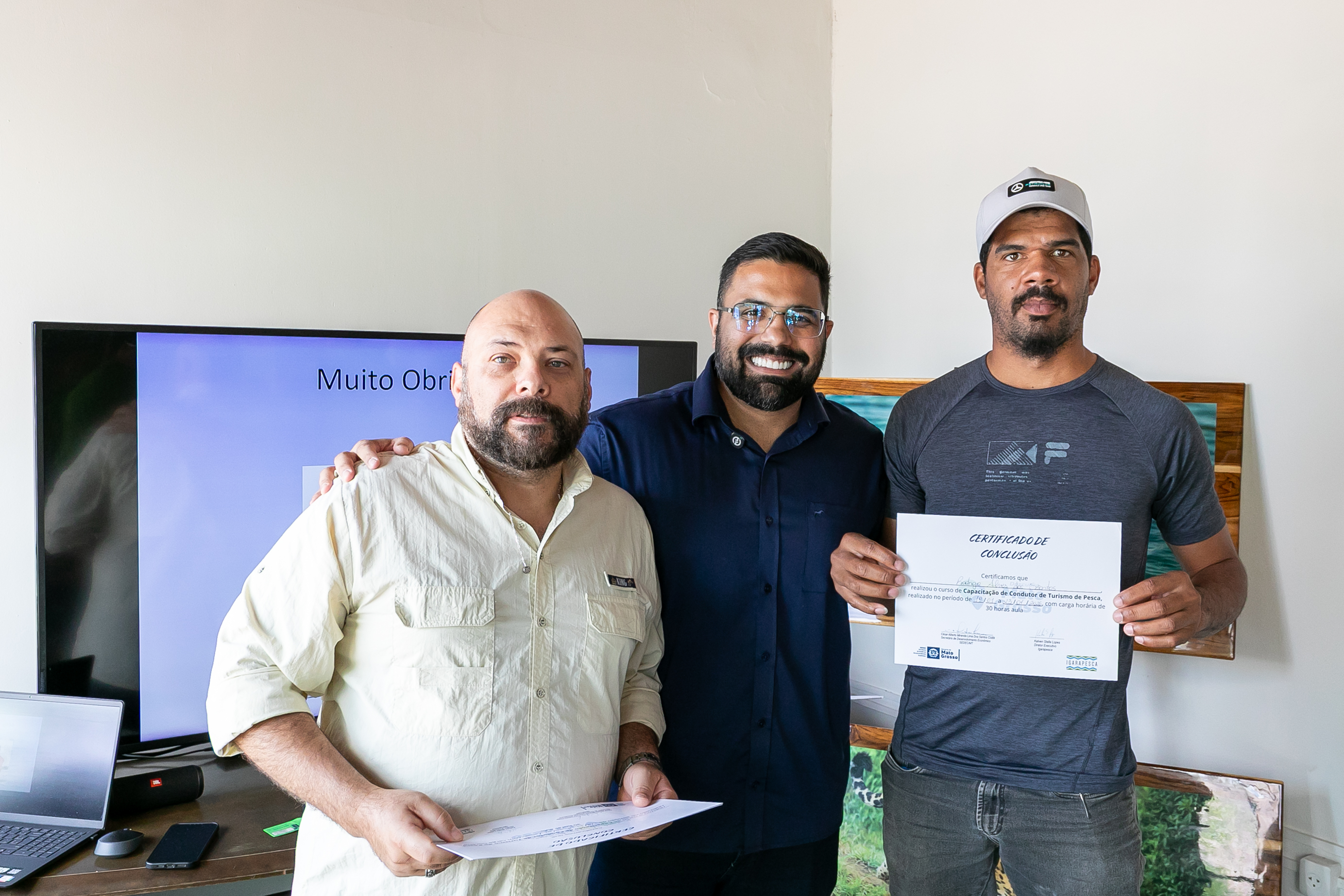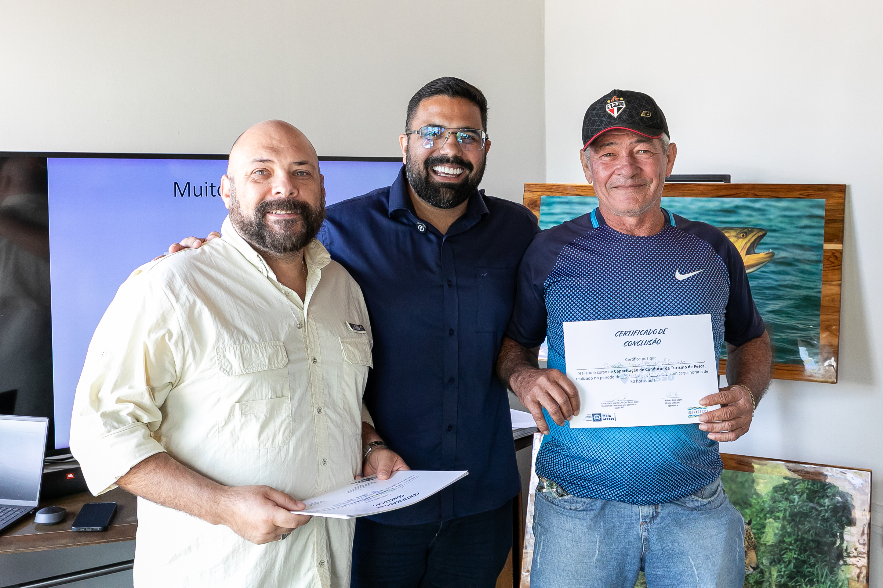 A capacitação em Condução de Pesca Esportiva foi concluída na manhã desta sexta-feira (23), na sede da Secretaria Municipal de Desenvolvimento Econômico, Trabalho, Turismo e Agricultura (SDTA), marcando um avanço importante para o fortalecimento do turismo sustentável em Cuiabá. A formação contou com aula prática realizada na Marina Sérgio Motta, sob a ponte de mesmo nome, às margens do Rio Cuiabá, no bairro Praeirinho, aproximando os participantes do ambiente real de atuação profissional.