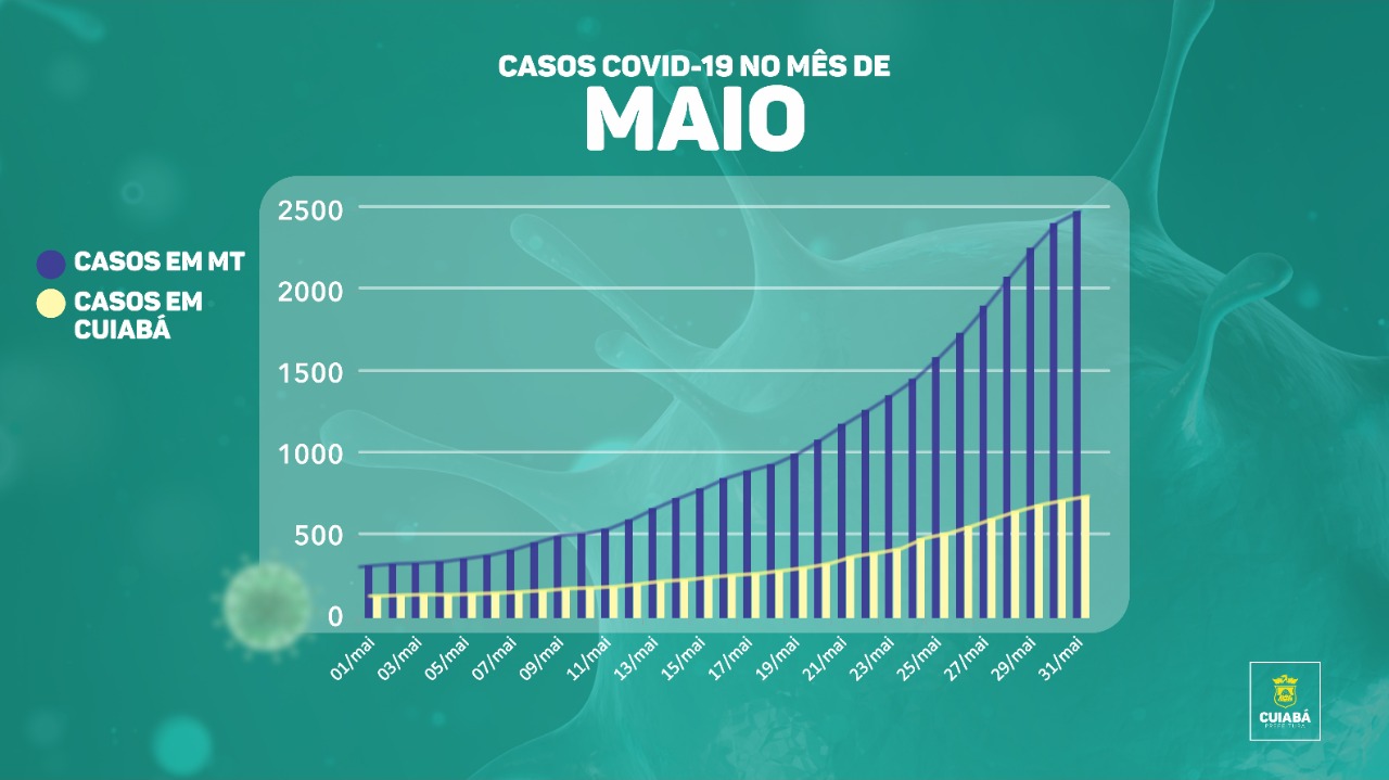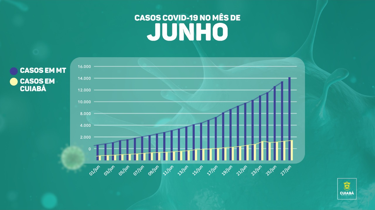 Em todos os meses de abril, maio e junho, Cuiabá esteve abaixo da curva de contaminação pelo coronavírus do estado, conseguindo achatar a curva de maio para junho, enquanto Mato Grosso encontra-se com curva ascendente neste momento. Mais de 70% dos casos confirmados da doença estão ocorrendo nos demais 140 municípios, contribuindo mais fortemente para o crescimento da curva de contágio no estado.