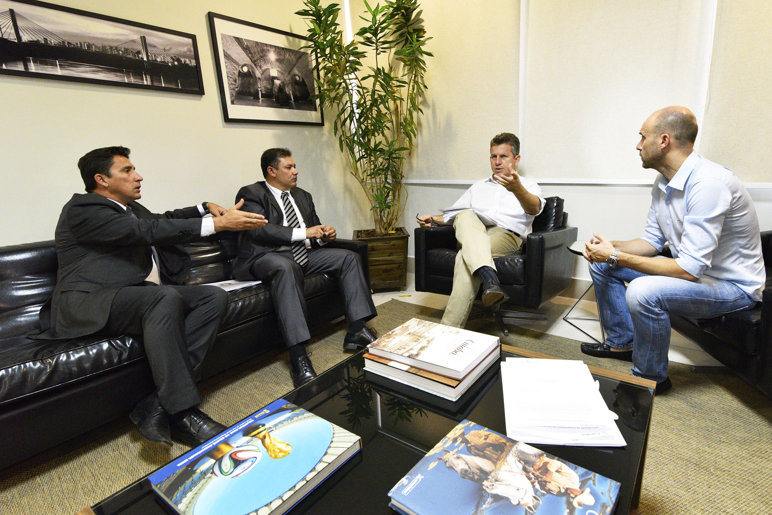 O prefeito Mauro Mendes recebeu nesta quarta-feira (12) o presidente da Confederação Brasileira do Desporto Universitário (CBDU), Luciano Cabral, e o presidente da Federação Mato-grossense de Esportes Universitários (FMEU), Alexandre Bregunci, para apresentar e discutir a proposta de realização dos Jogos Universitários (JUBs) de 2016, em Cuiabá.