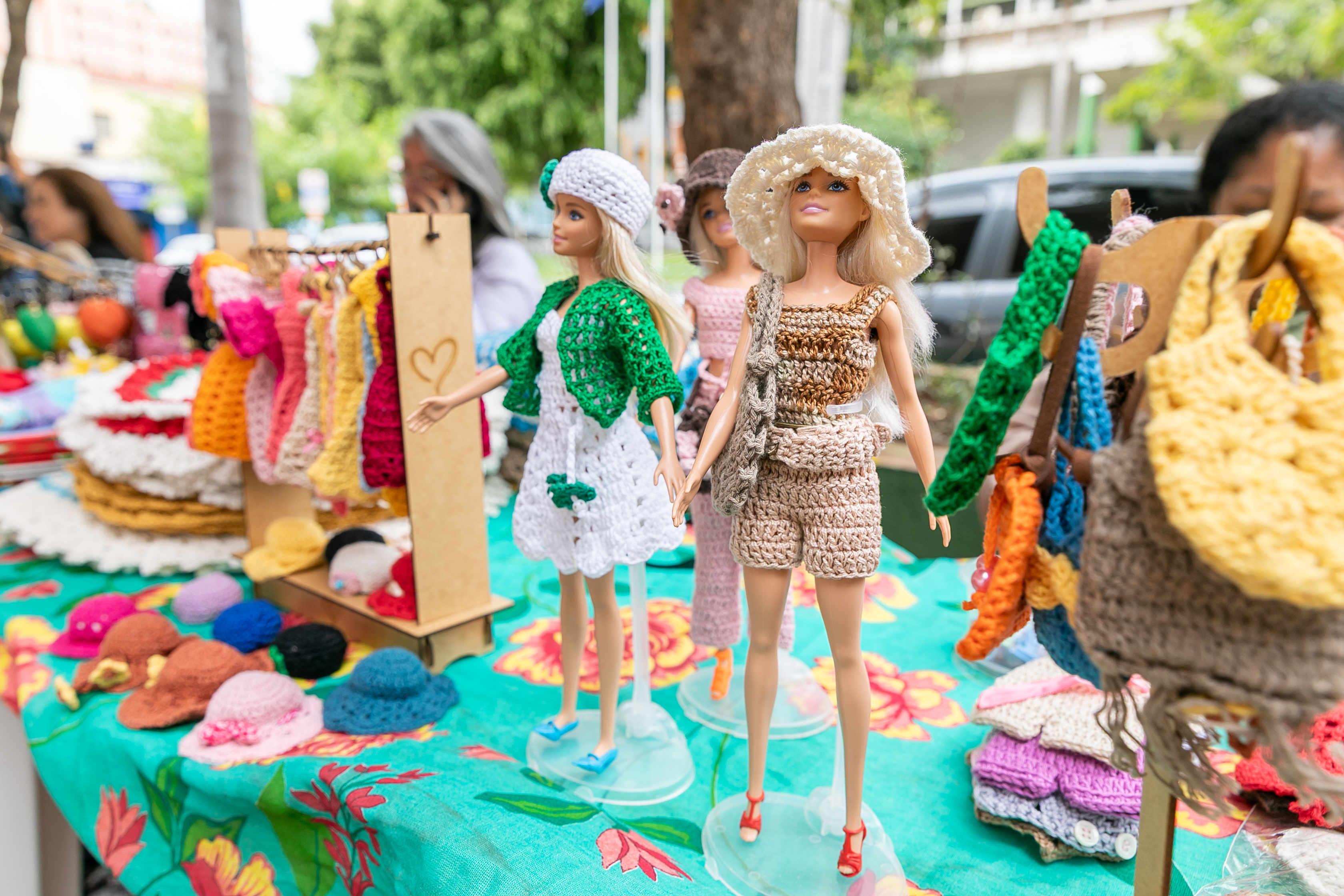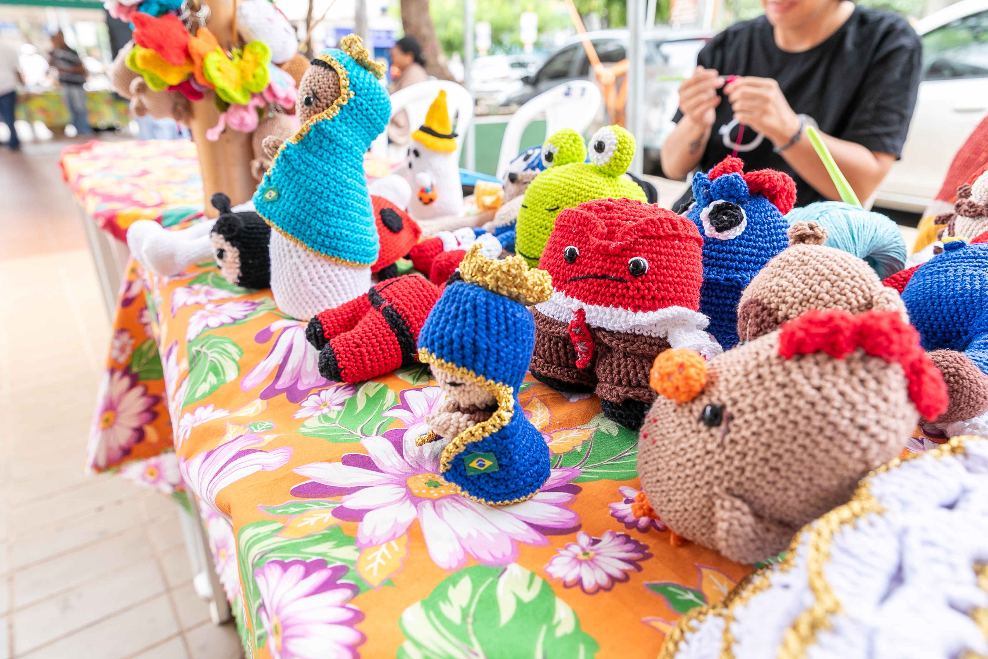 A feira contou, ainda, com artesanato de crochês, panos de pratos bordados, almofadas já caracterizadas em clima de natal, bem como porta panetones, bijuterias, e muito mais.