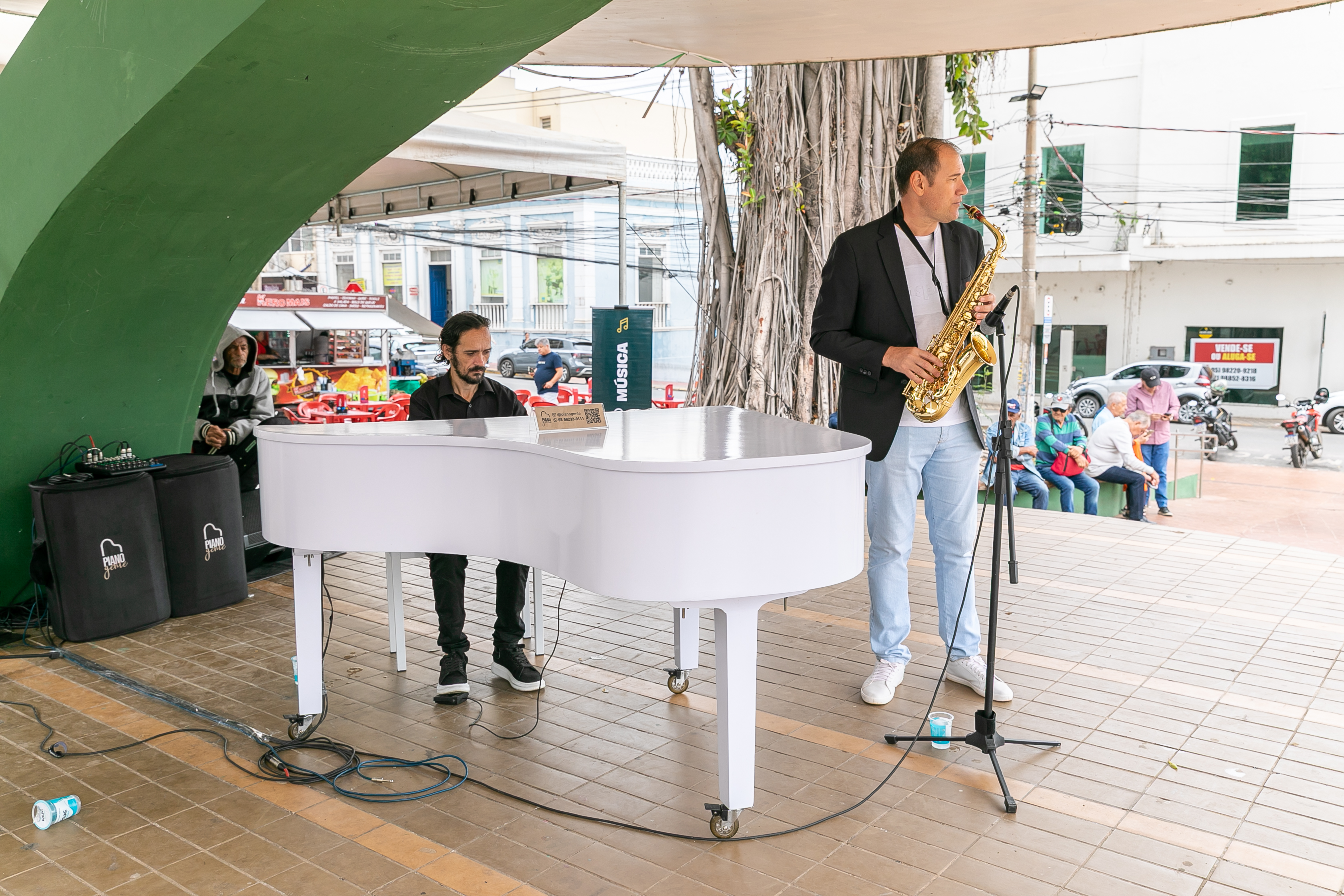 A 6ª edição da Feira Cultura, Sabor e Arte, realizada pela Secretaria Municipal de Cultura, na Praça Alencastro, na quinta-feira (30) nasceu de uma iniciativa denominada “Vem pra Praça”, que tem o propósito de aproximar ainda mais a cultura popular da comunidade, para levar as ações culturais para um espaço mais acessível e próximo das pessoas. E a novidade agradou os expositores pelo movimento, pela alegria e receptividade. Músicos e bailarina do Projeto Piano Gente se apresentaram pela manhã e a tarde, dando um toque especial a programação. As 5 edições anteriores aconteceram na sede da Secretaria Municipal de Cultura, na Av. Barão de Melgaço.